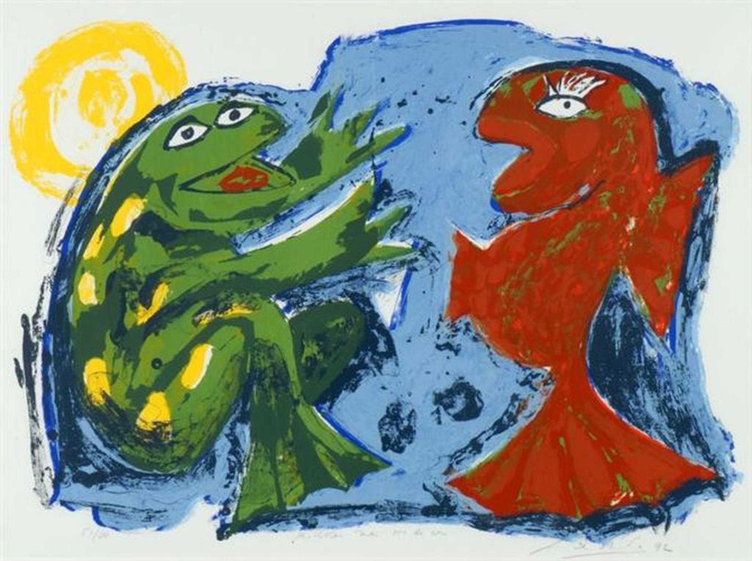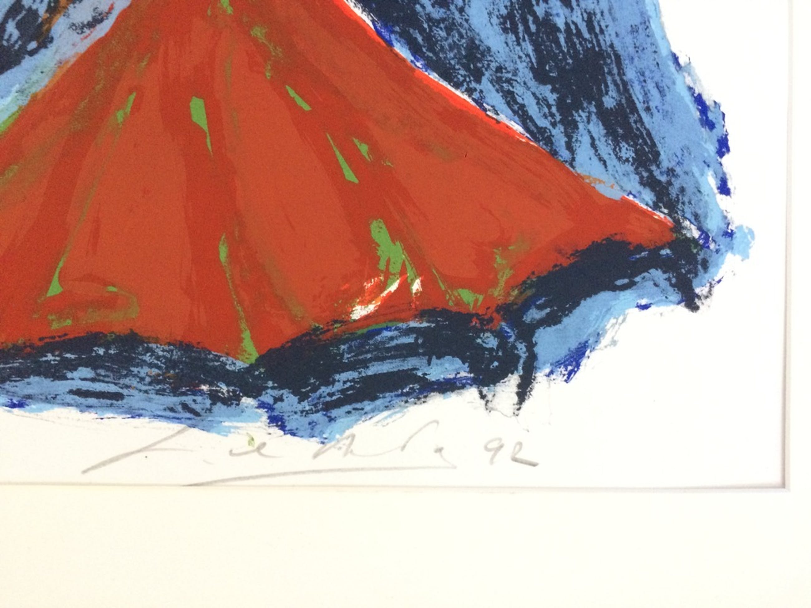 Gesigneerde en genummerde zeefdruk van John Lie a Fo uit 1992. Formaat 69 x 102 cm. Afgedrukt in een oplage van 60 exemplaren is dit nummer 51. De zeefdruk kan met passe partout worden opgehaald in onze galerie in Arkel of zonder passe partout aangetekend worden verzonden in een stevige kartonnen verpakking.