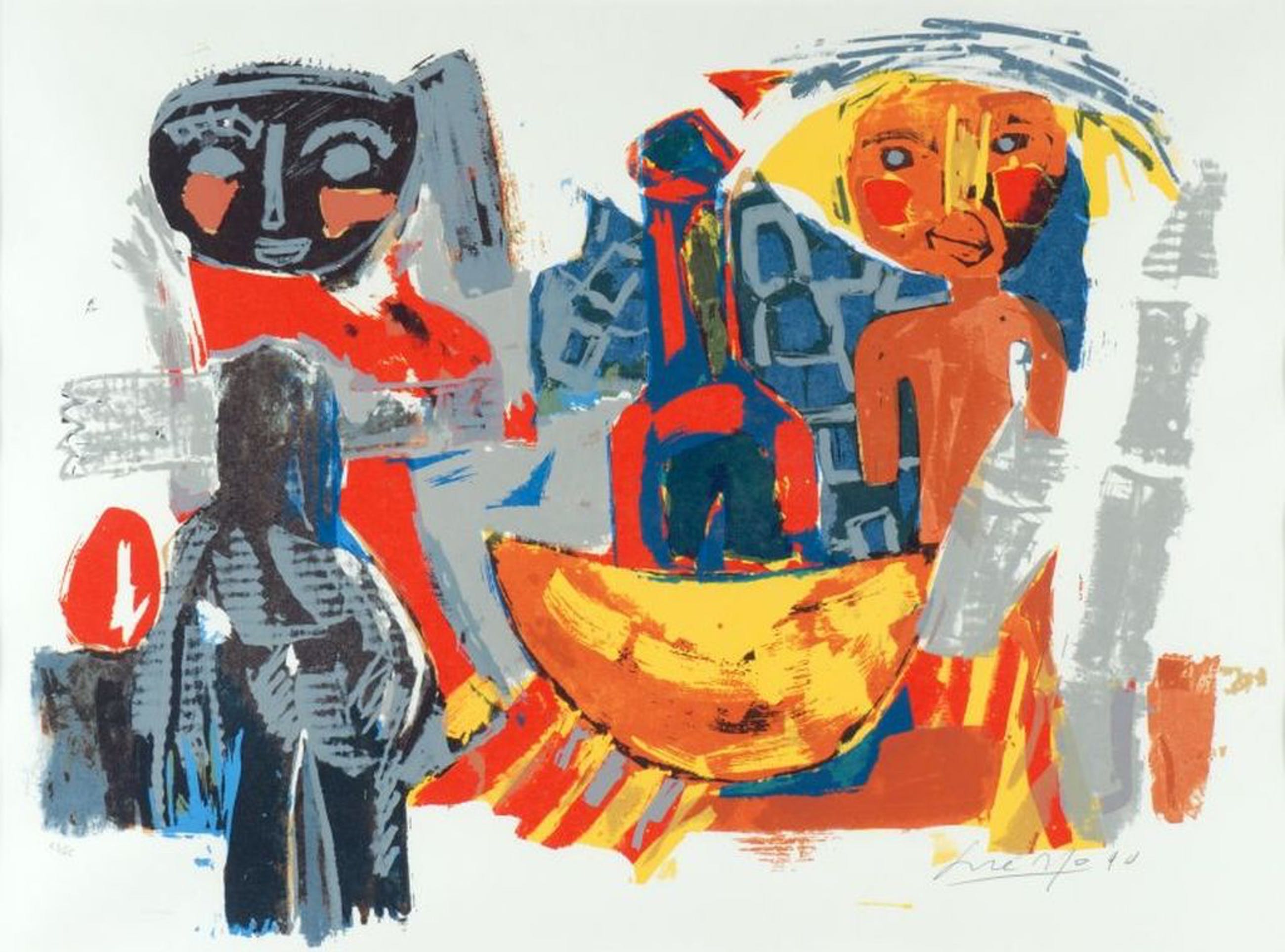 Mooi kleurrijke zeefdruk van John Lie A Fo, prentmaat 76 x 87 cm en met passe partout 70 x 90 cm. Verkeert in perfecte staat. Gedrukt in een oplage van 65 exemplaren, dit is nummer 12. Kan worden afgehaald met passe partout in onze galerie in Arkel of verzonden worden zonder passe partou tper aangetekende post in een stevige kartonnen verpakking.