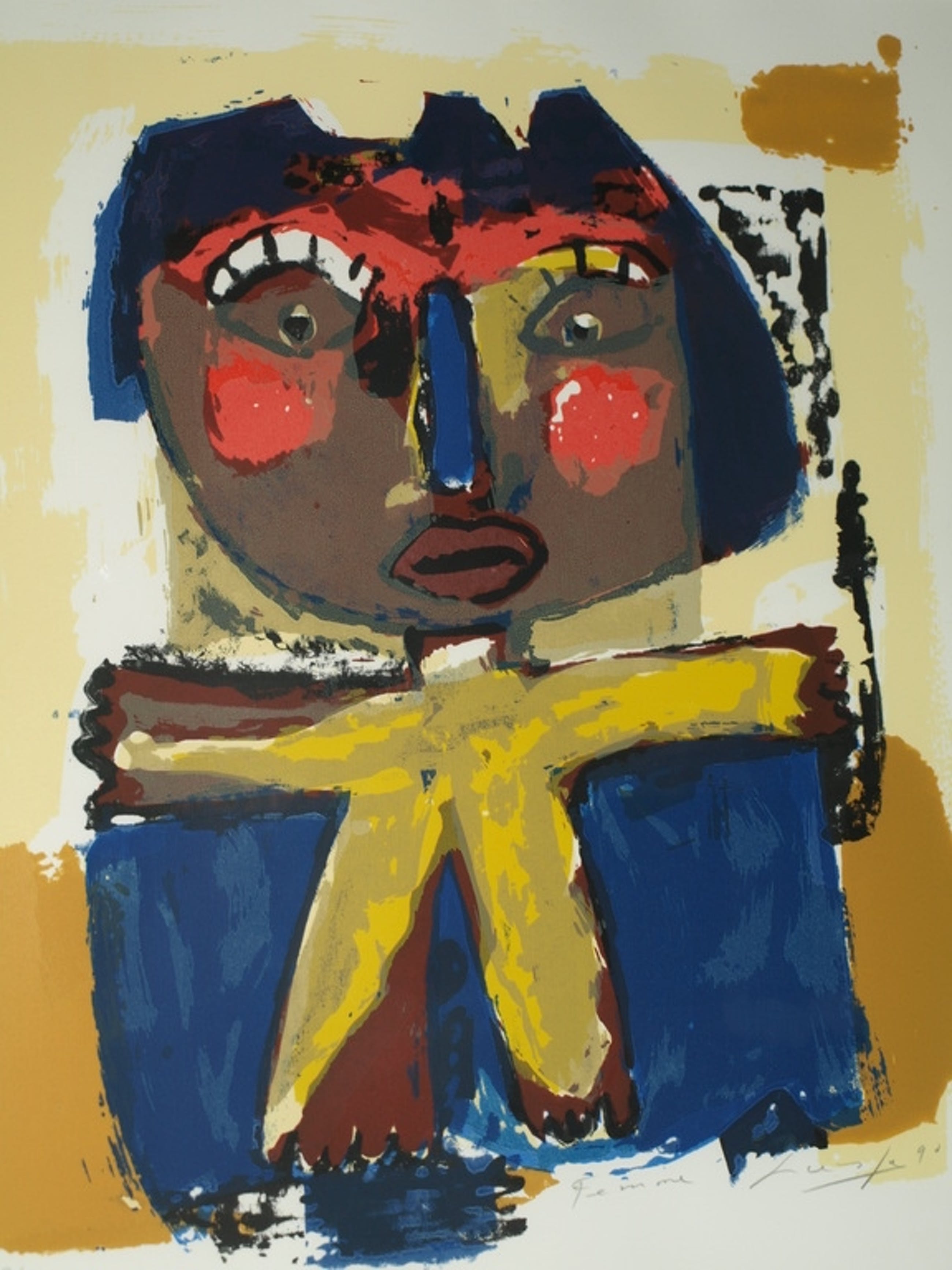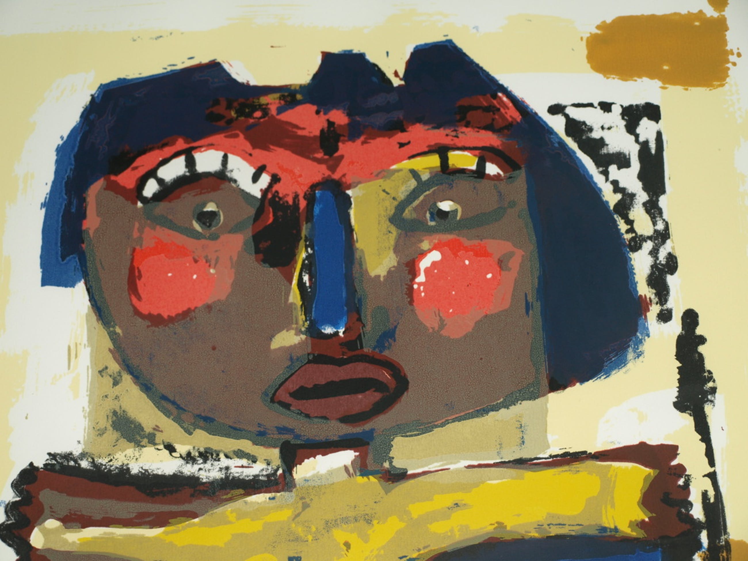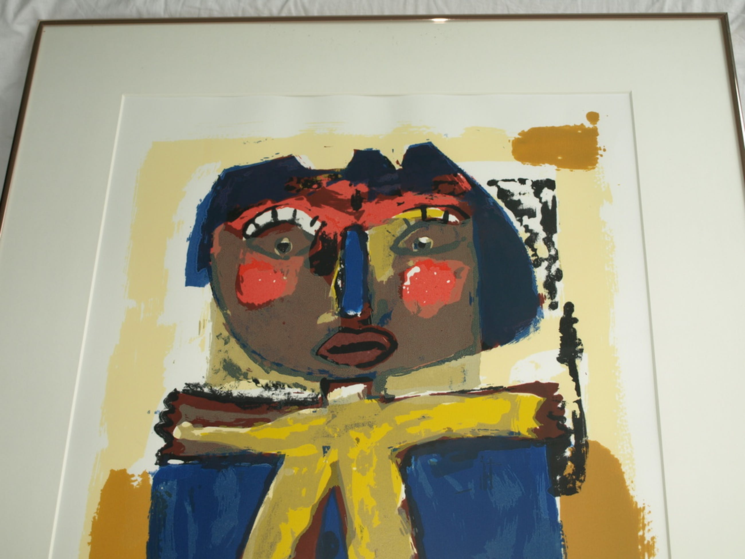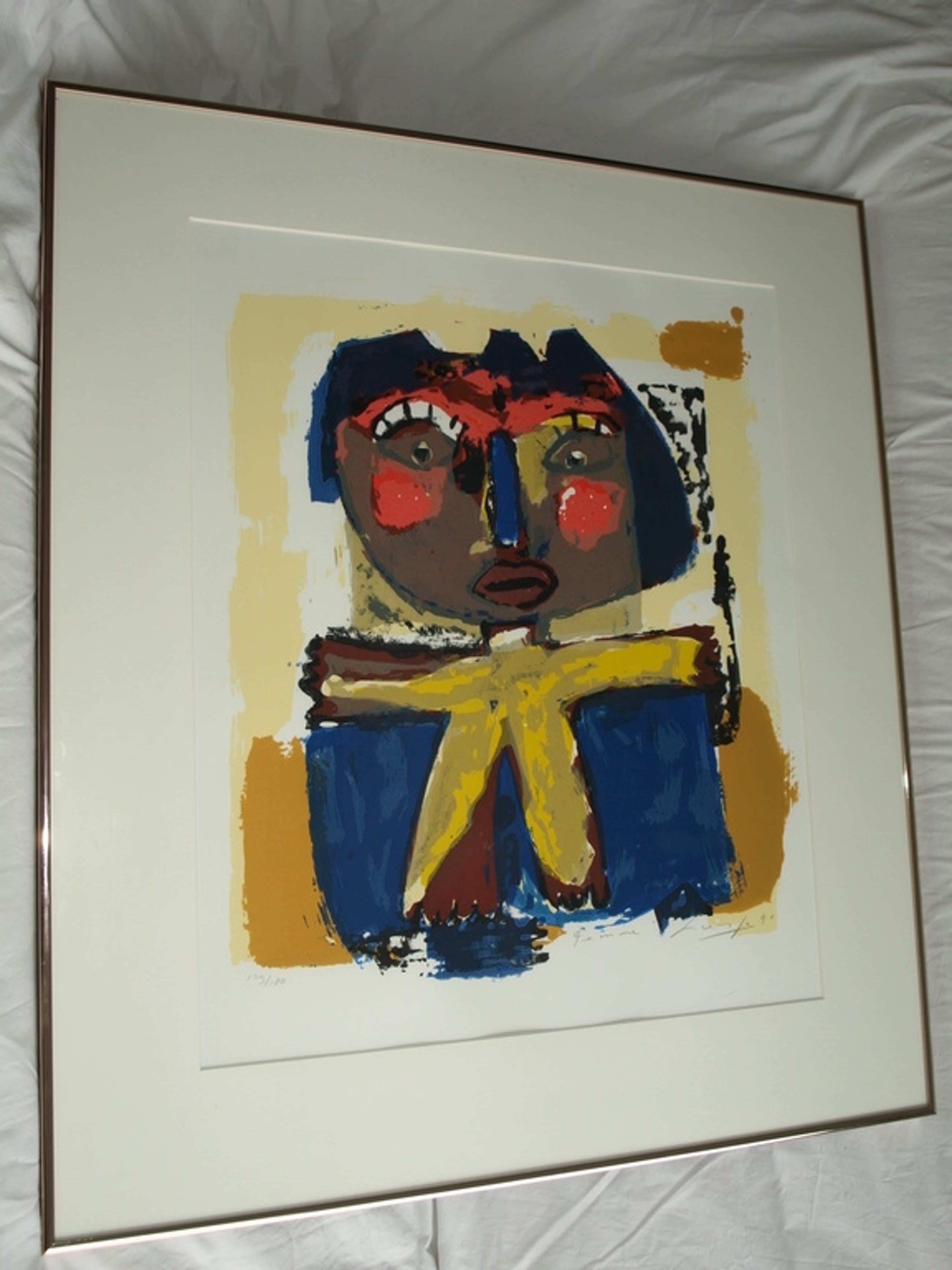 Een grote ingelijste zeefdruk uit 1990 van de Surinaams/Nederlandse kunstenaar John Lie A Fo.