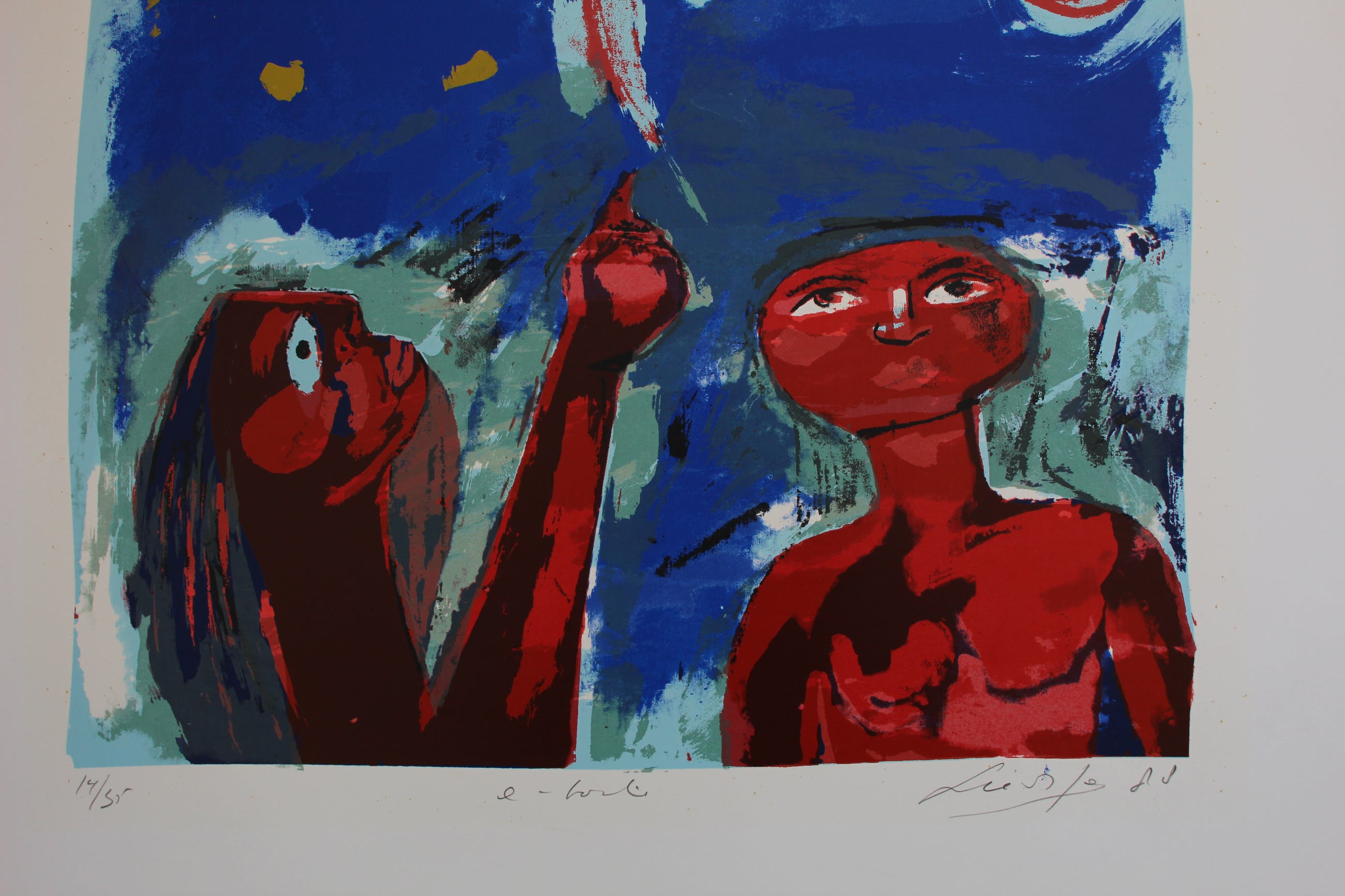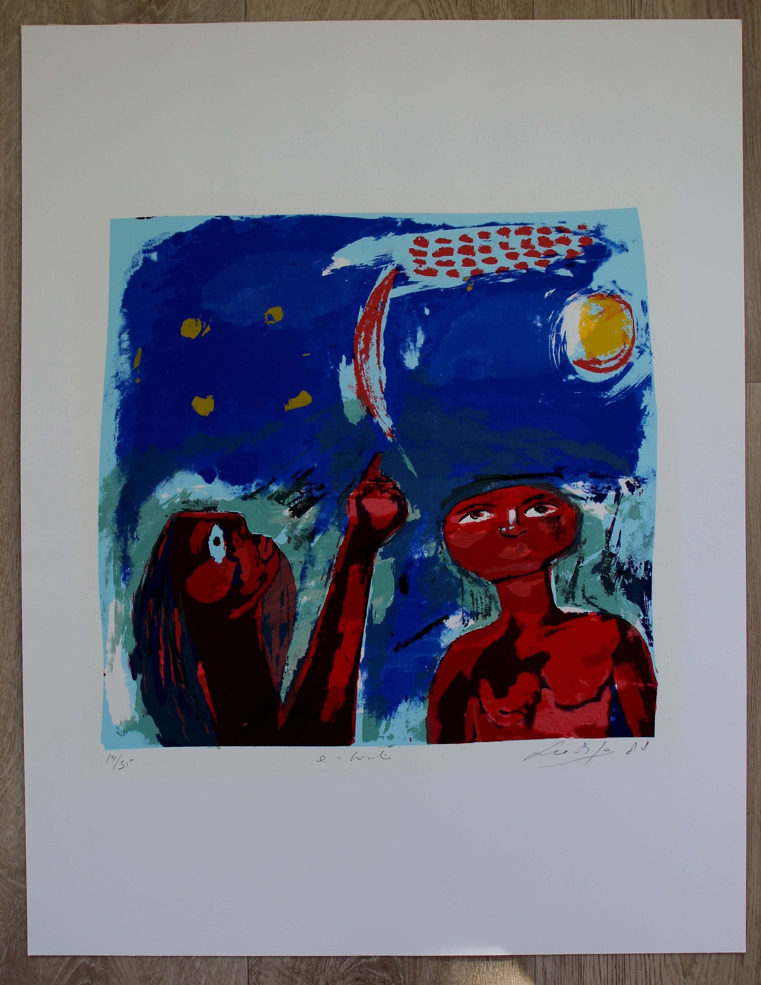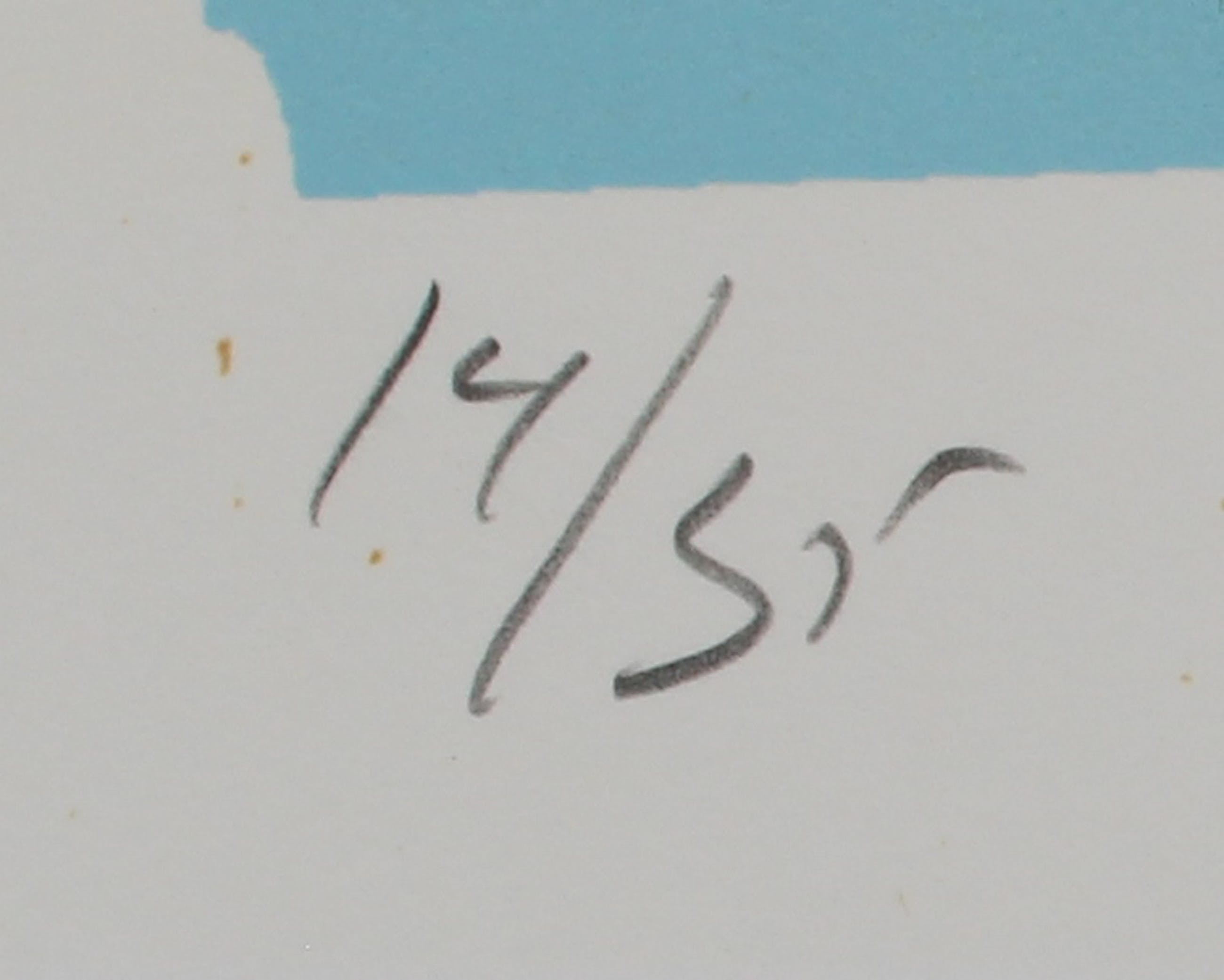 Zeefdruk van John Lie a Fo uit 1988. Nummer 14/35. Afmetingen blad H65 X b50. Afmetingen voorstelling H38 X b36.5. Het werk is rechtsonder gesigneerd door de kunstenaar. De authenticiteit van het aangeboden werk wordt volledig gegarandeerd. Een certificaat van echtheid kan, op aanvraag worden gemaild. Herkomst: Collectie ABN AMRO. Conditie: in goede staat.