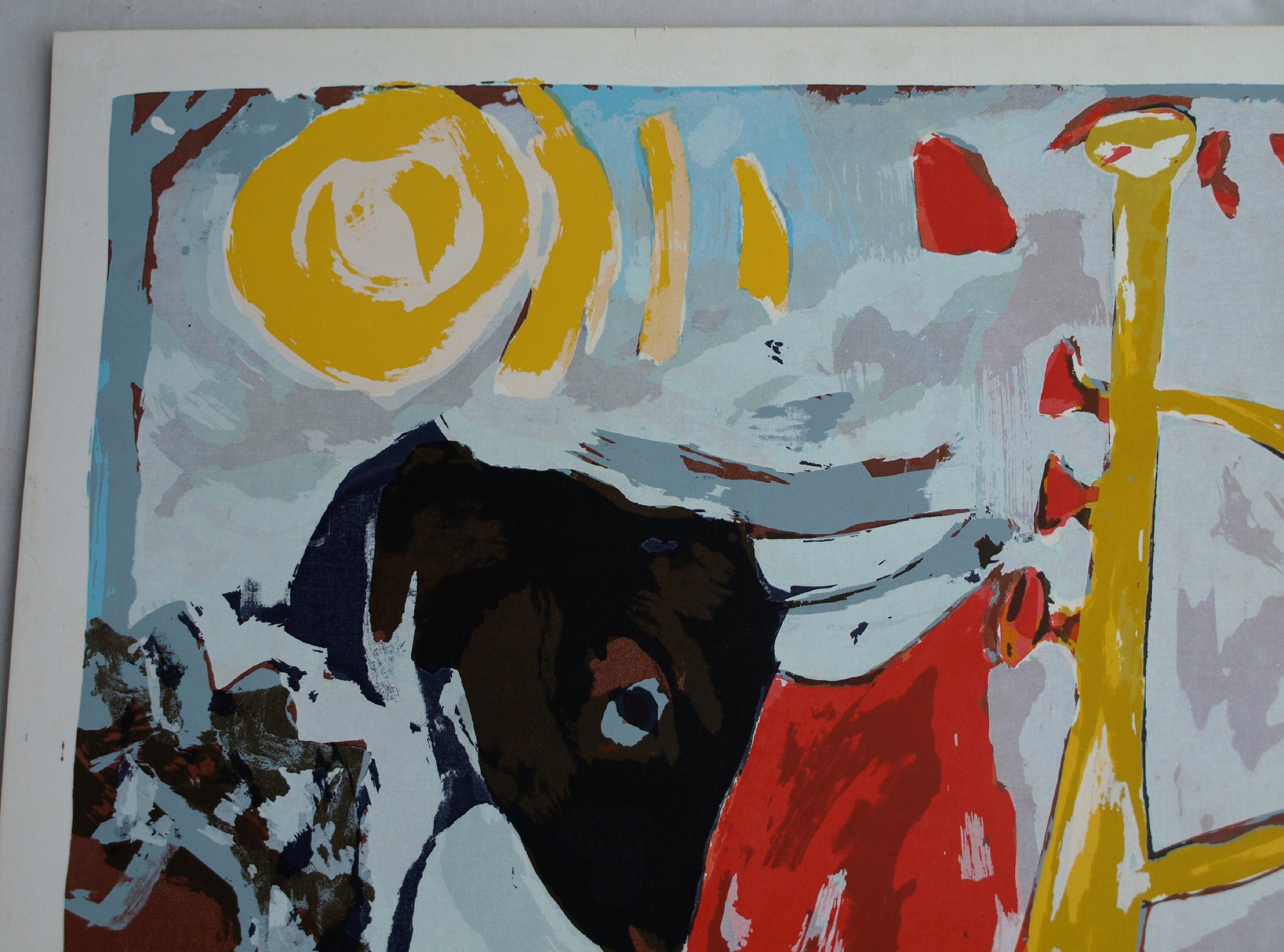 | De zeefdruk is in goede staat met wat lichte vlekjes aan de randen (o.a. links van de signatuur). Zie ook de foto’s voor een eigen indruk. | |||