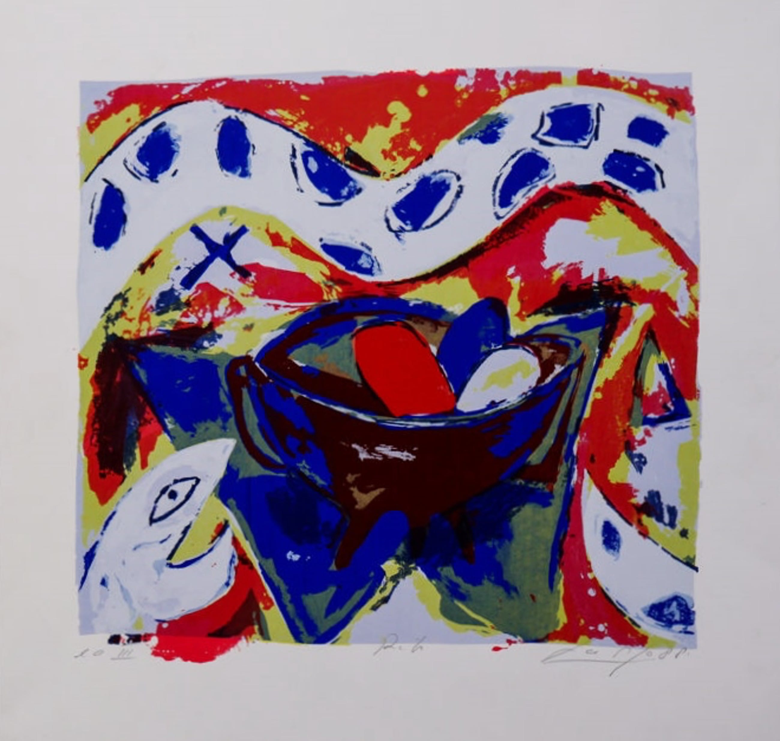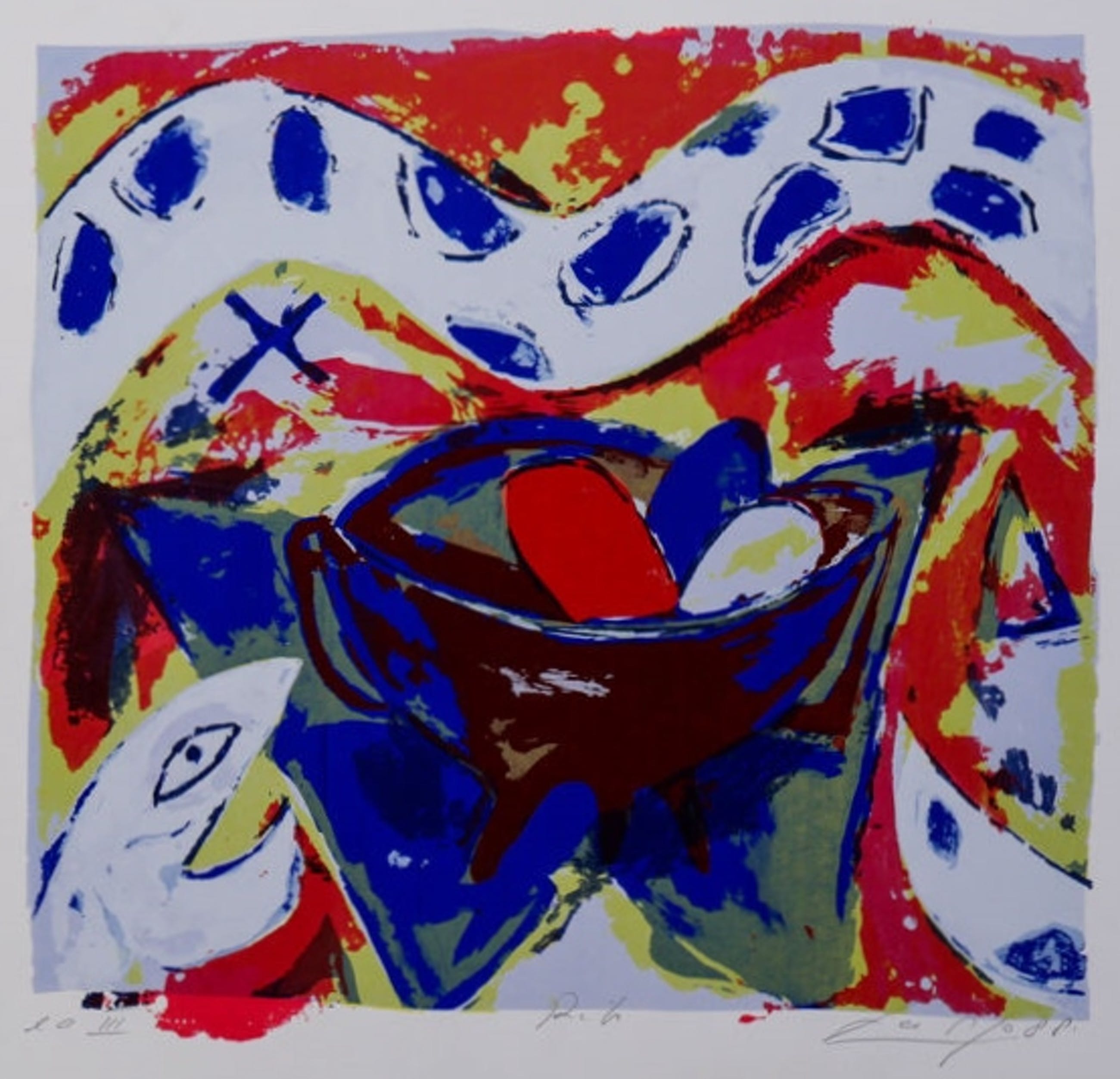 *Fraaie gesigneerde zeefdruk van de kunstenaar John Lie a Fo. Betreft een e.a. exemplaar, nr. 3