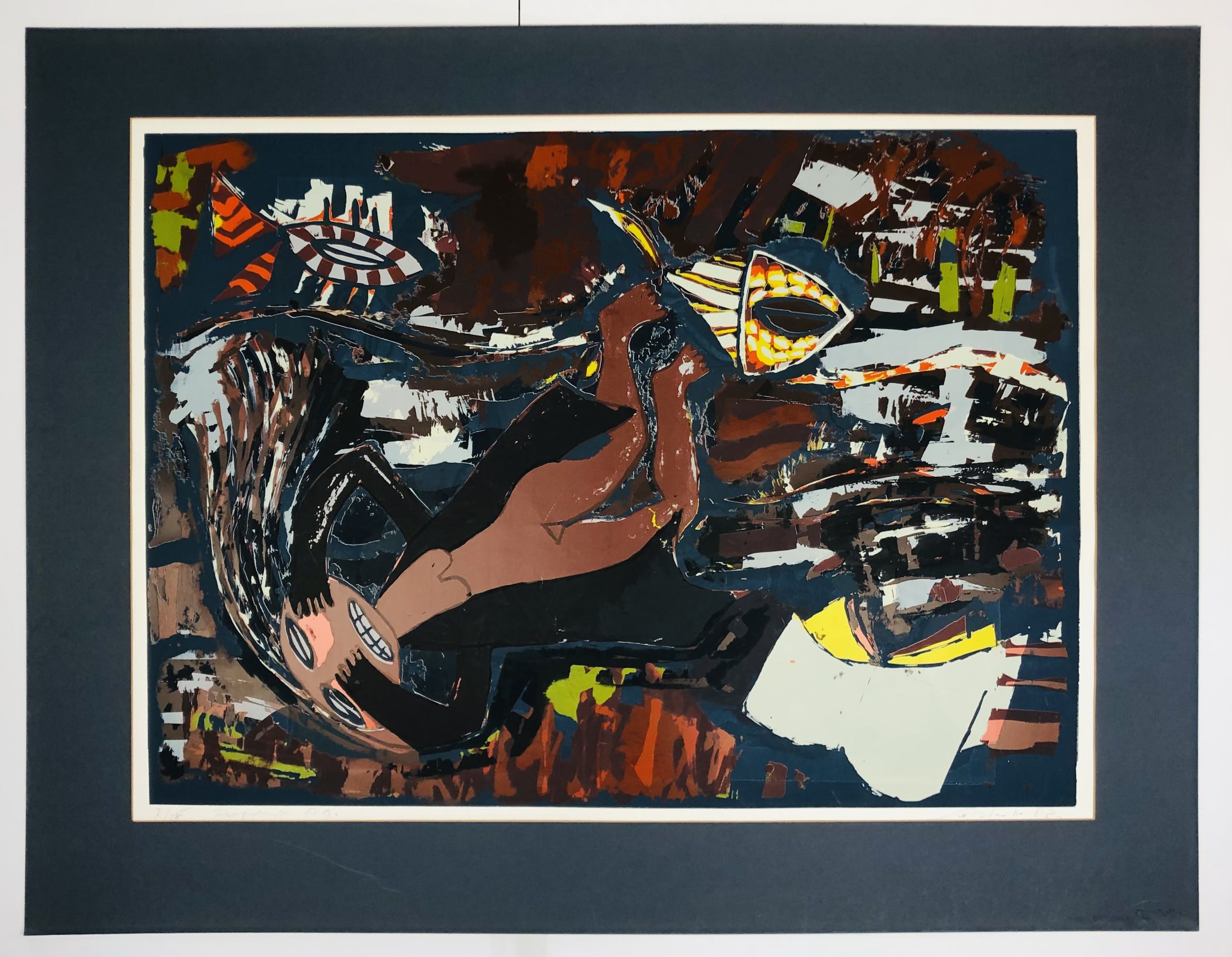 Mooie zeefdruk van John Lie a Fo in goede staat. John Lie A Fo is een Surinaamse beeldend kunstenaar die recent weer in de pickture staat. Hij heeft een Chinees-Surinaamse familienaam. Hij werkt in Frans-Guyana en exposeert regelmatig in Nederland. Als u het komt ophalen in onze schatkamer dan zit er een passe partout omheen, toesturen zonder passe partout. Gesigneerd en genummerd. U kunt het werk vooraf komen beoordelen bij galerie Rotor in Gorinchem. pandemie tip: Na aankoop gratis laten opslaan in onze verwarmde depot. Ook kunnen wij uw inlijsting verzorgen.
