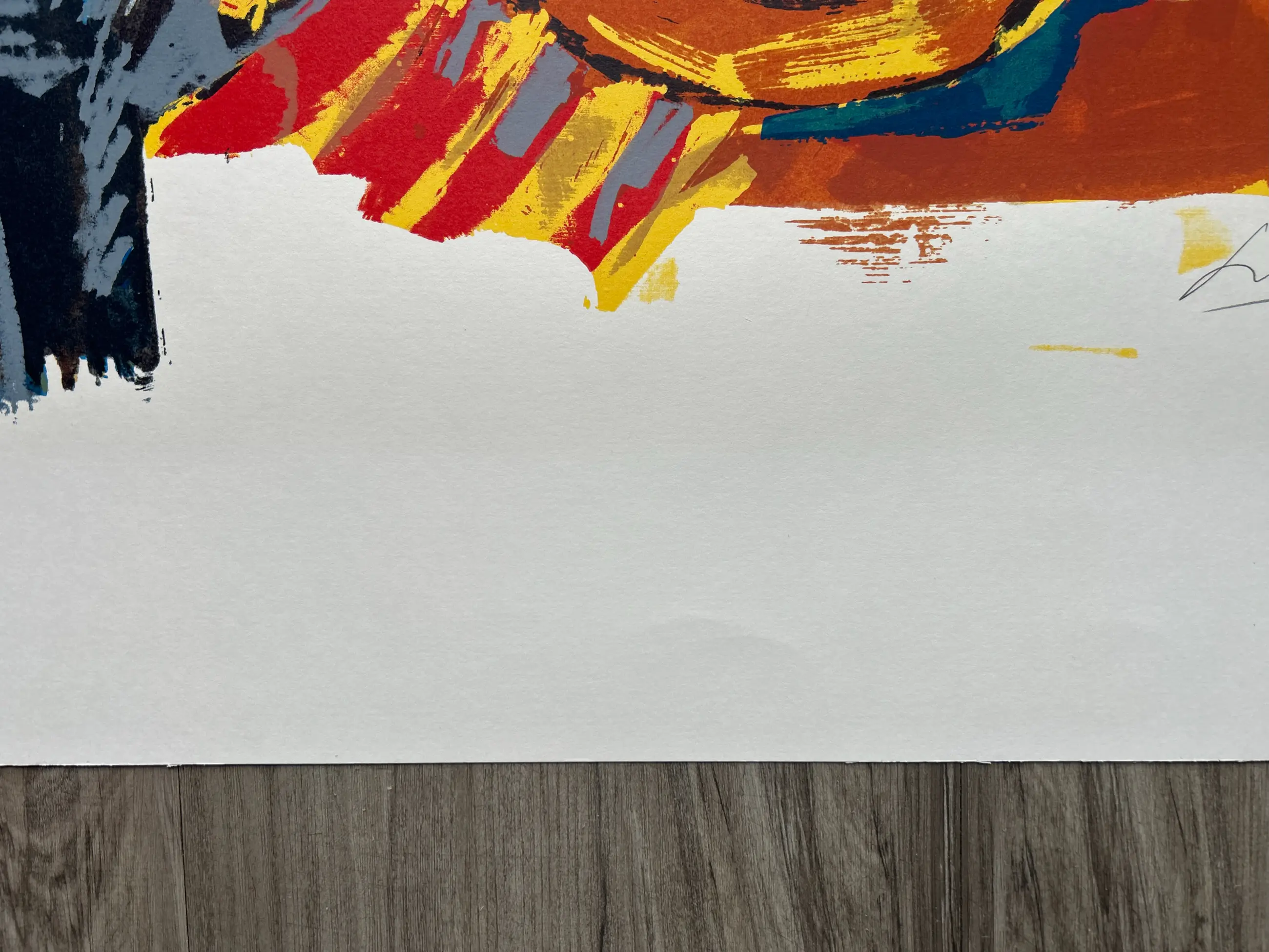 Conditie: zeer goed. Deukje onderin vel en boven, zie foto's. Oplage: 53/65. Afmeting: afbeelding 52 x 70 cm. Wordt zorgvuldig verpakt en verzekerd verzonden.