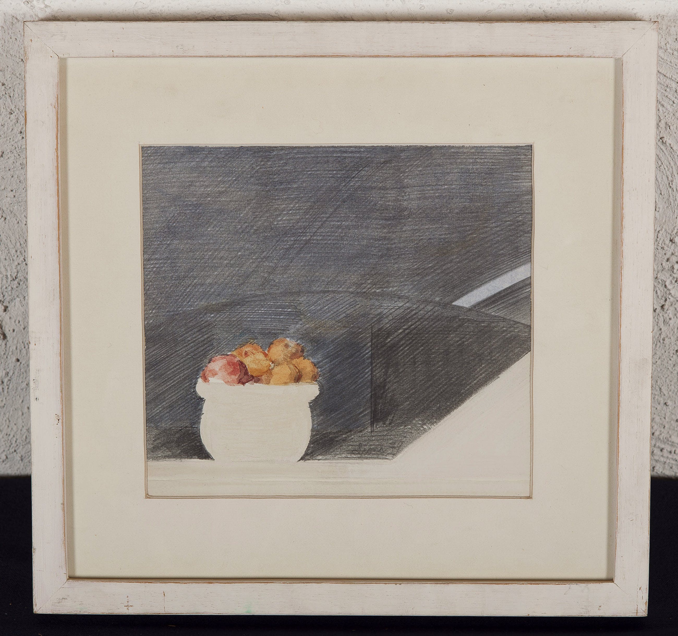| De passepartout is vergeeld en de lijst heeft enkele kleine beschadigingen. Behalve wat vergeling in de dikke laag gouache aan de onderzijde is het werk in goede staat. | |