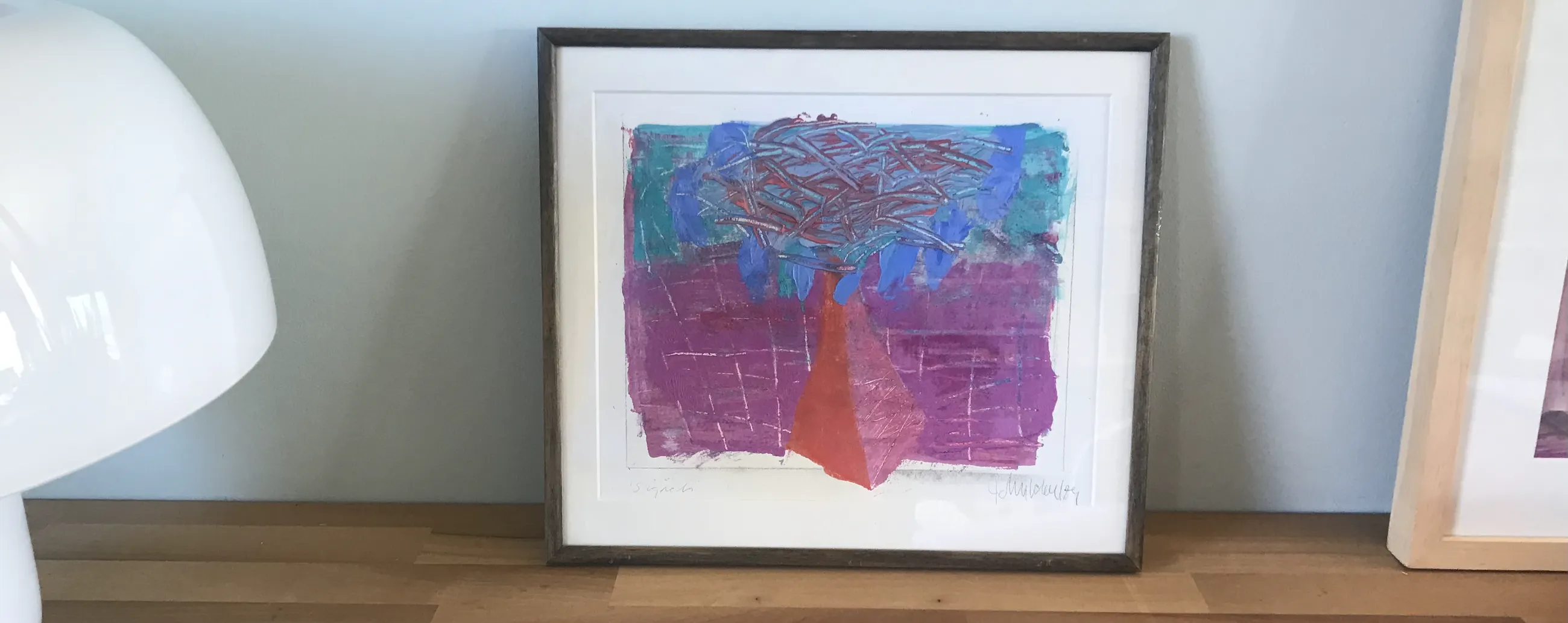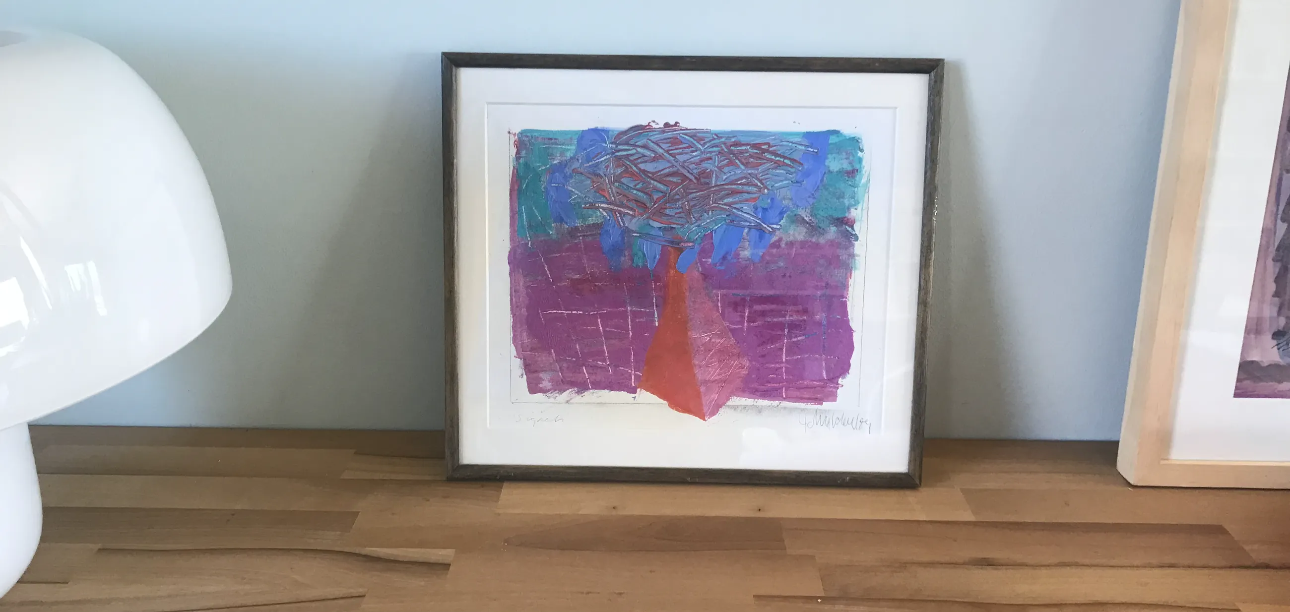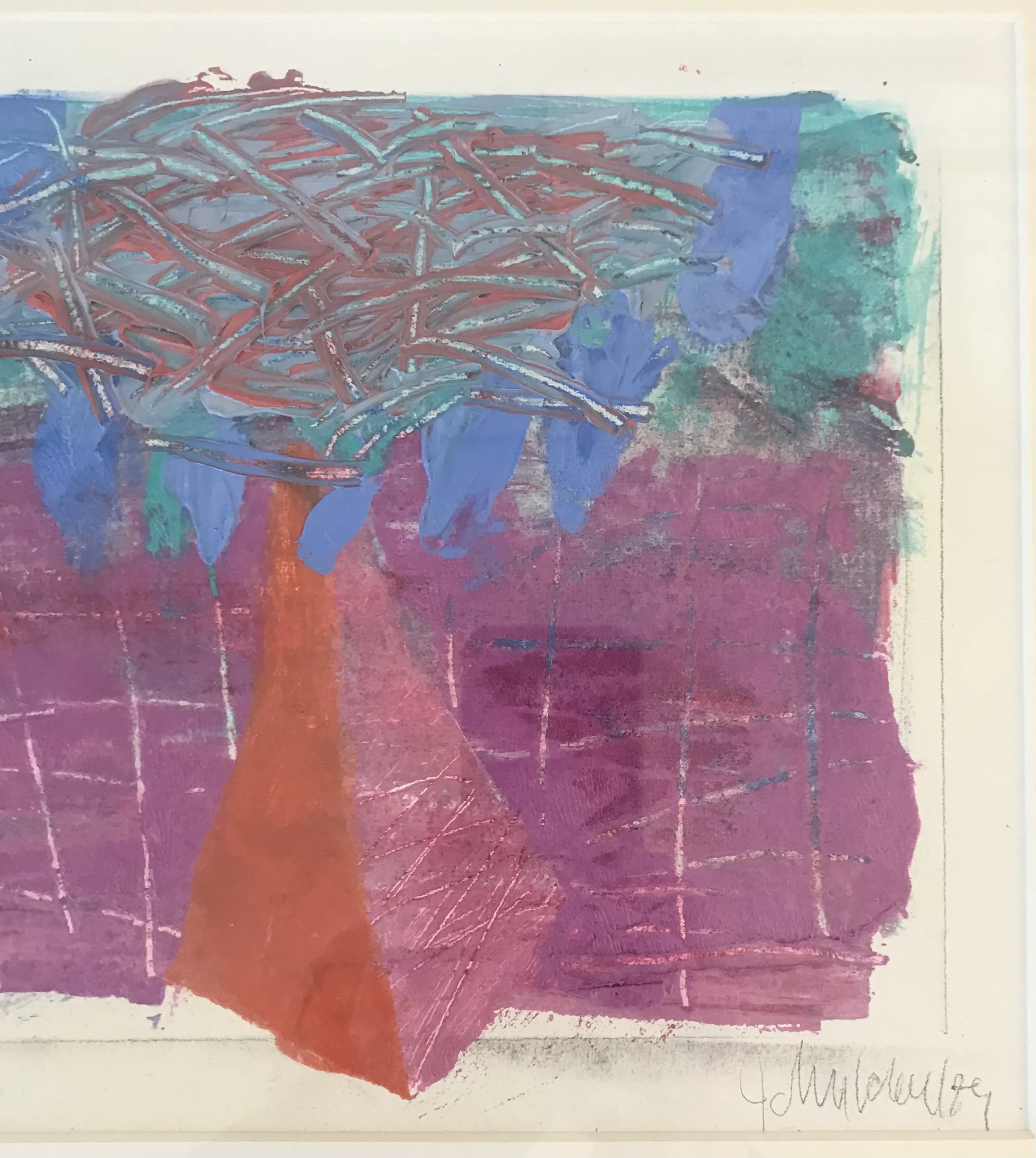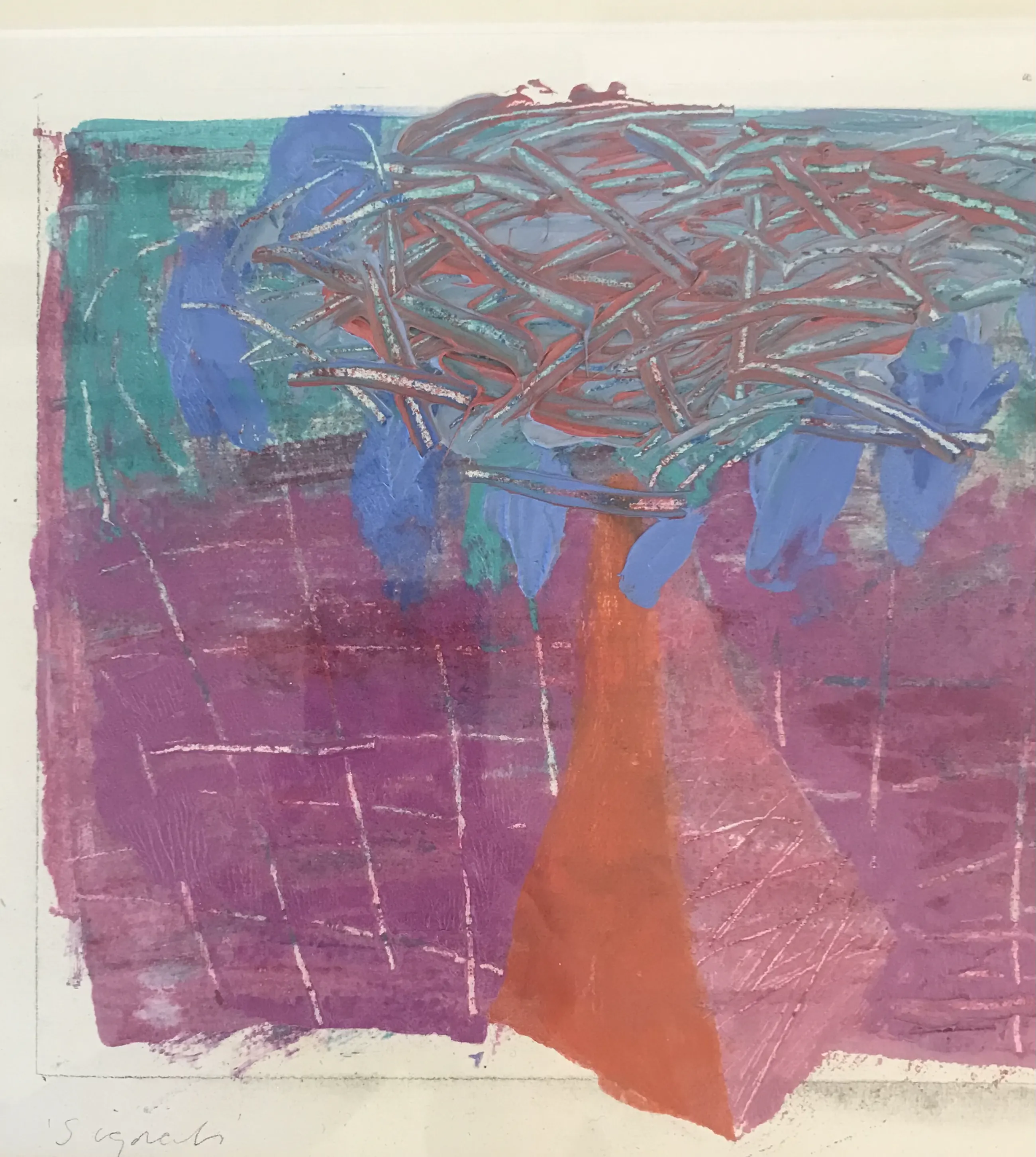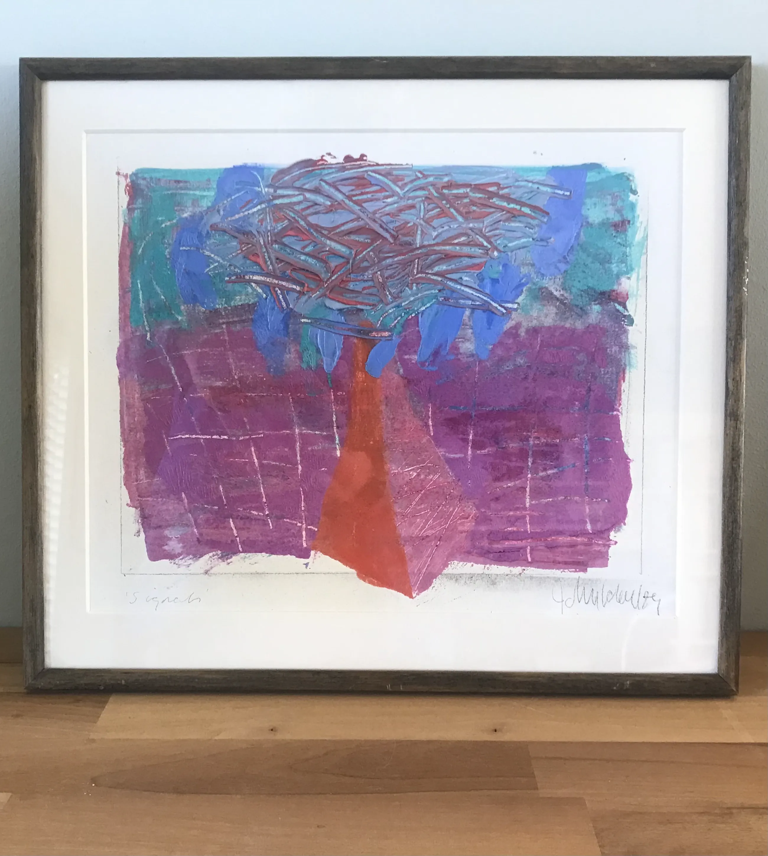 Titel: Signals Jaartal: 1989 Origineel werk. Gesigneerd: Ja Getiteld: Ja Materiaal: Gemengde techniek op geschept papier Ingelijst!