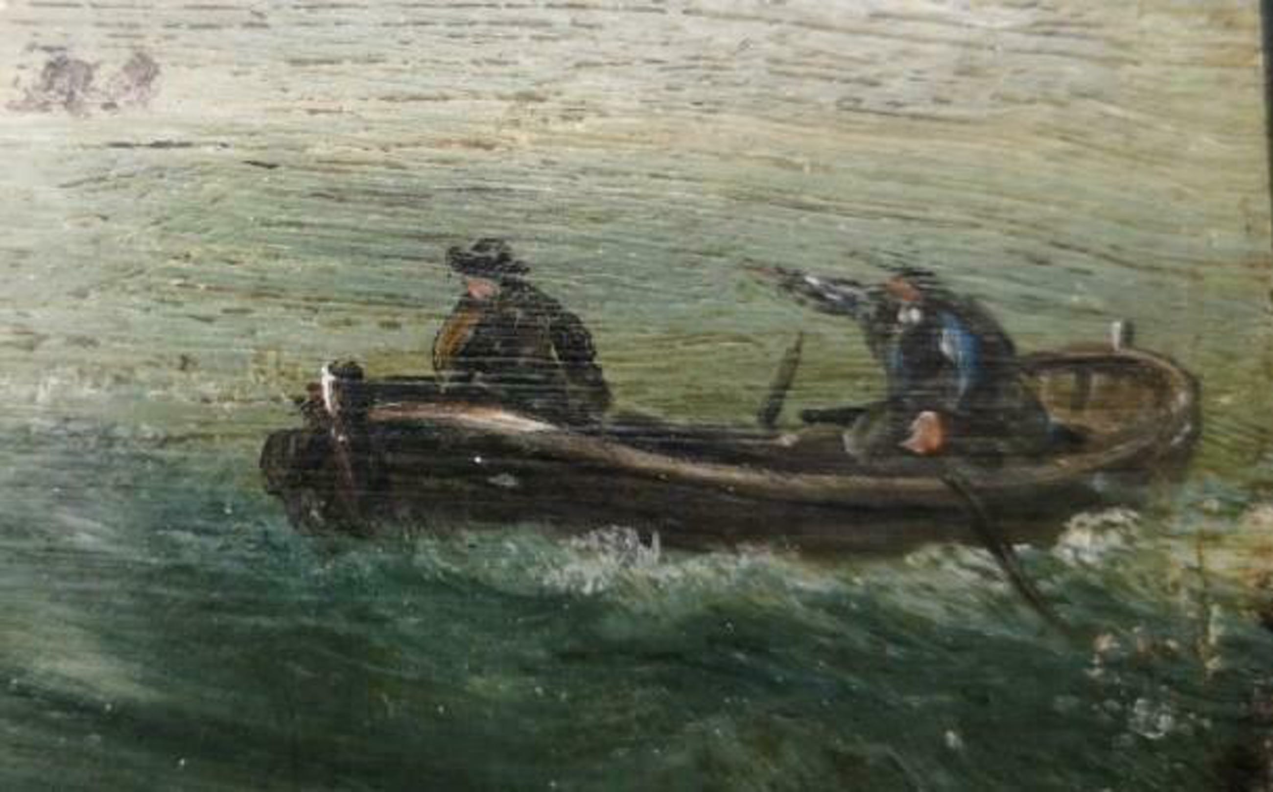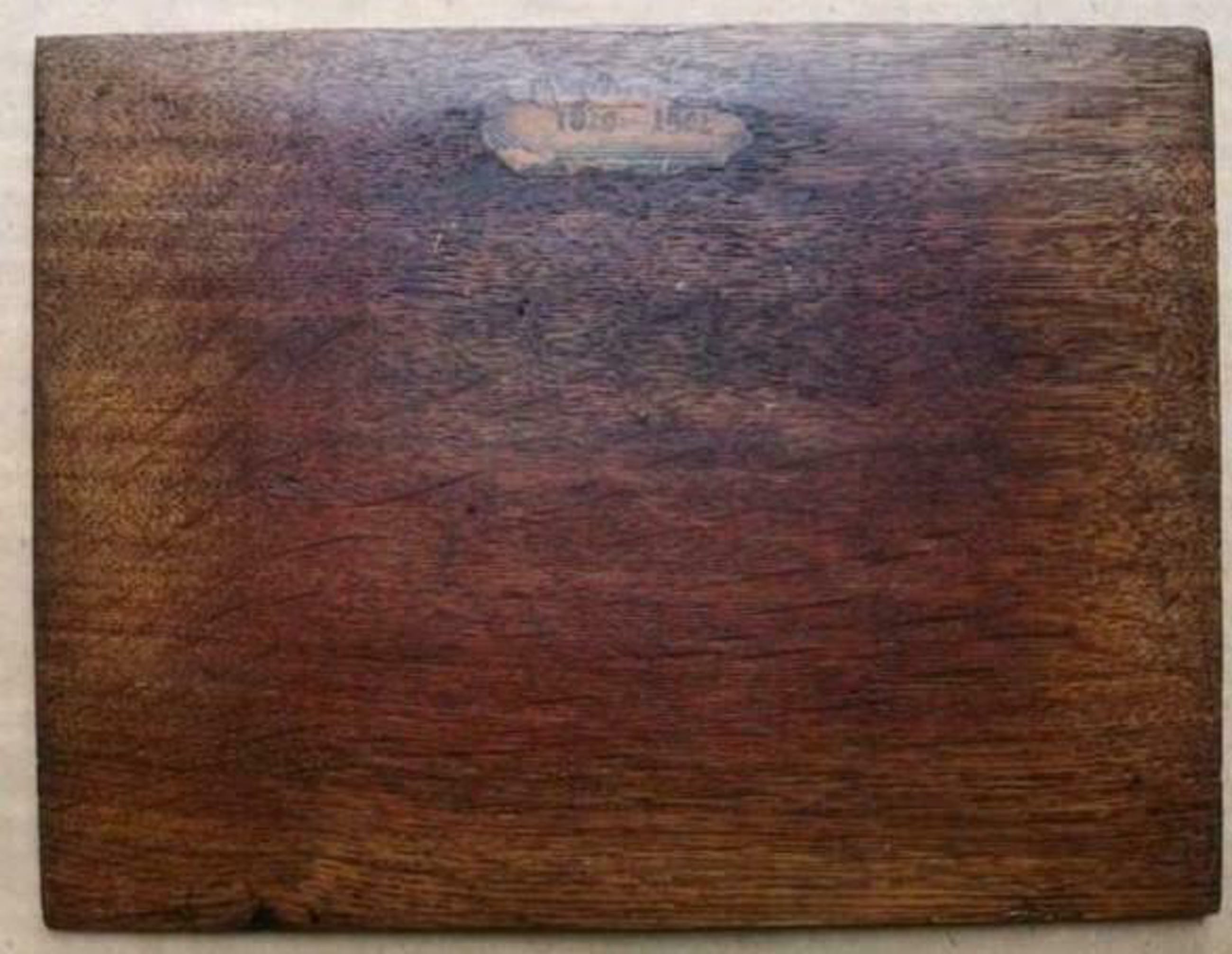 werkje is geschilderd op een eikenhouten paneel, op de achterzijde is