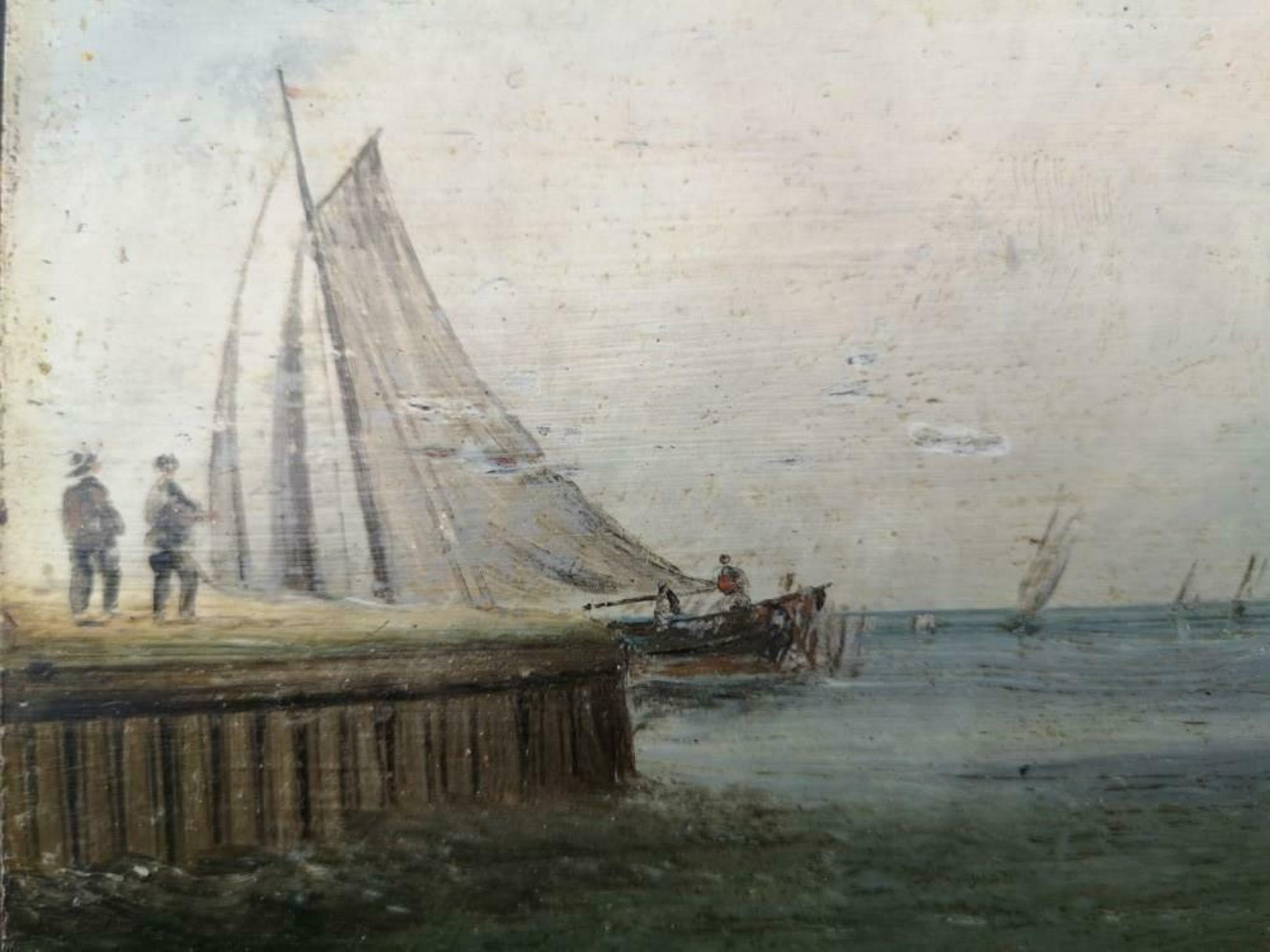 nog een stukje zichtbaar van een oud vervaagd label zichtbaar van een genoemde schilder