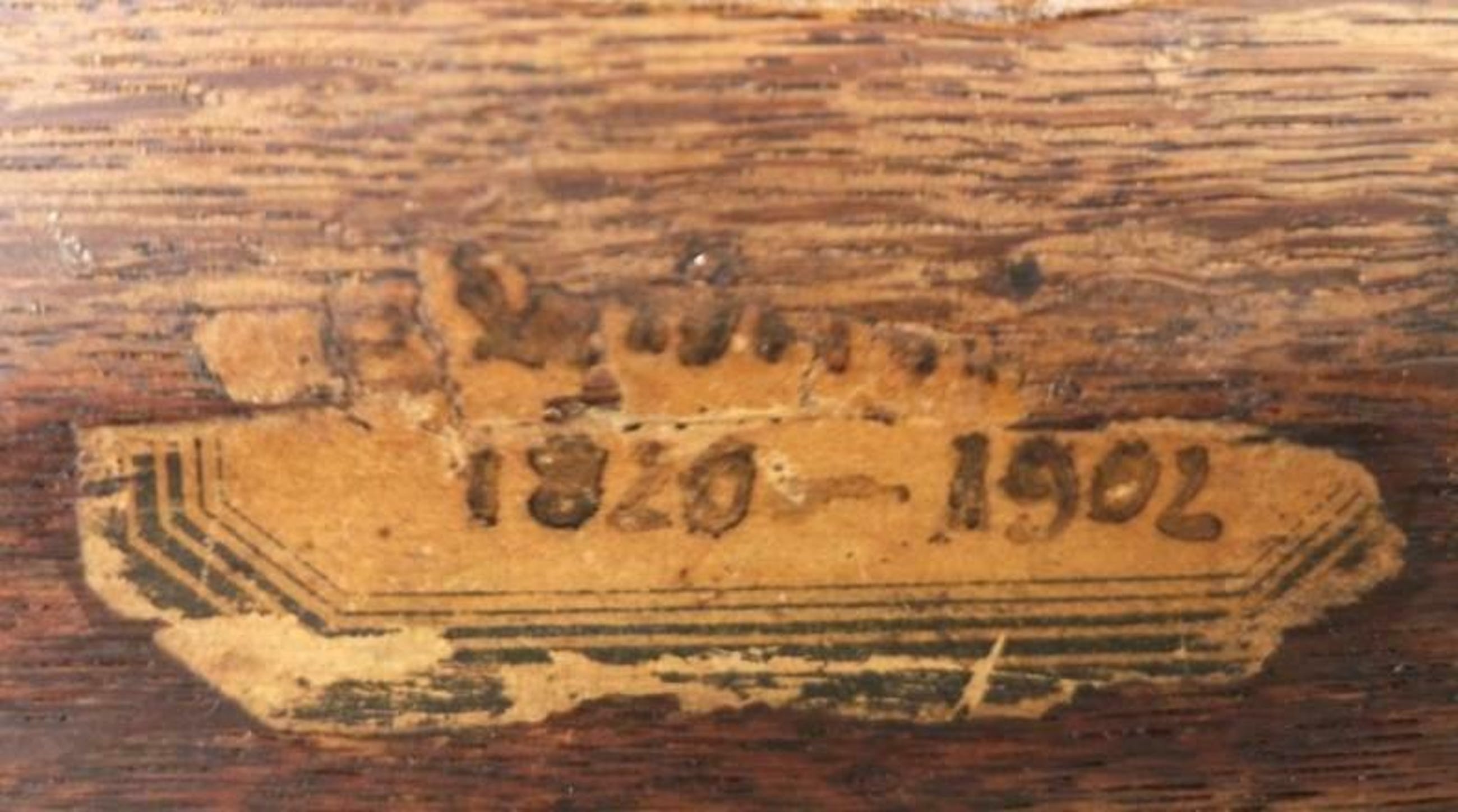daaronder is nog duidelijk een geboorte en sterftejaar zichtbaar (1820 - 1902) deze datum komt, net als het werk overeen met de schilder