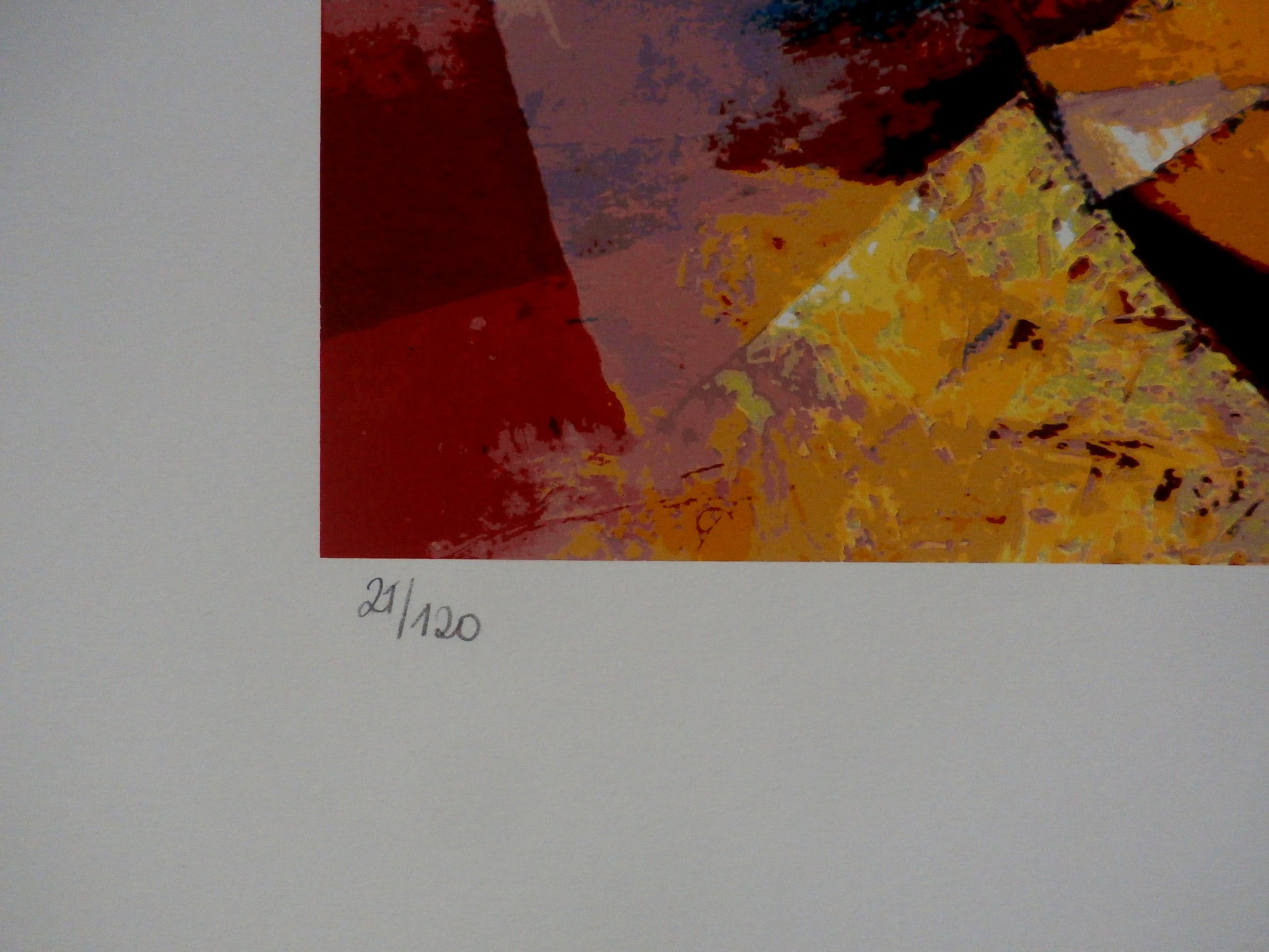 Zeefdruk van John Noy. Oplage 21/120. Afmetingen blad: H75x b101. Afmetingen voorstelling: H57 x b83cm. Het werk is rechts onderaan, met potlood, gesigneerd door de kunstenaar. De authenticiteit van het aangeboden werk wordt volledig gegarandeerd. Een certificaat van echtheid kan, op aanvraag, worden gemaild.