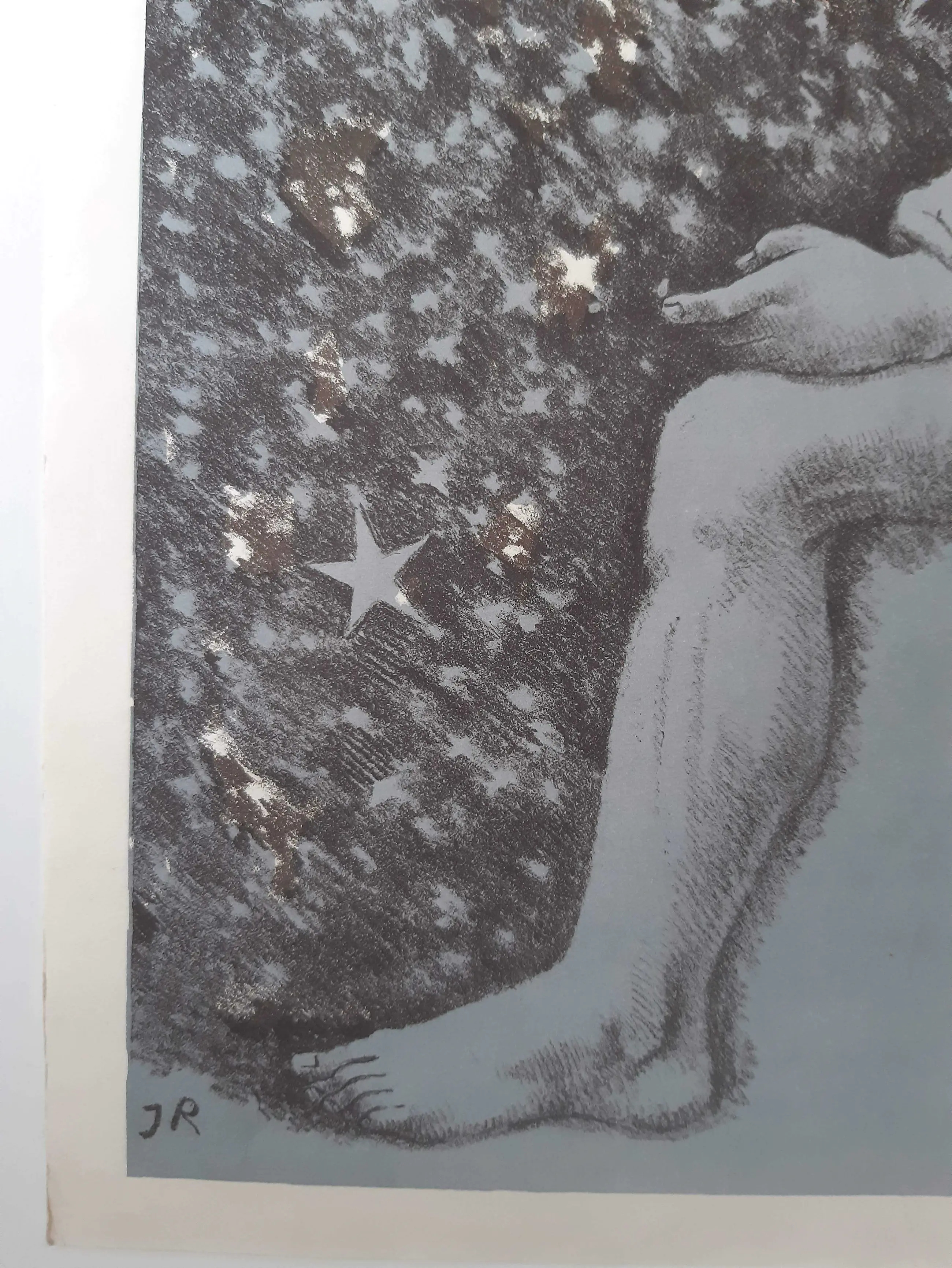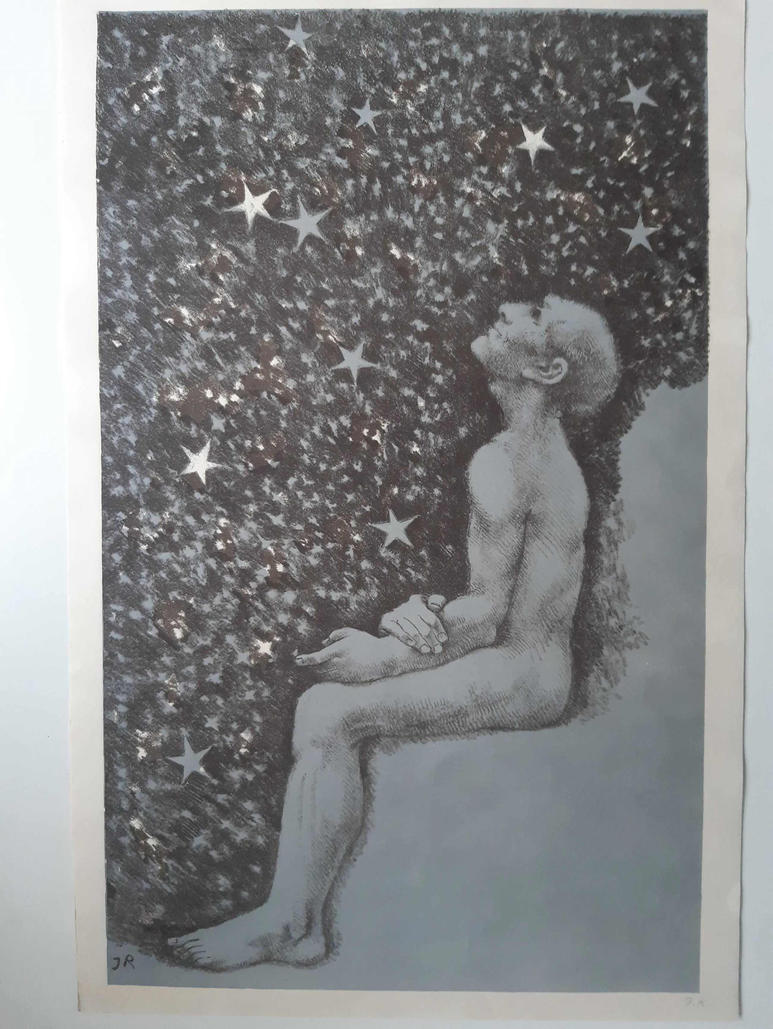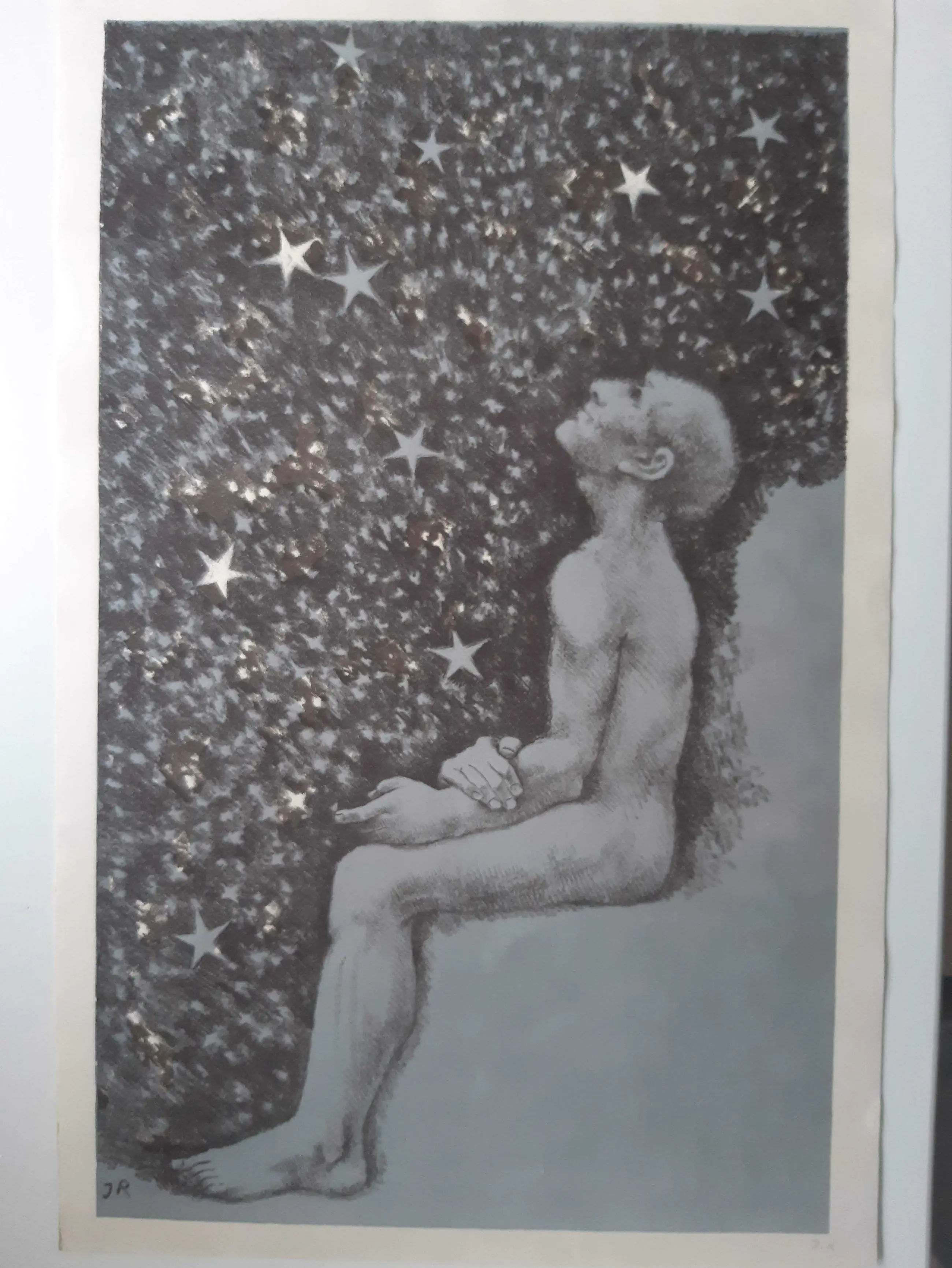 Originele Litho uit de serie Schildersprenten door John Rädecker. Voorstelling genaamd "Man in de nacht".