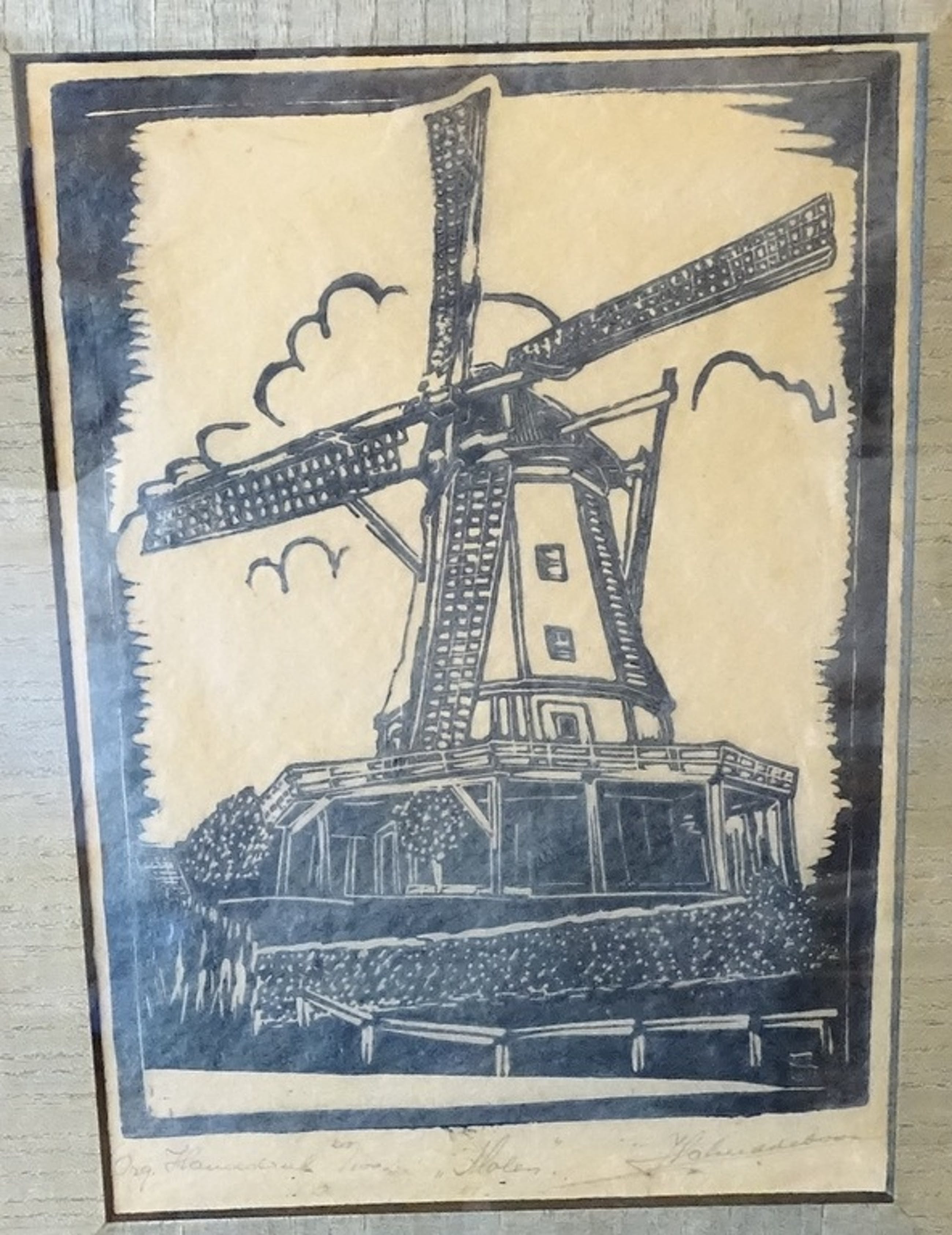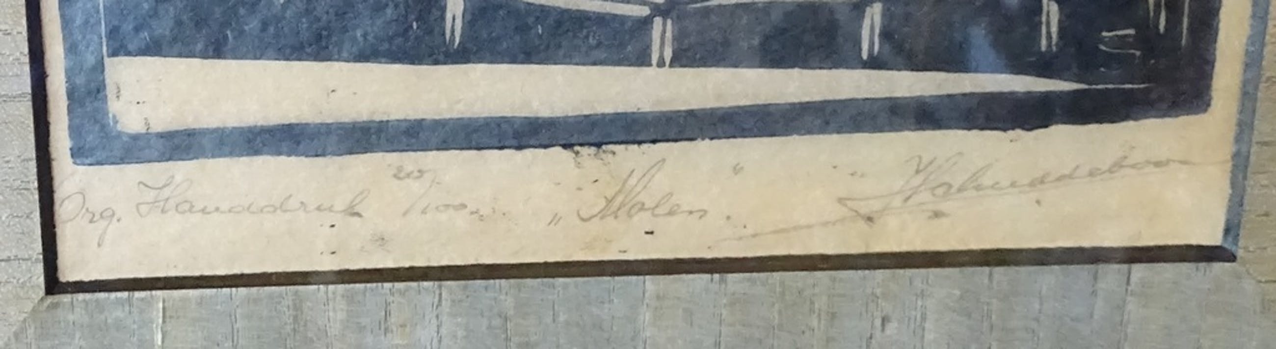 Mooie houtsnede, in een nieuwere lijst achter glas. Met potlood gesigneerd. Beeldmaat 19 x 27 cm. Lijstmaat: 38 x 48 cm. De lijst heeft enkele lichte gebruikssporen. Het geheel is in prima conditie.