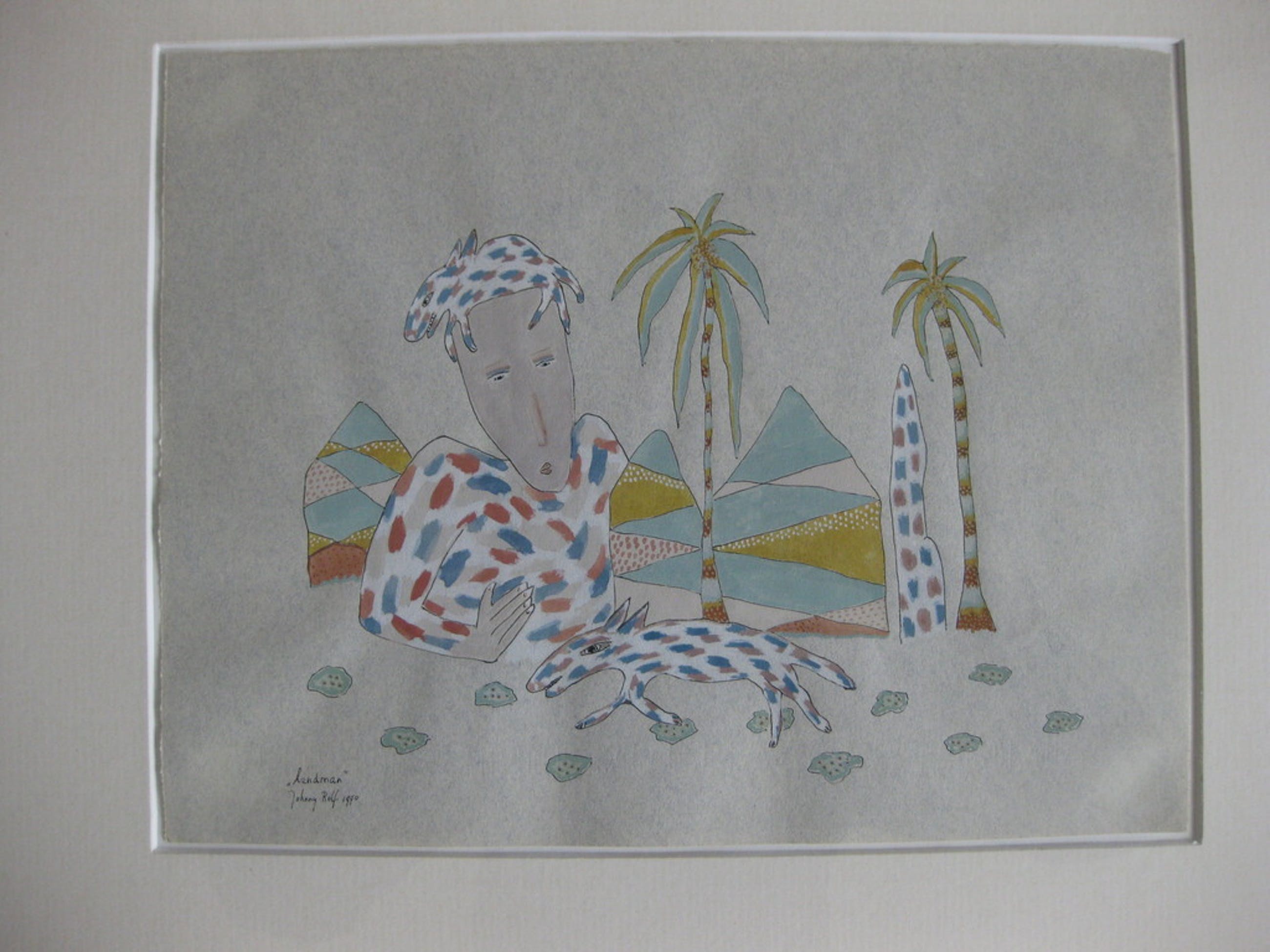 De poëtische tekening is handgesigneerd in inkt "Johnny Rolf, 1990".
