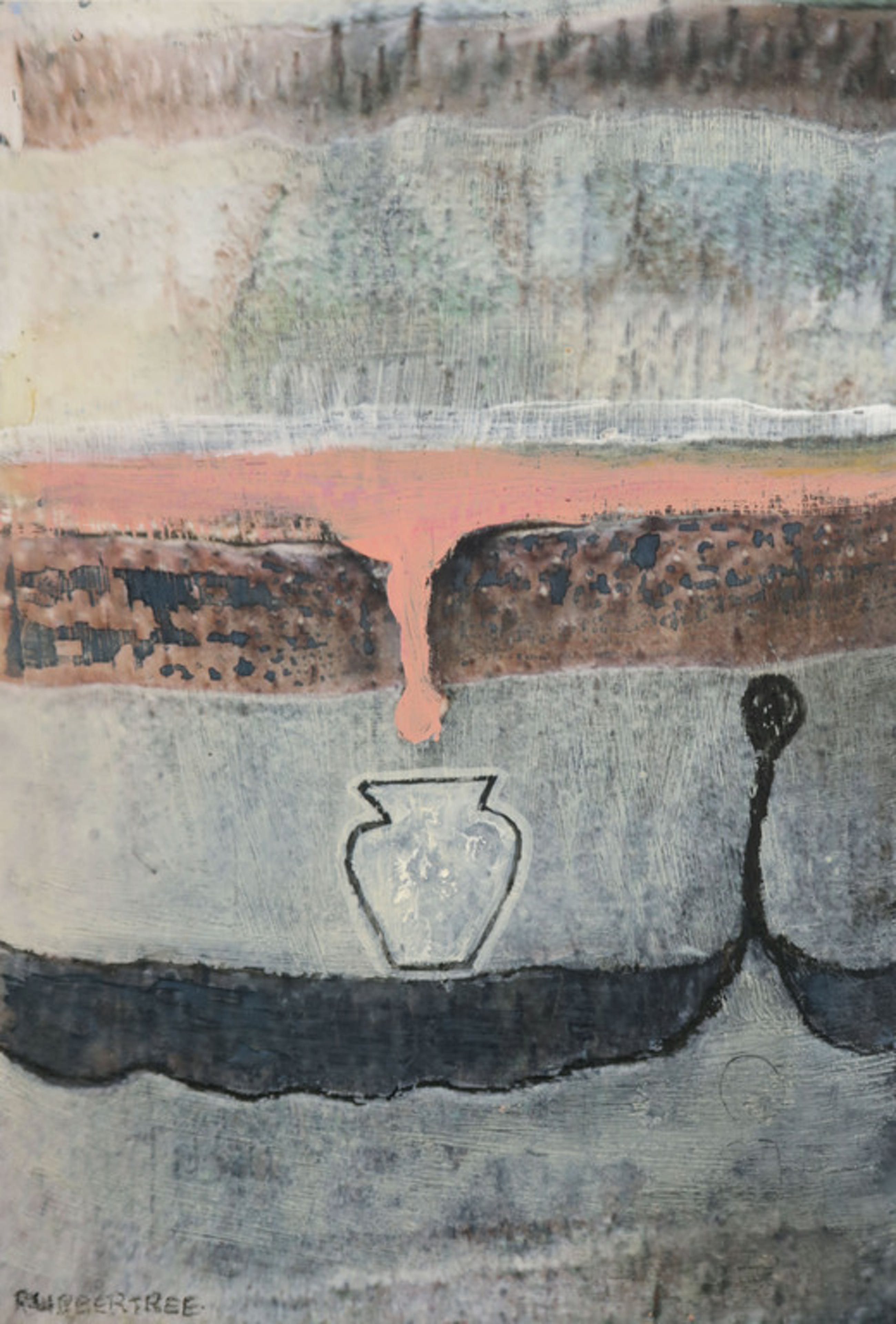 Materiaal: Gemengde techniek op papier, op onderblad gelijmd.