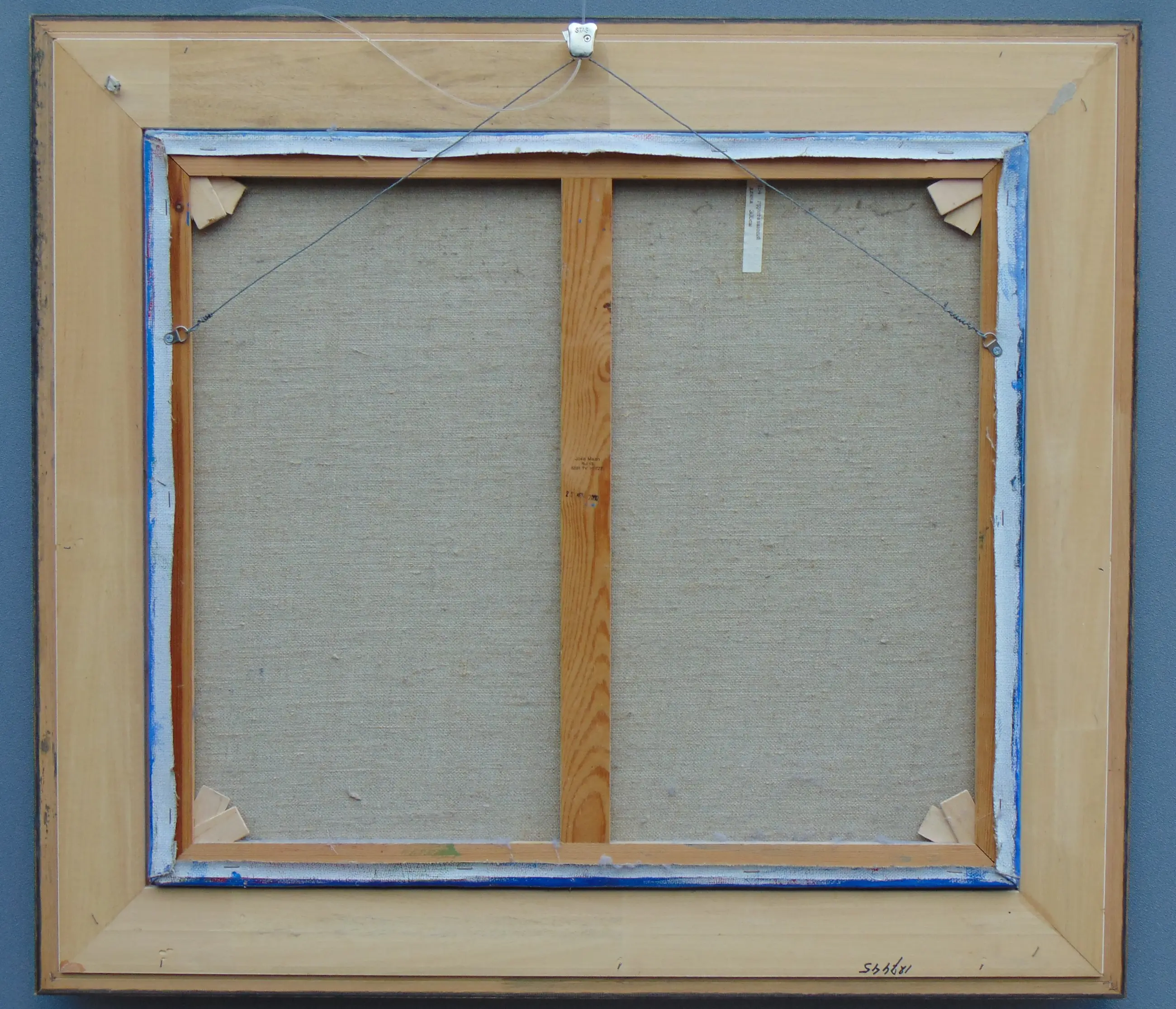 Dit werk is rechtsonder gesigneerd. Het werk zit een strakke brede lijst.