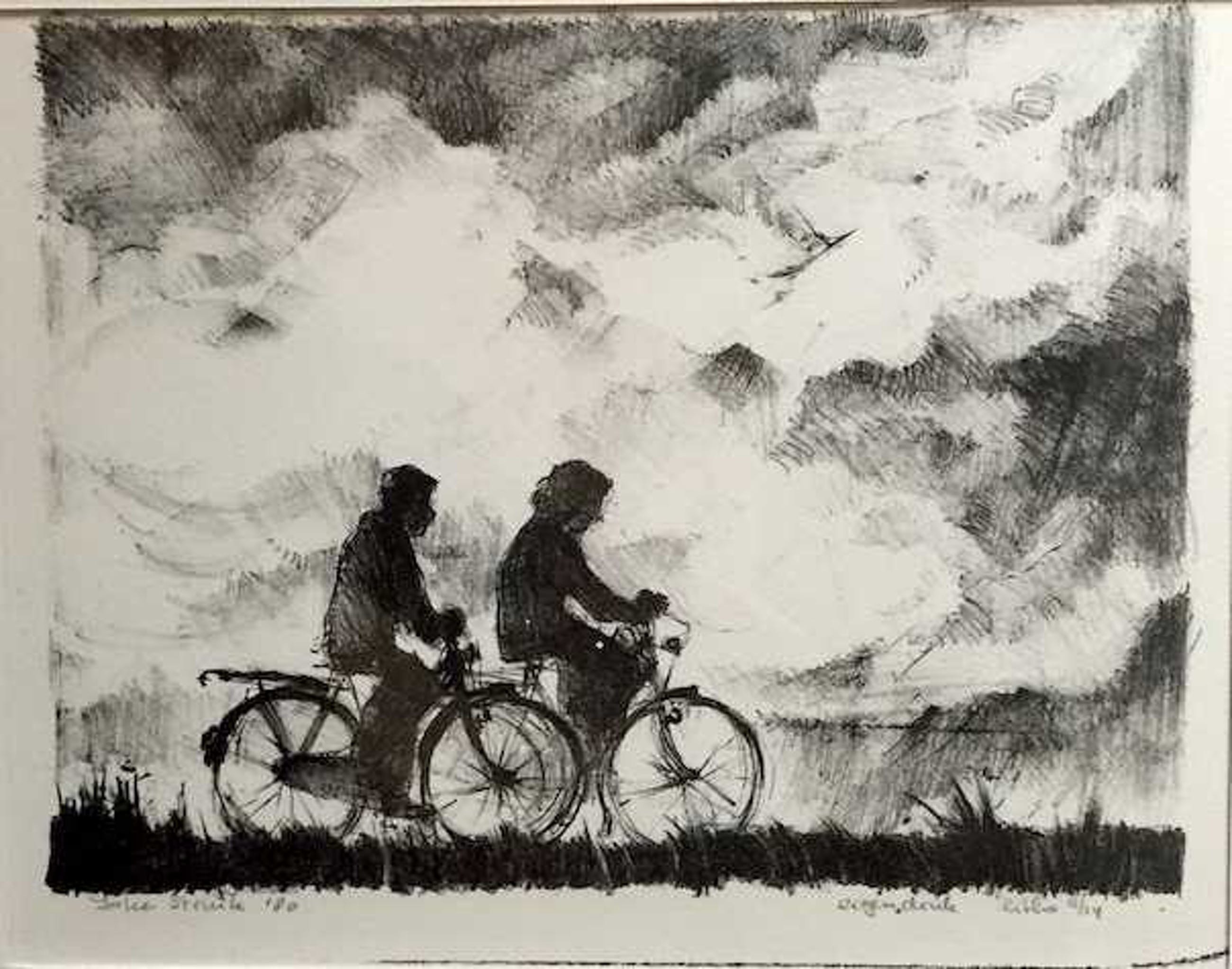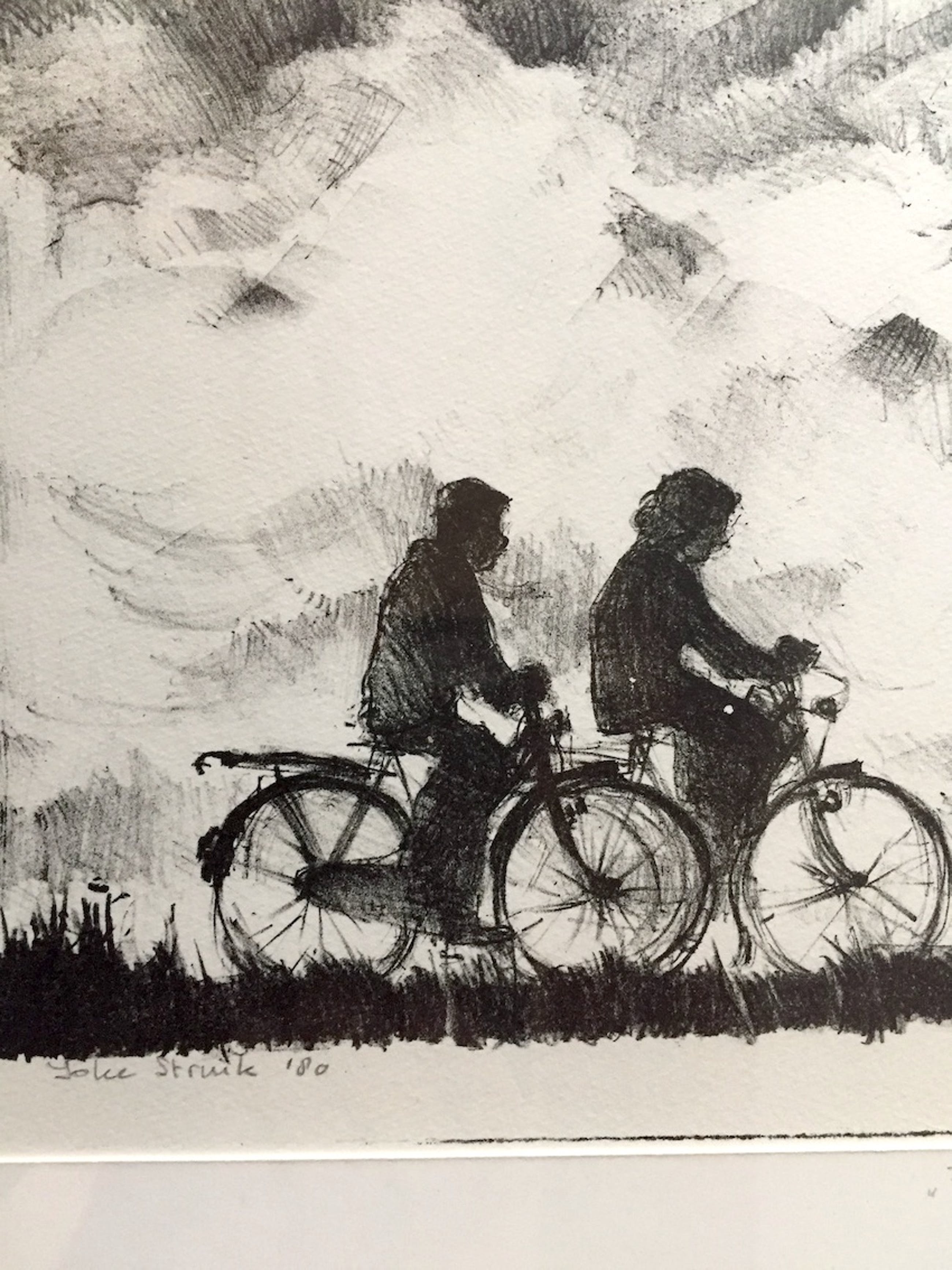 K WC 8 Joke Struik Zondagmiddag op de fiets Litho 2/14 eigen druk 1980 52 x 42 cm
