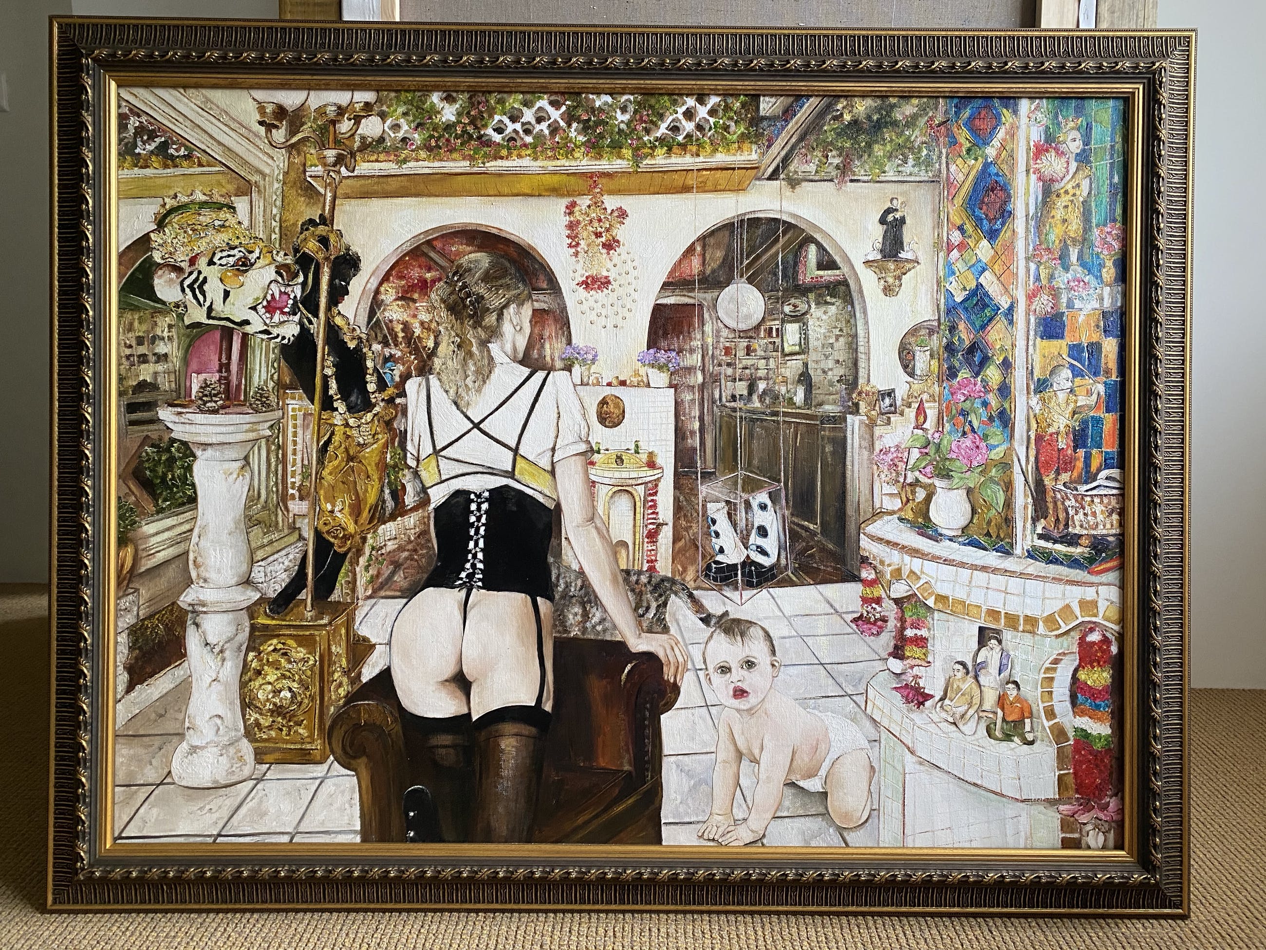 Een licht erotisch portret van een jonge moeder. Na expositie altijd in stock van de voormalige galerie opgeslagen.