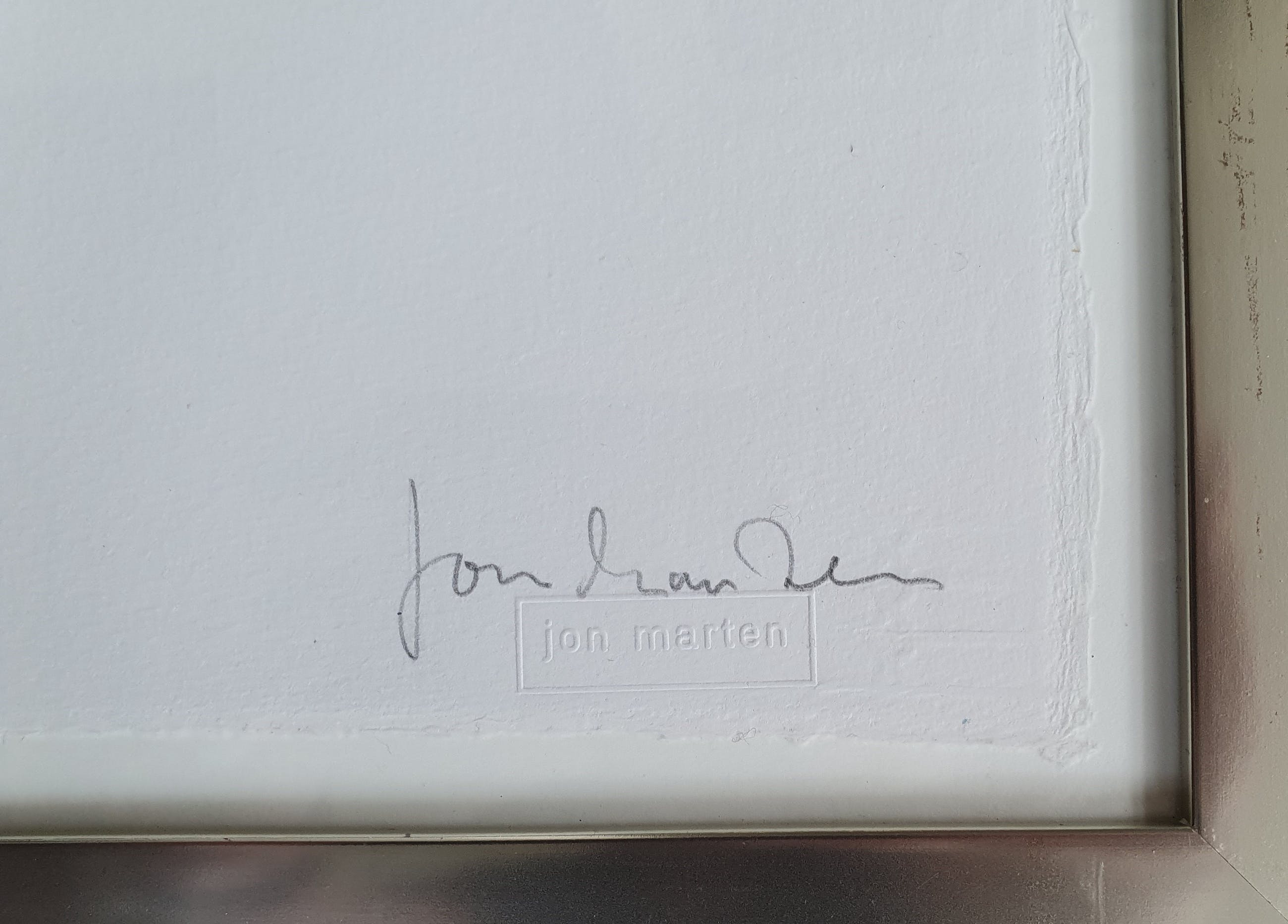 Kunstenaar: Jon Marten Techniek: Litho Oplage: 7/40 Gesigneerd: Rechtsonder Afwerking: Ingelijst Afmeting zonder lijst (HxB): 63 x 51 cm Afmeting met lijst (HxB): 71 x 57 cm Conditie werk: Goed Conditie lijst: Gebruikt Referentie: 00856 Provenance: Boekel De Nerée kunstcollectie.