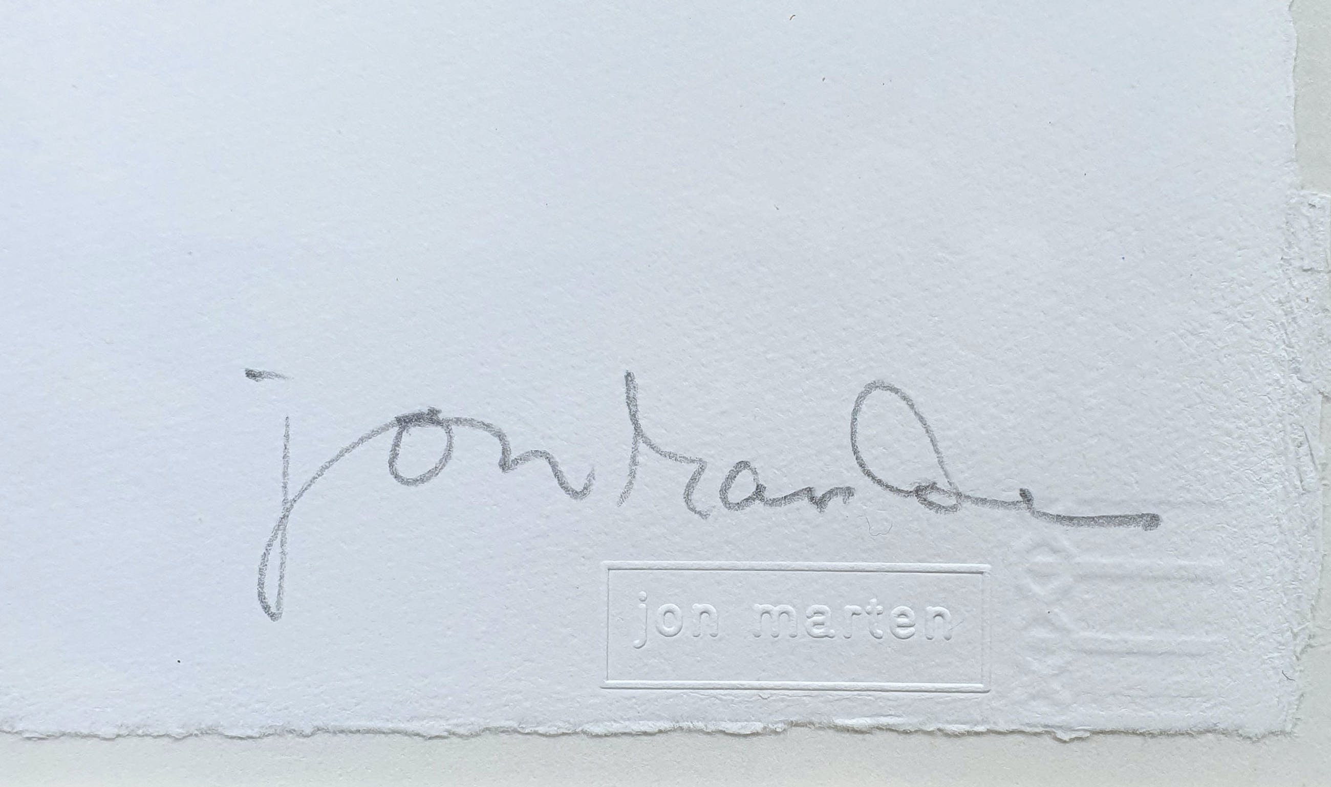 Fraaie kleurenlitho van Jon Marten. Het werk is zwevend ingelijst en voorzien van een bijpassende zilverkleurige lijst. Rechtsonder met de hand gesigneerd door de kunstenaar.