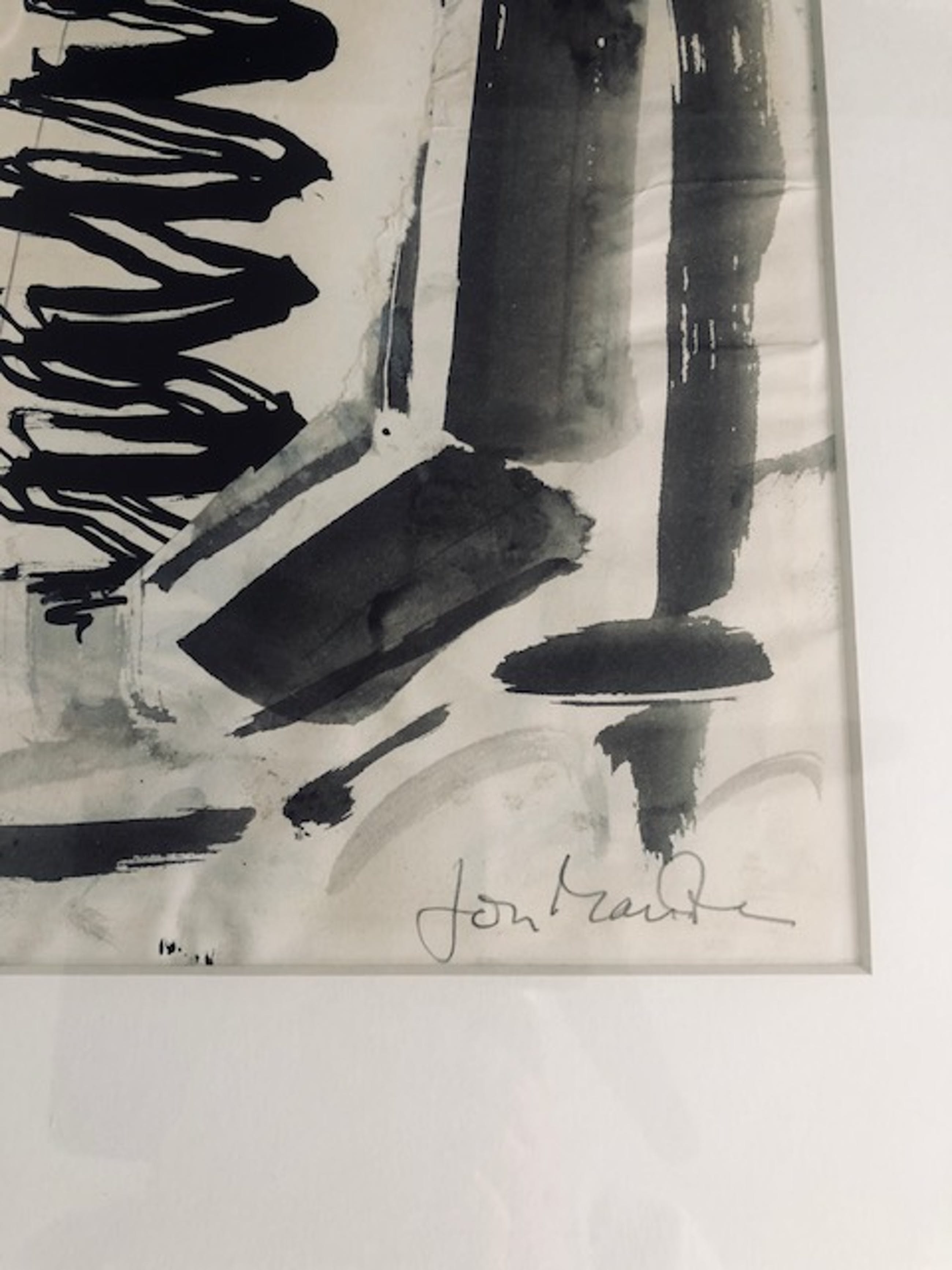 Ingelijst origineel kunstwerk van Jon Marten. Door kunstenaar gesigneerd. Niet gedateerd.
