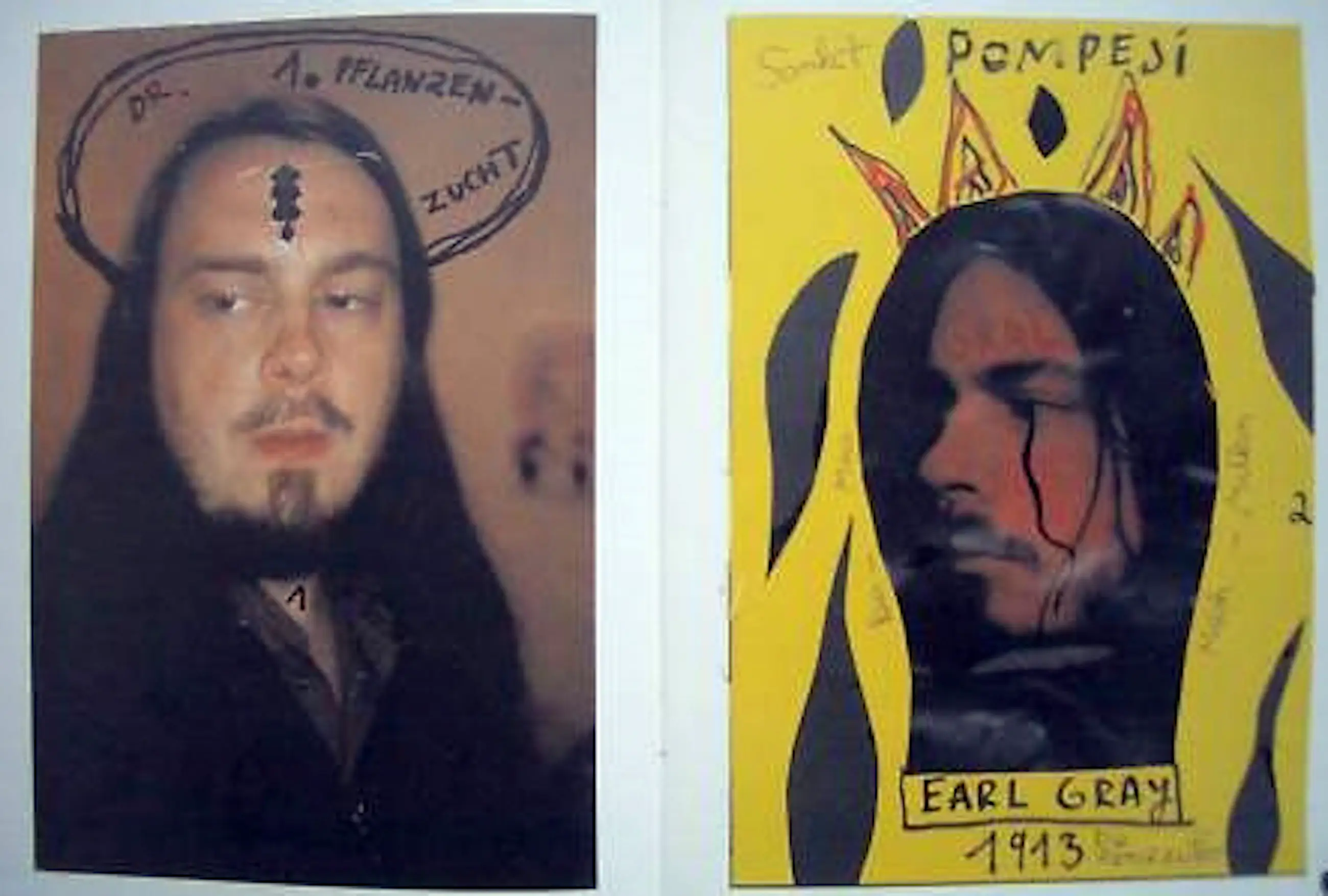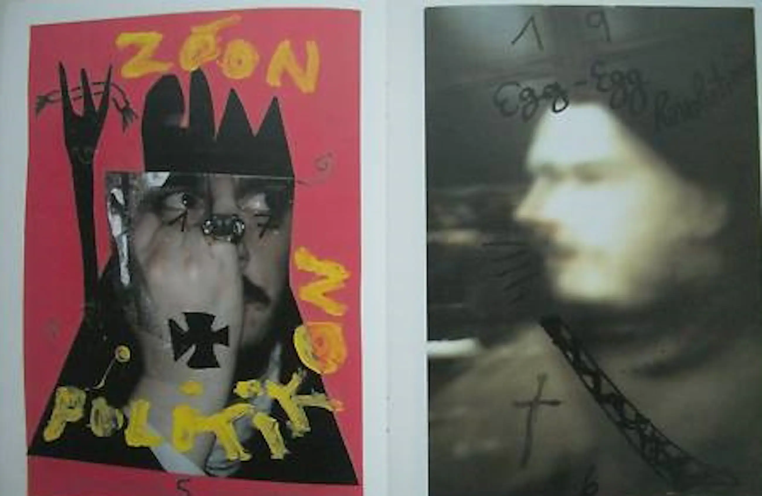 20 pagina's incl. omslag in nietgebonden in het formaat ca. 21,5 x 16,2 cm. Het is bovendien ingeschreven door Meese (o.a. "Erz der Hermetik", "Wünsche Radikaljahr 2006" etc.) en op plaatsen aangevuld met schilderijen