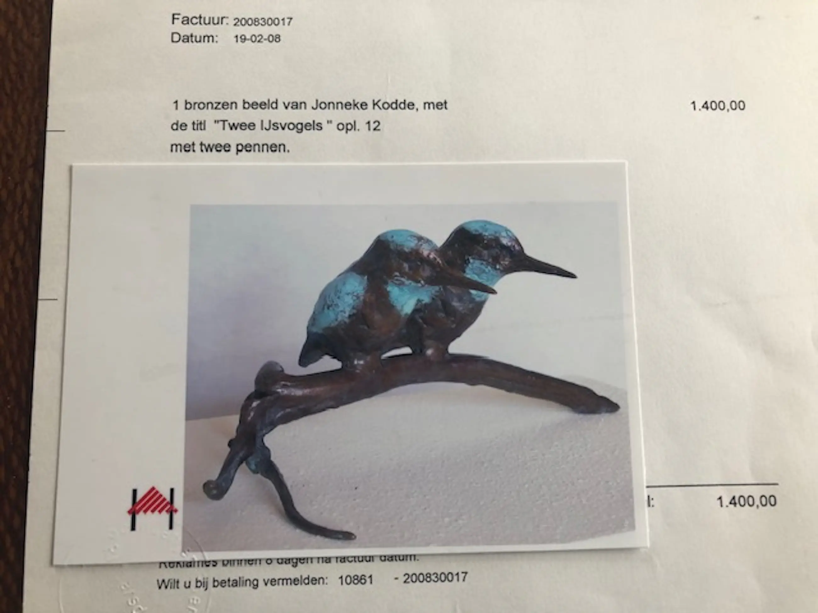 In prima staat Bronzen beeld Twee IJsvogels opl. 12 met twee pennen