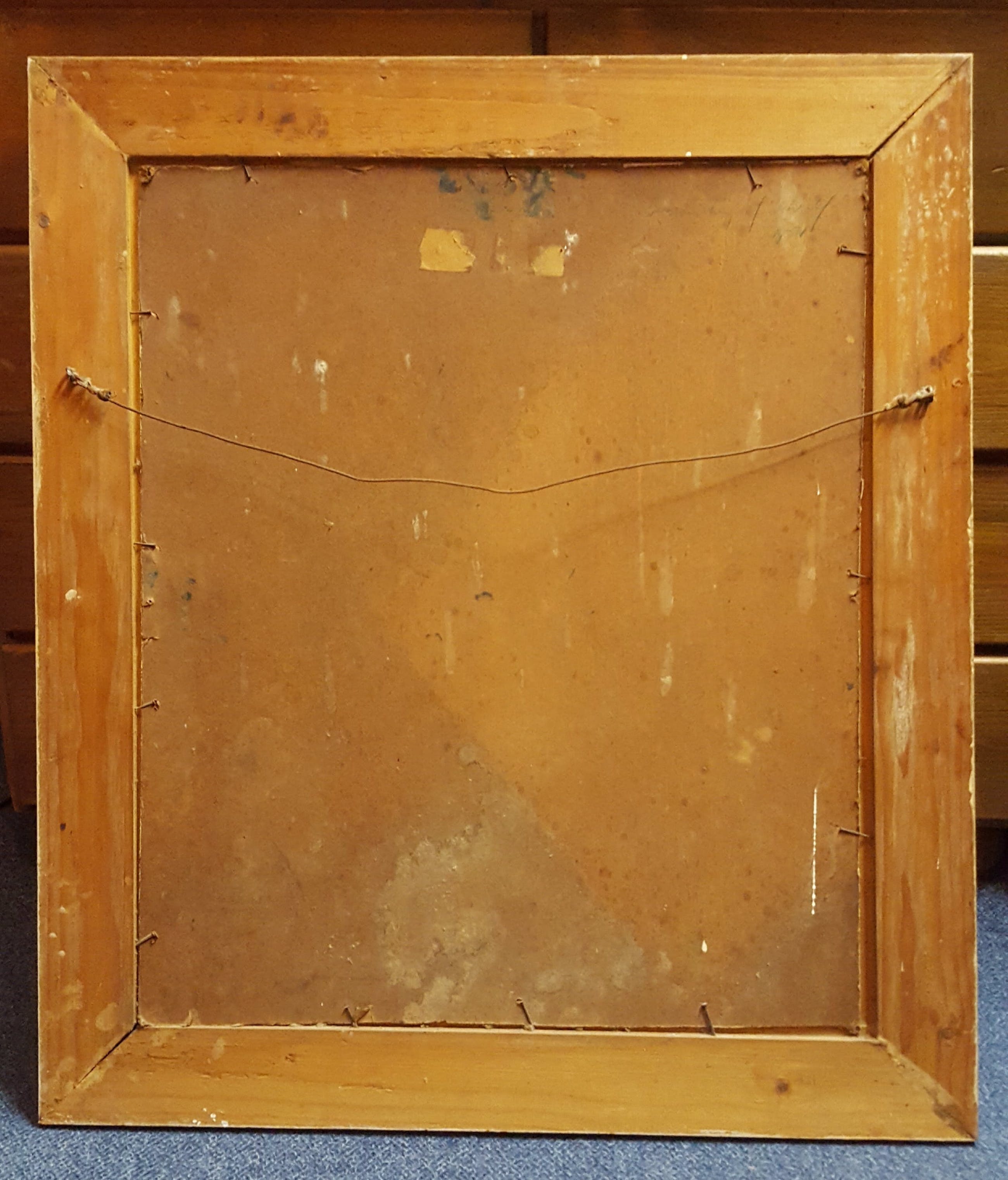 Dit schilderij is ingelijst in een eenvoudige houten lijst, dit is de originele lijst.