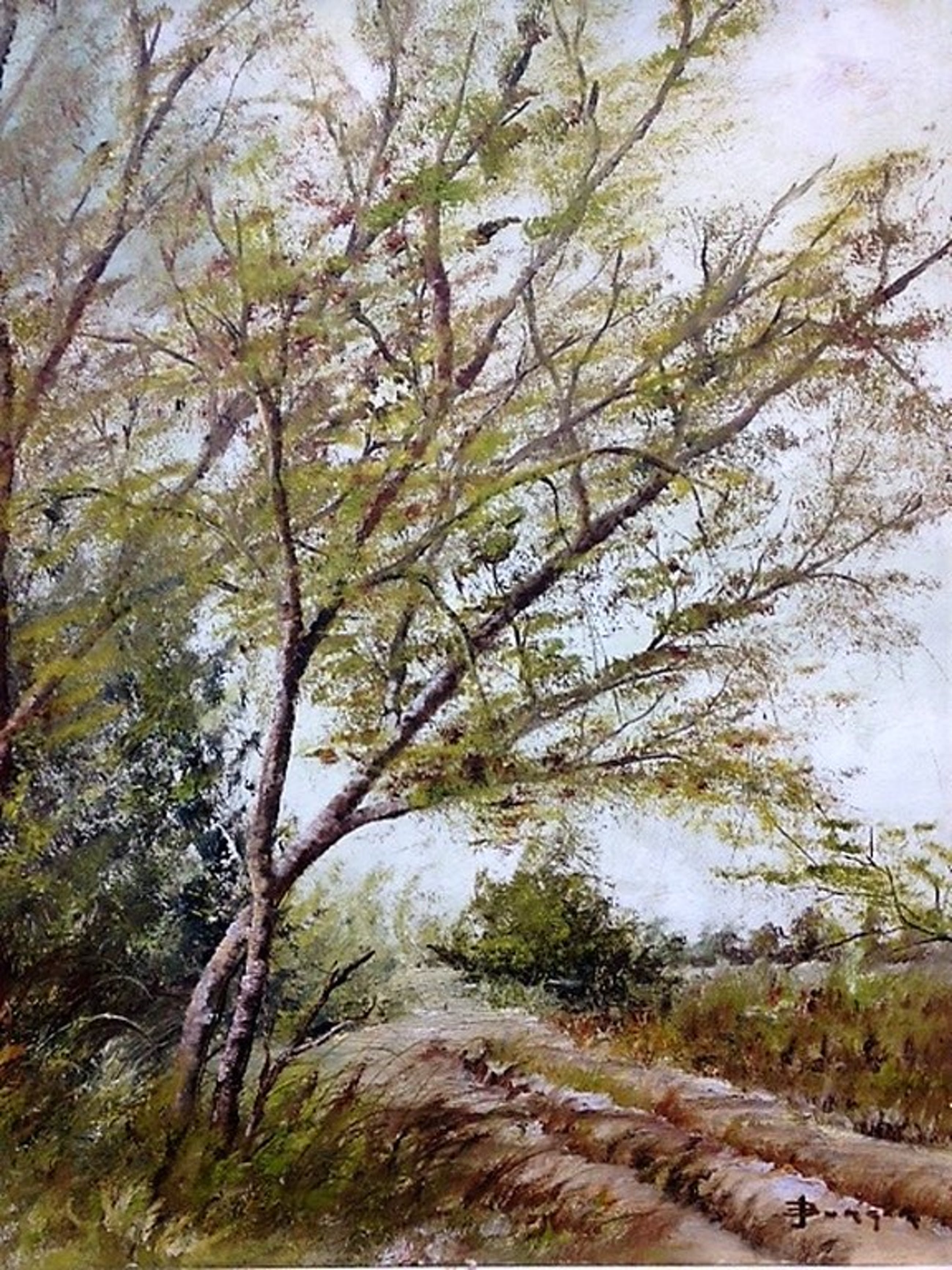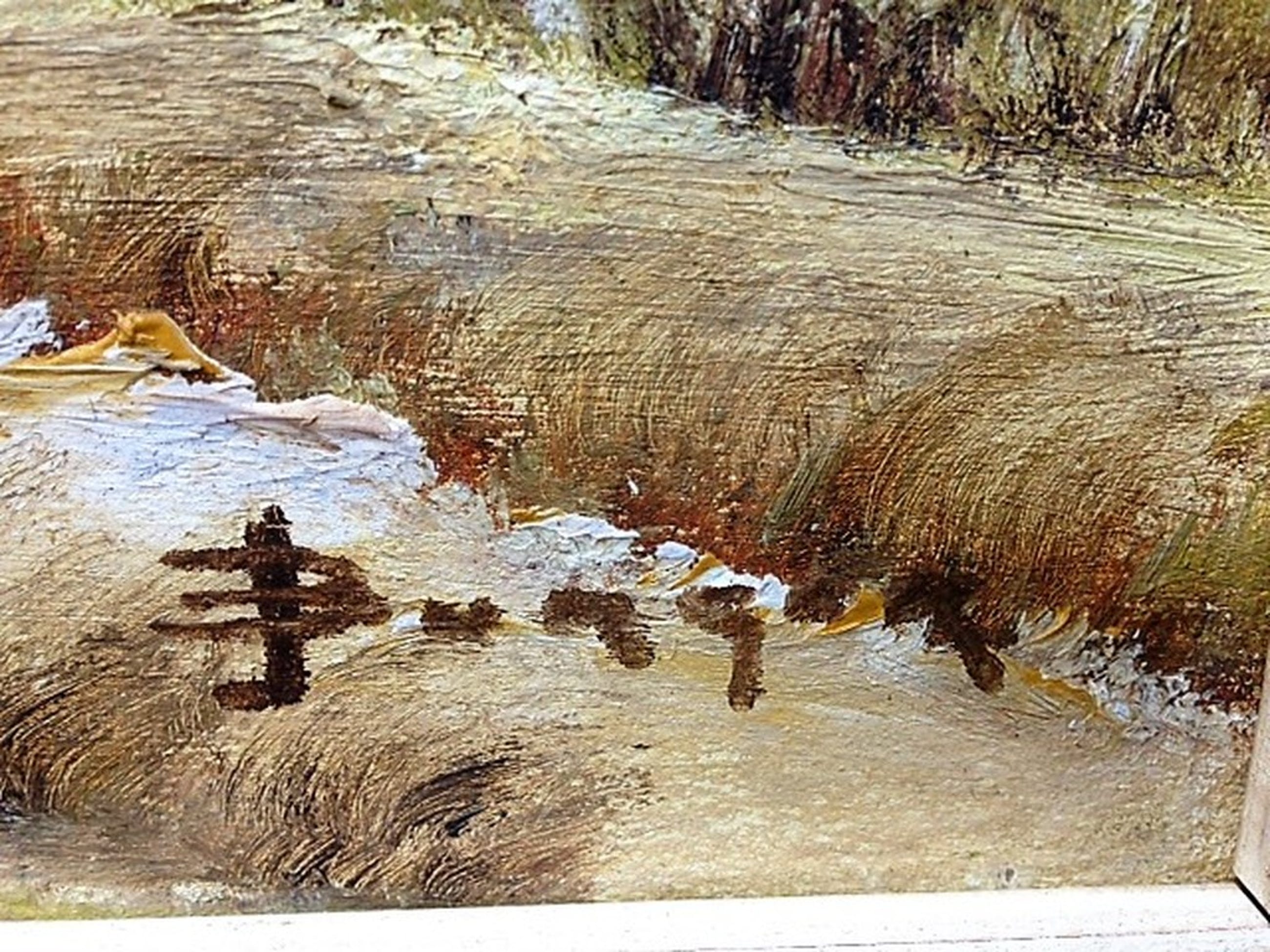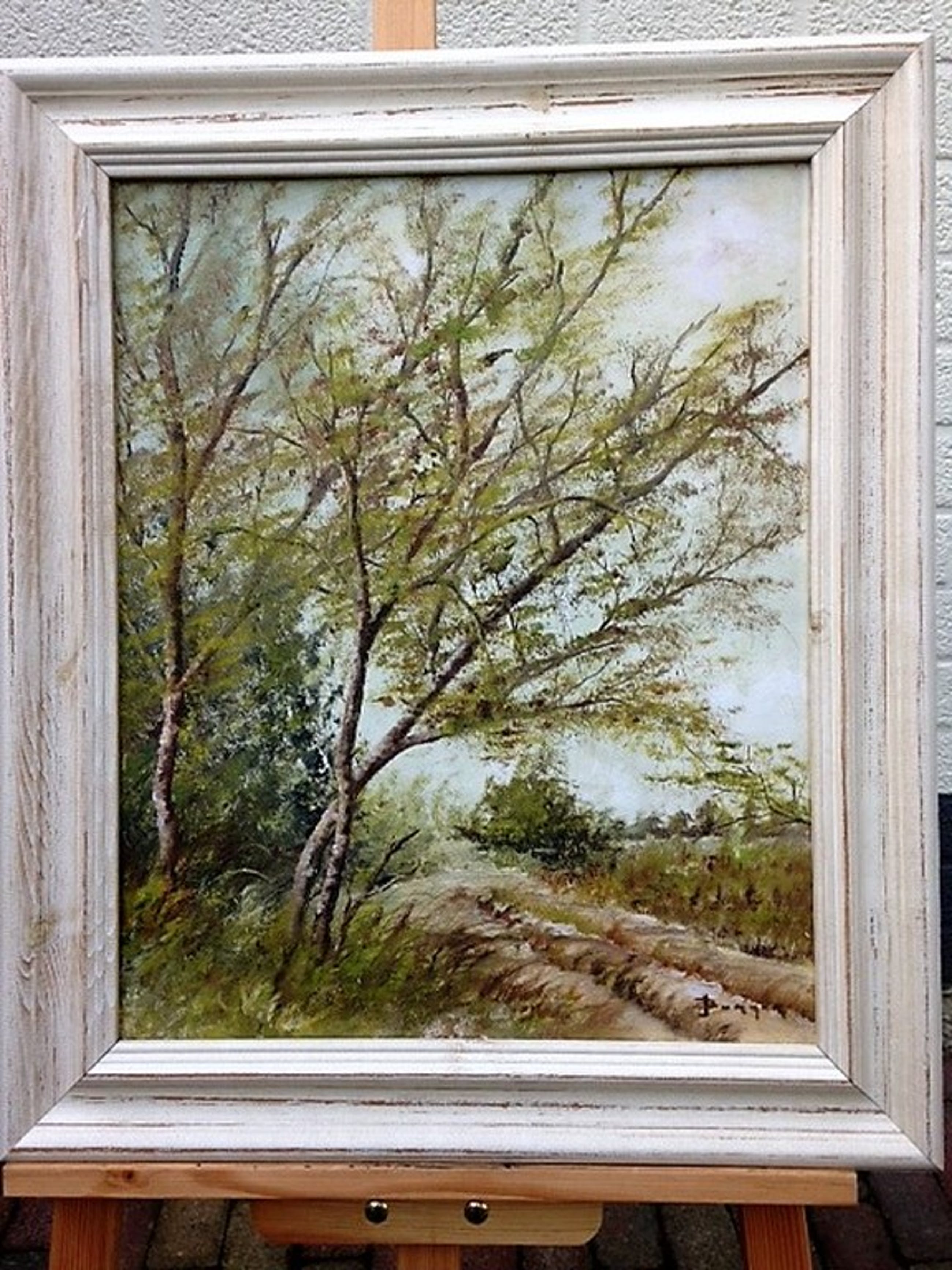 Schilderij van de bekende Haagse schilder Joop Burger (1909-1973). Op het internet is e.e.a. over deze schilder te vinden. Betreft een afbeelding van berkenbomen langs een bospad. Techniek: olieverf op paneel. Gesigneerd aan de rechter onderzijde. De afmetingen van het paneel zijn: 40 cm x 50 cm. Inclusief de lijst zijn de afmetingen: 53 cm x 63 cm. Verkeert in een hele goede staat.