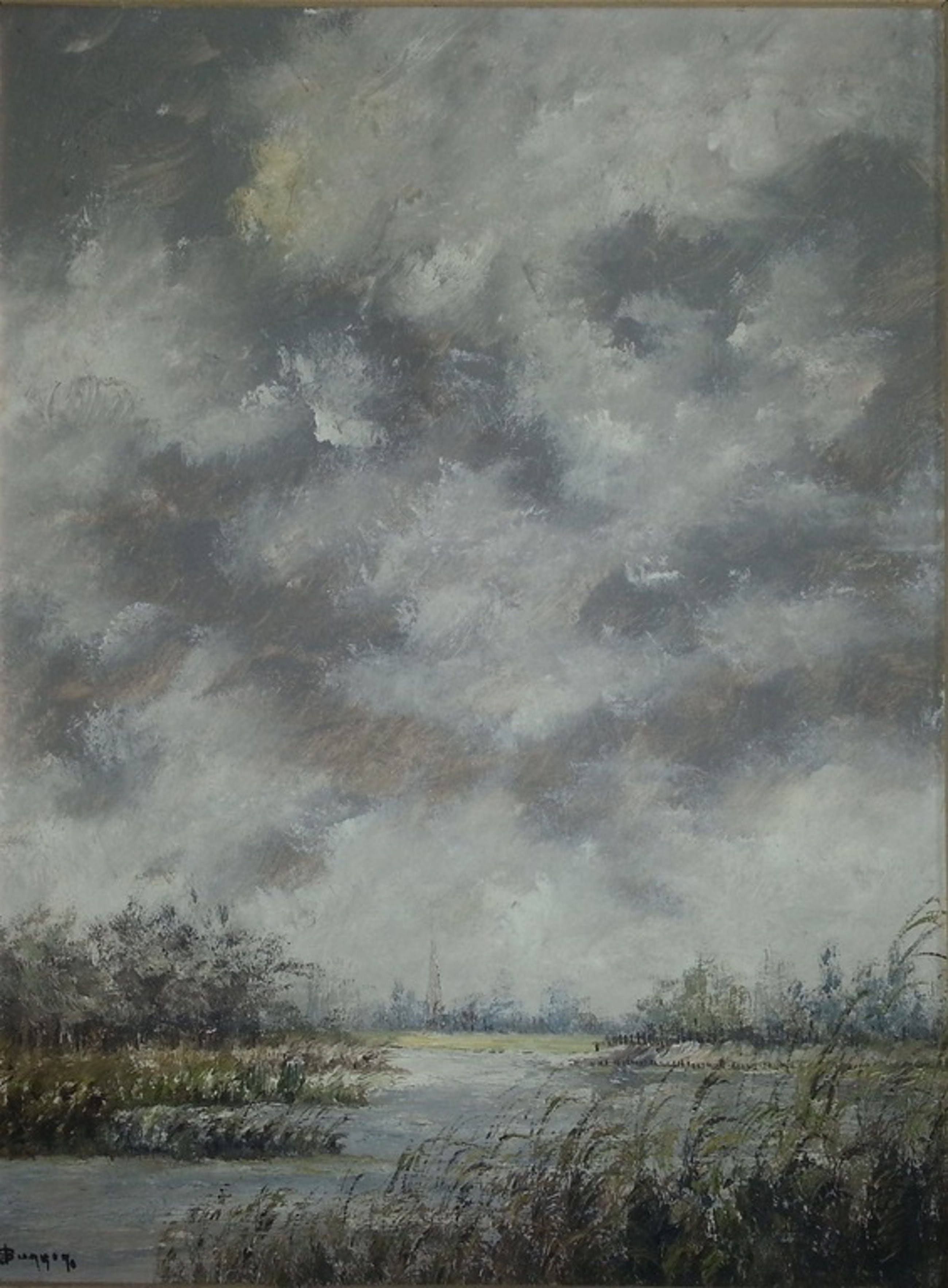 "Dreigende wolken boven plas".