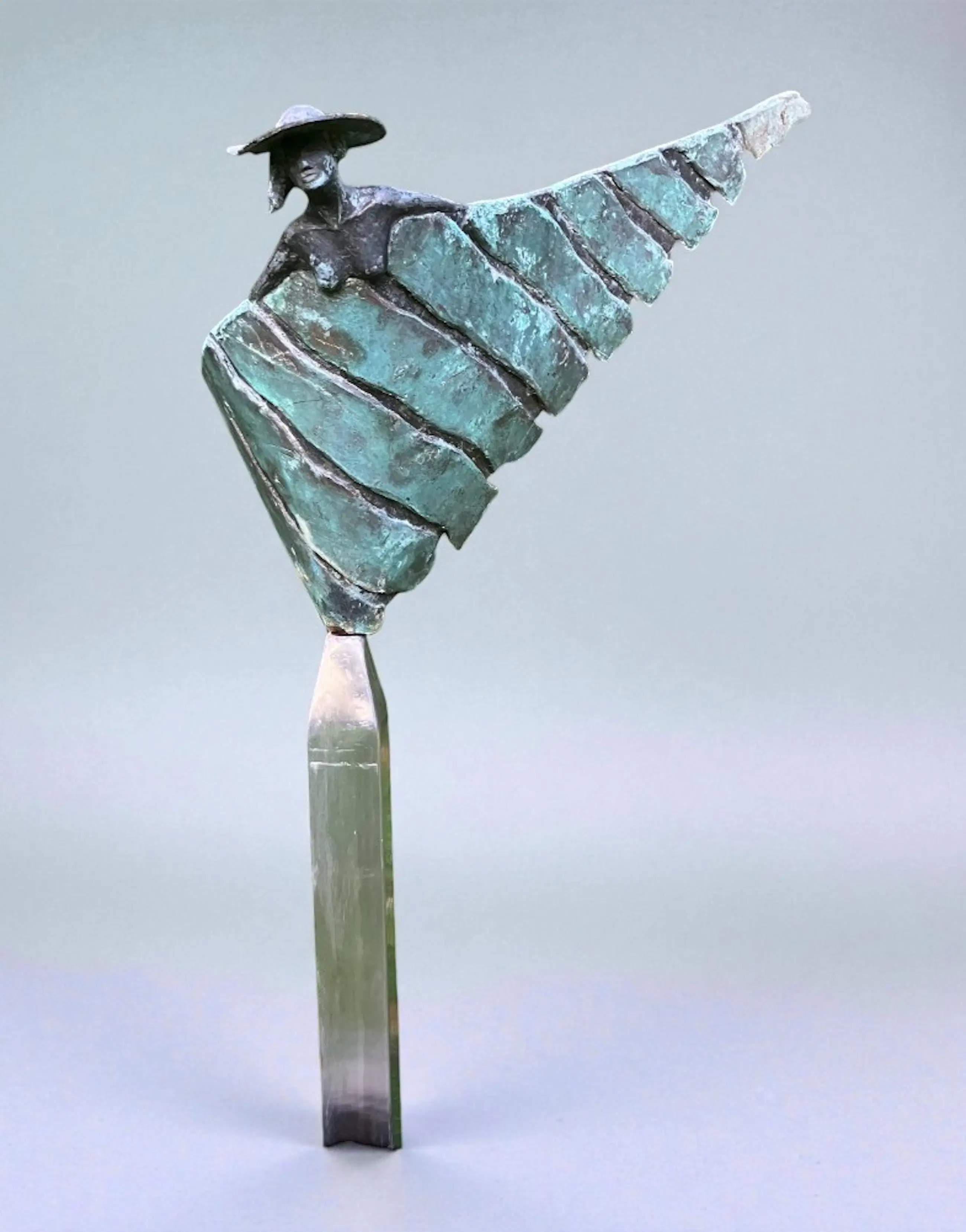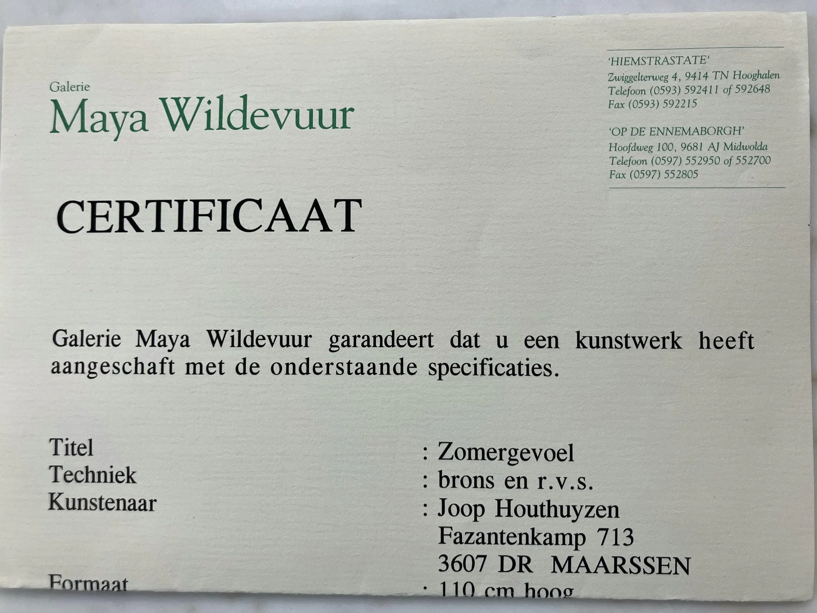 Bronzen beeld op RVS poot. Certificaat aanwezig van Galerie Maya Wildevuur (zie foto). Beeld gekocht in 1997.