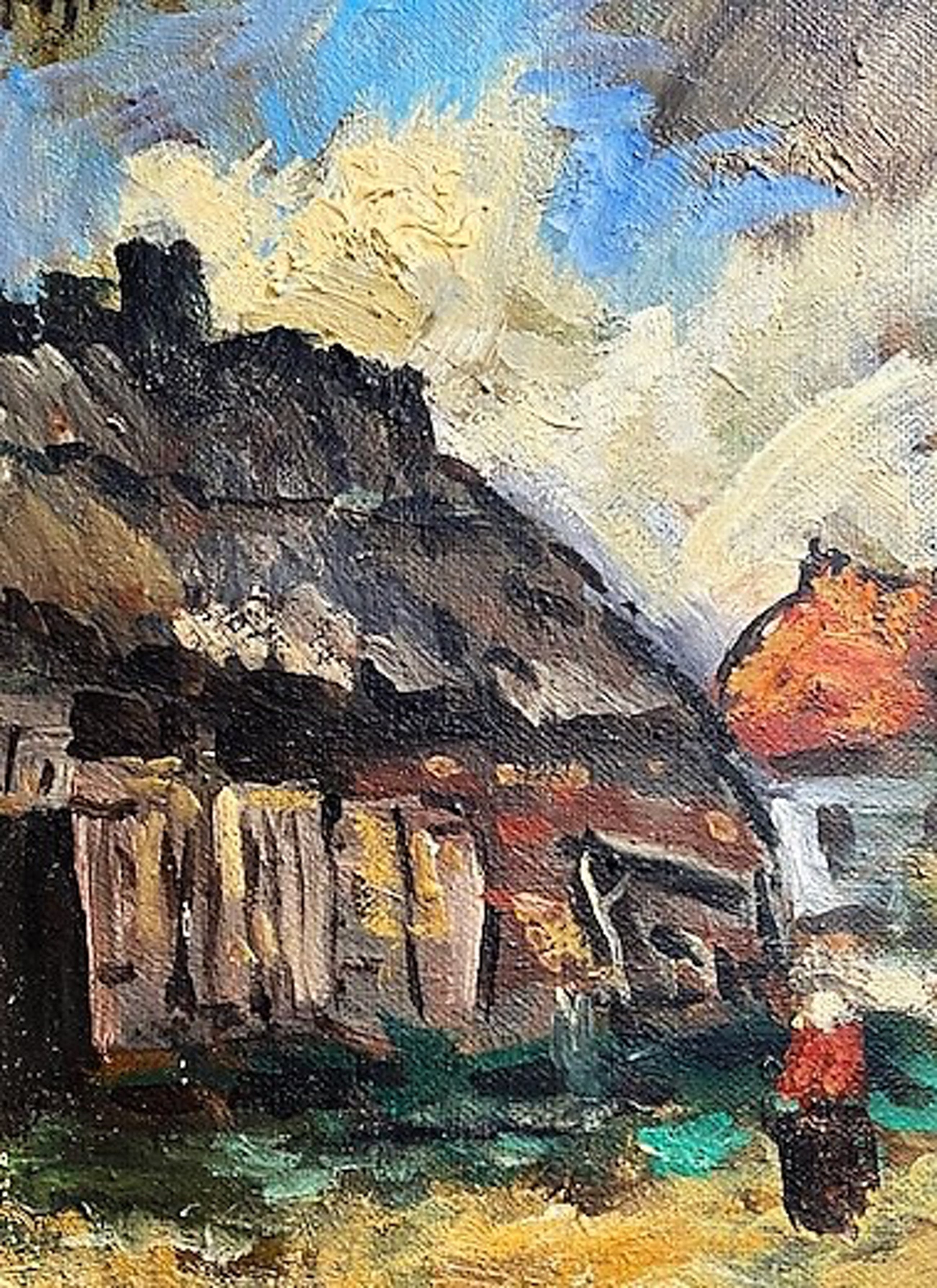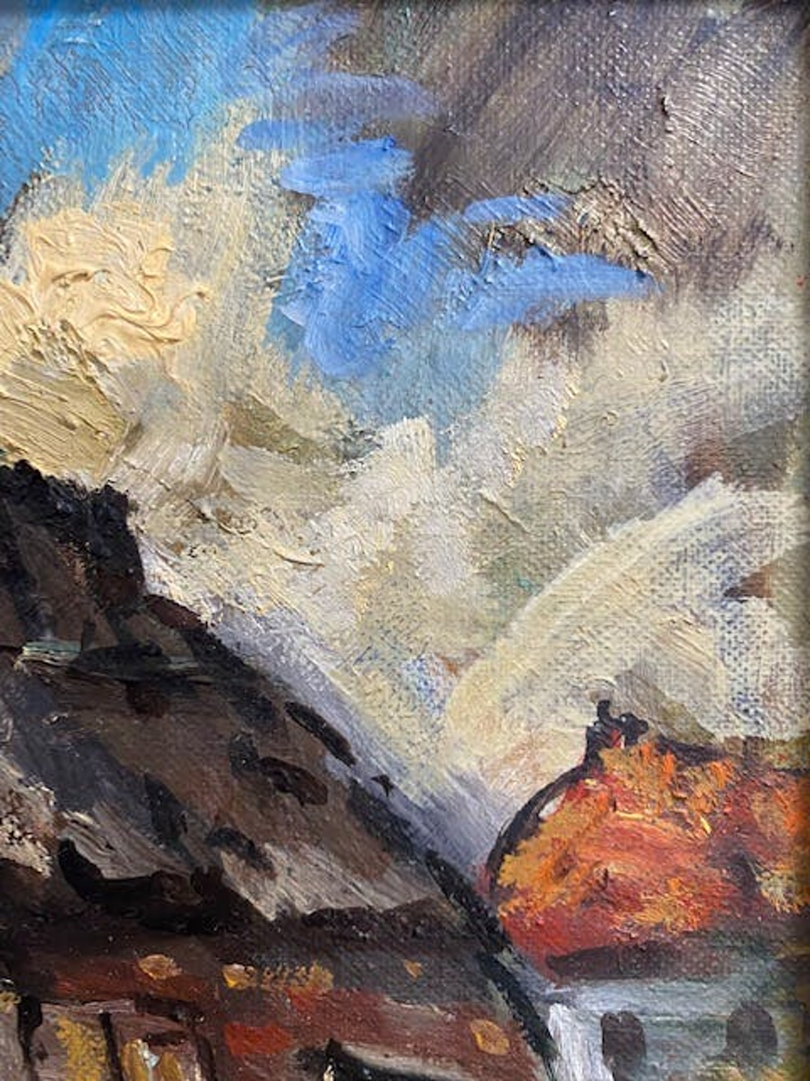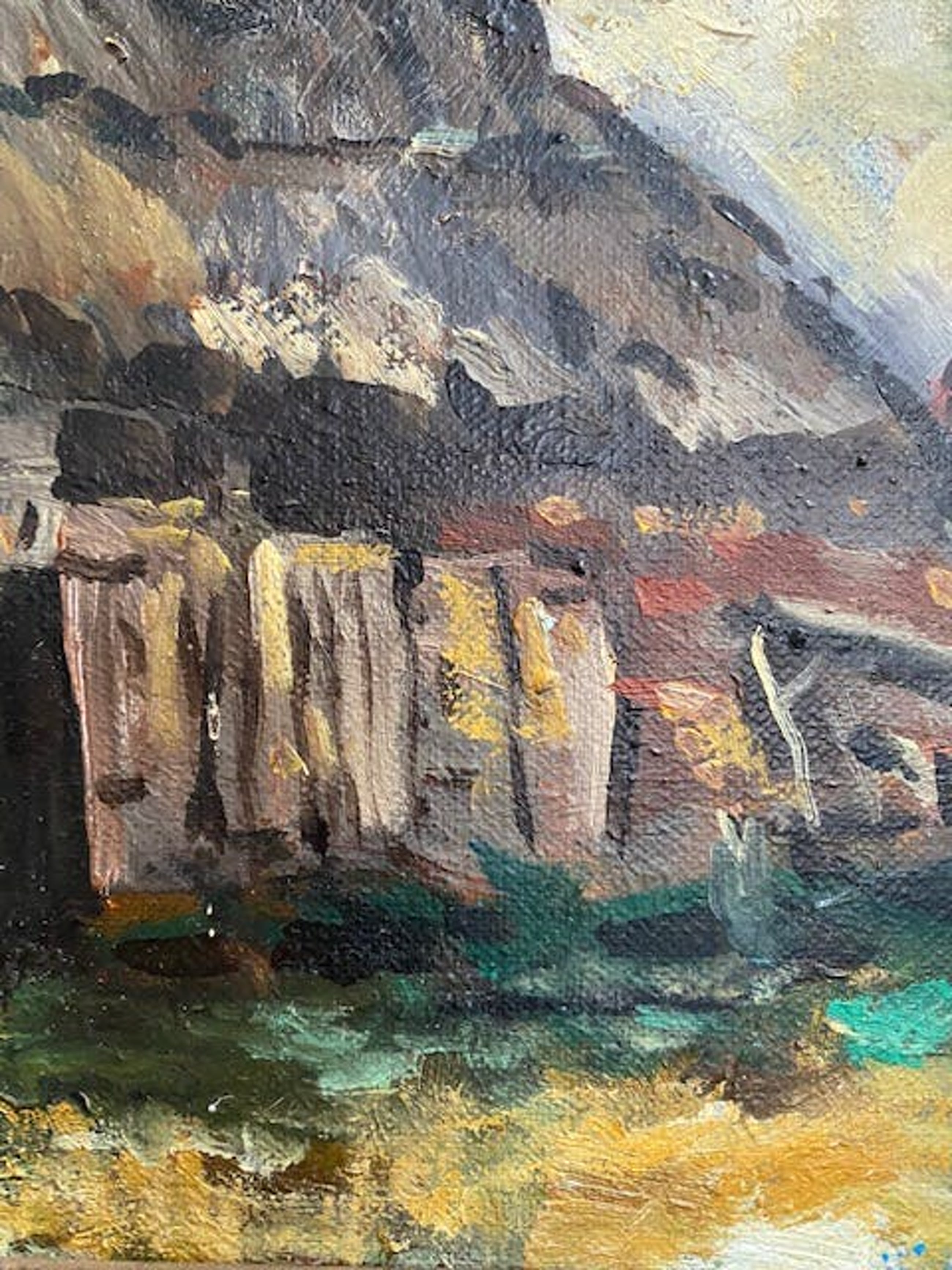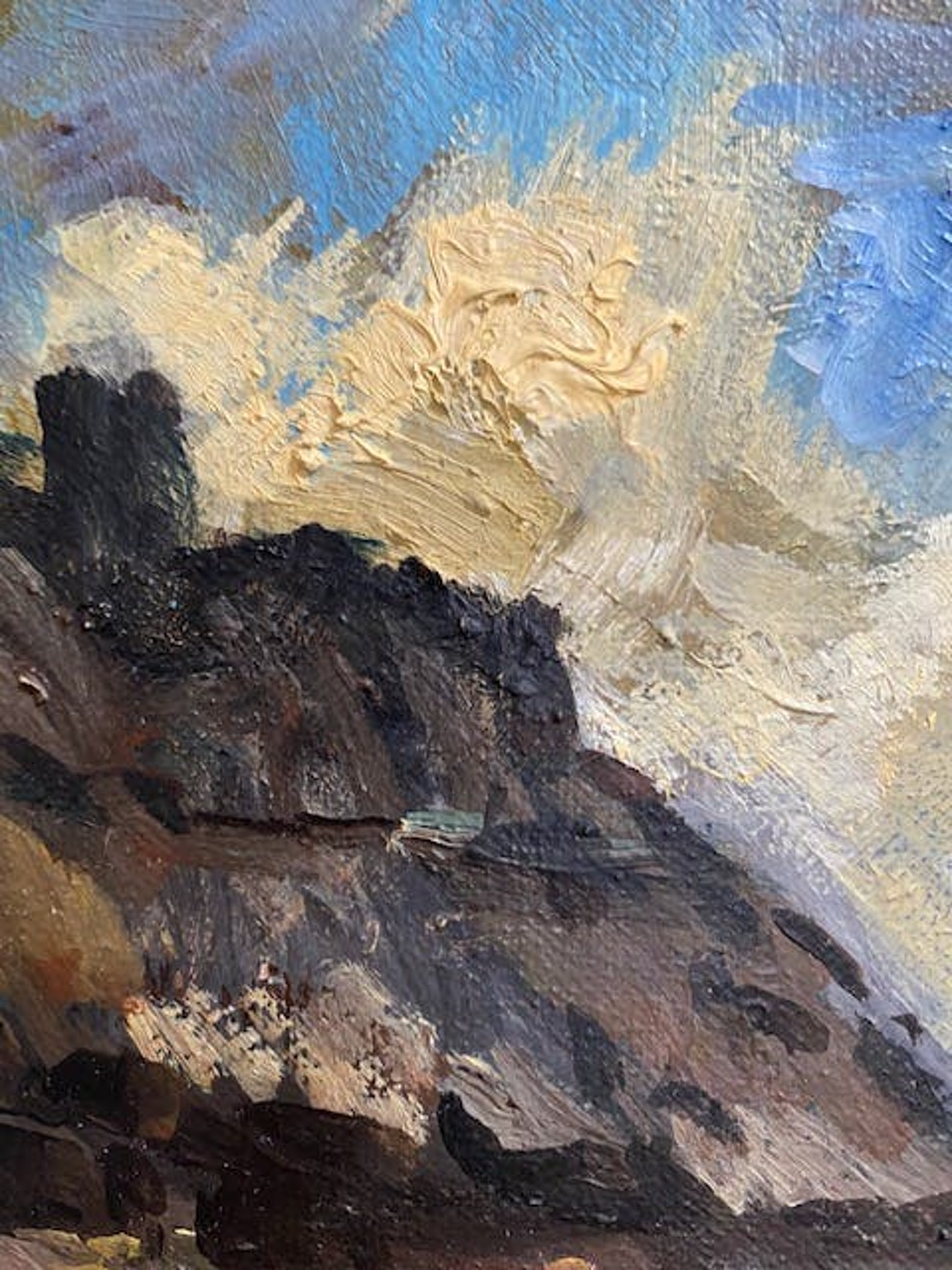 Het schilderij is in prima conditie maar de klassieke lijst vertoont enkele haarscheurtjes