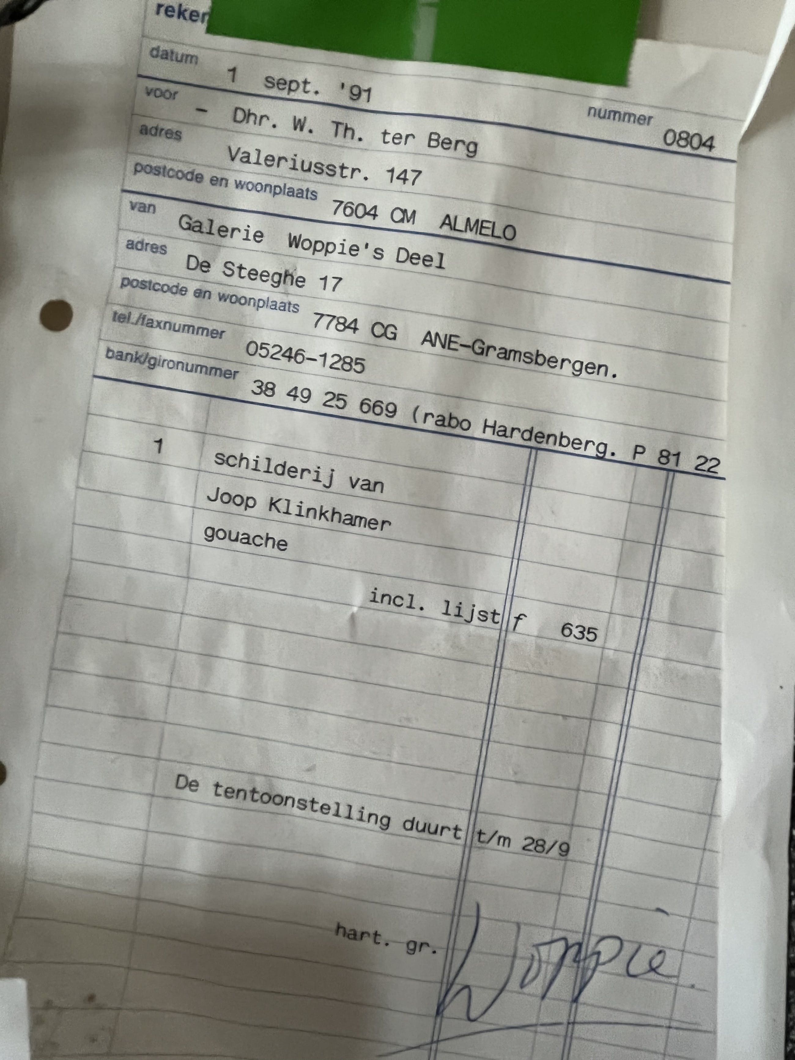 Het werk is af te halen op locatie. Als koper dient u zelf verpakkingsmateriaal mee te nemen. De locatie is: Uden, Nederland