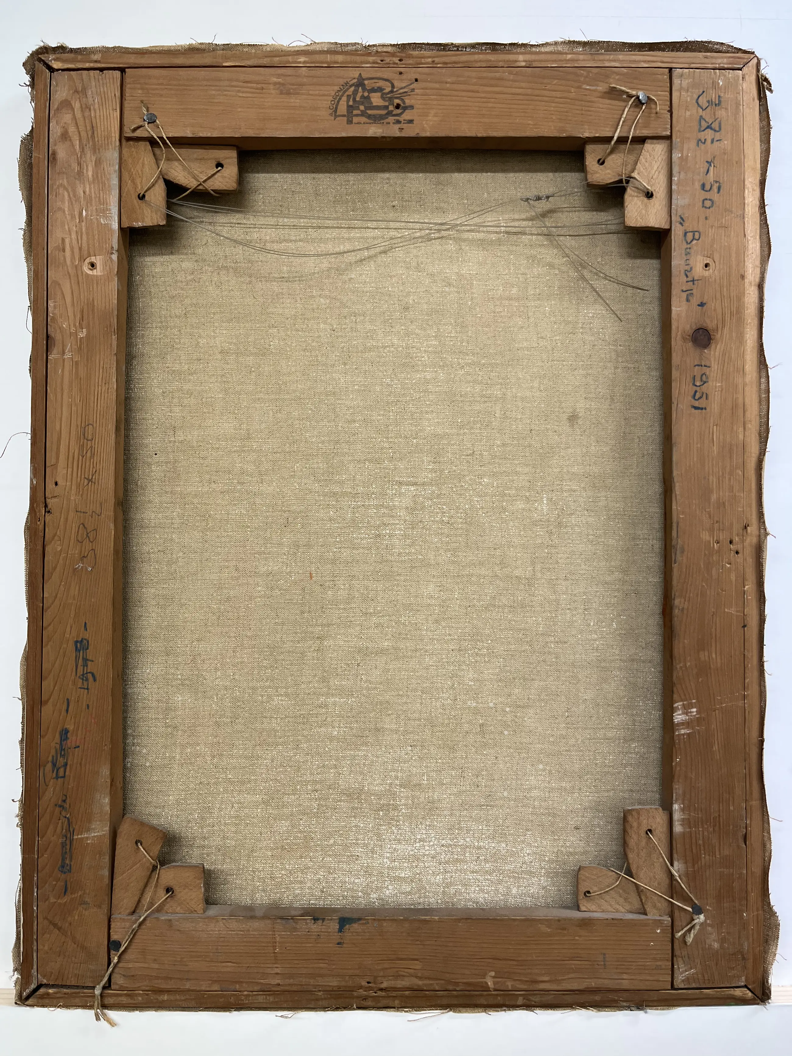 Olieverf op doek jaartal, maat en titel op de achterkant vermeld door kunstenaar. Voorkant gesigneerd.