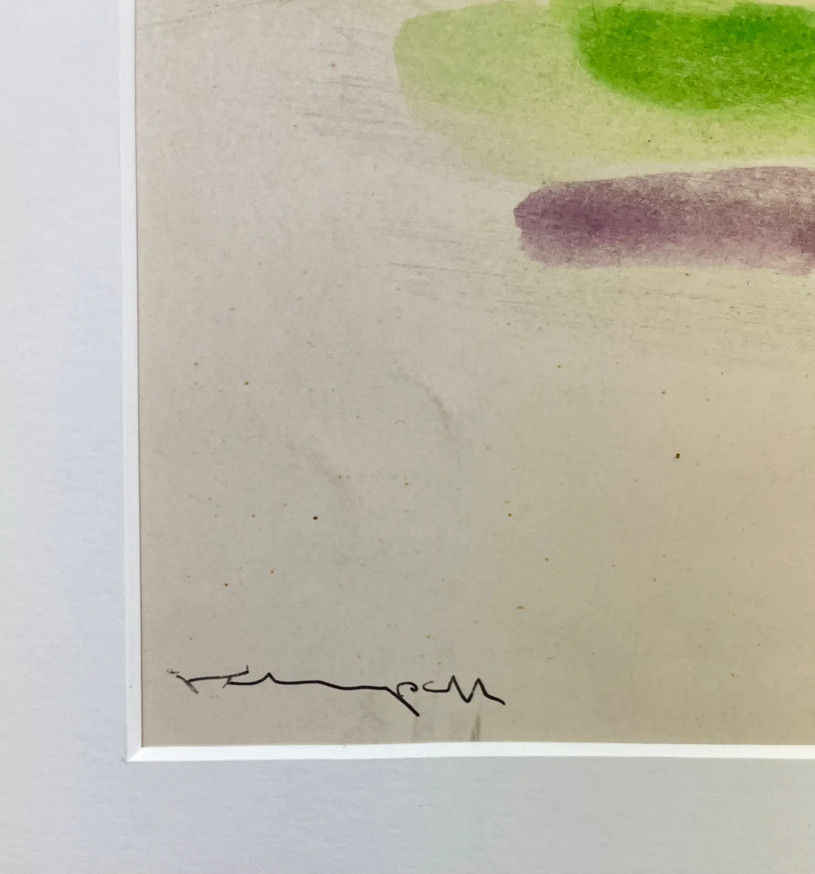 Het werk is door de kunstenaar in z'n geheel op karton gemonteerd en recent voorzien van een zuurvrij passe-partout.