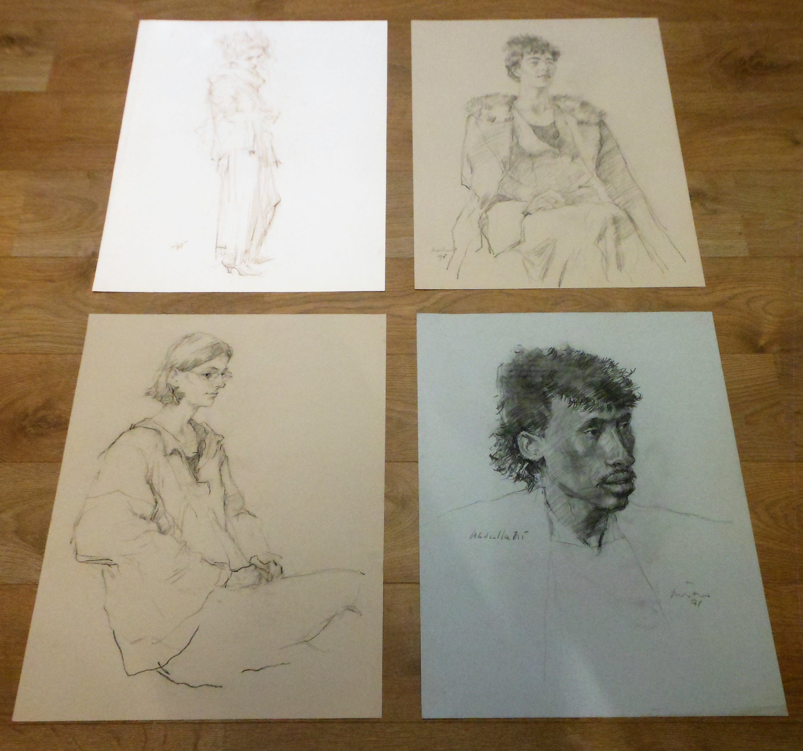 Serie van 4 modeltekeningen van Liesker waarvan 3 gesigneerd. Voor info zie laatste foto.