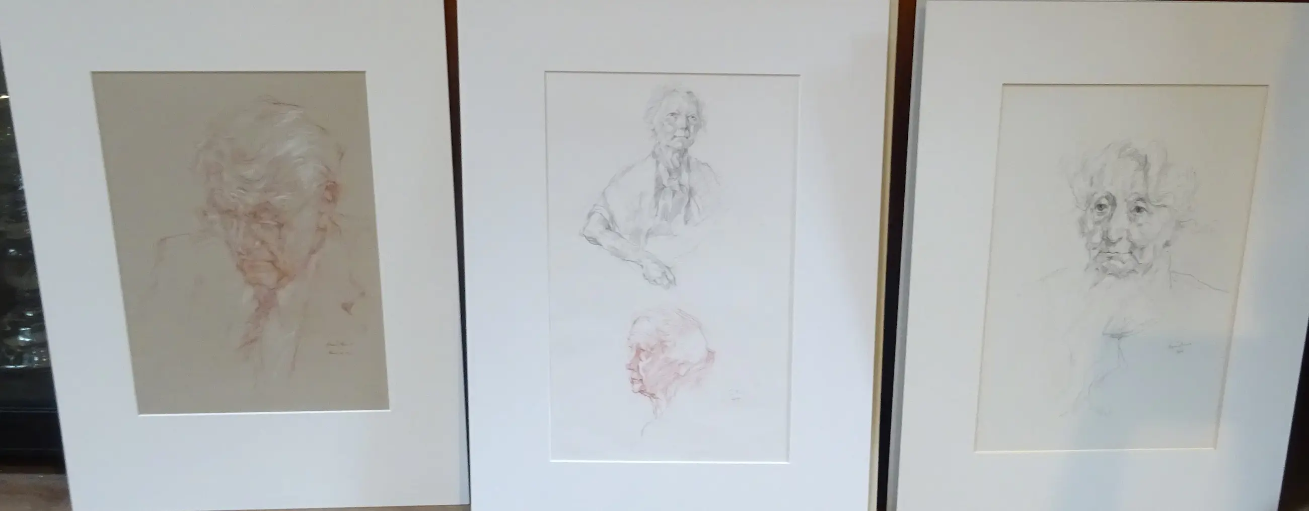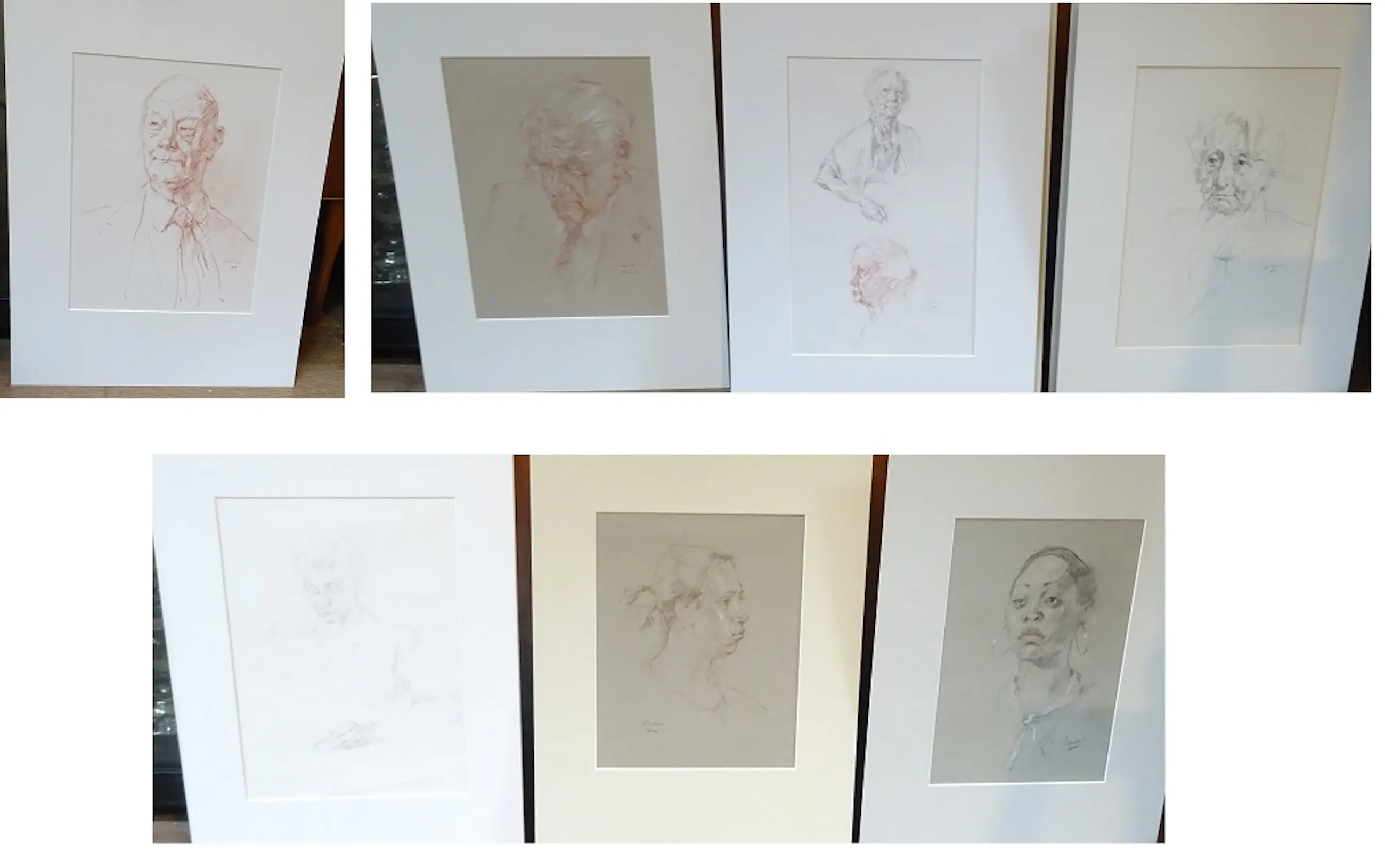 Een kavel van 7 diverse portretten van Joop Liesker, getekend met potlood of krijt. Alle zeven in passepartout van 60x45 cm.