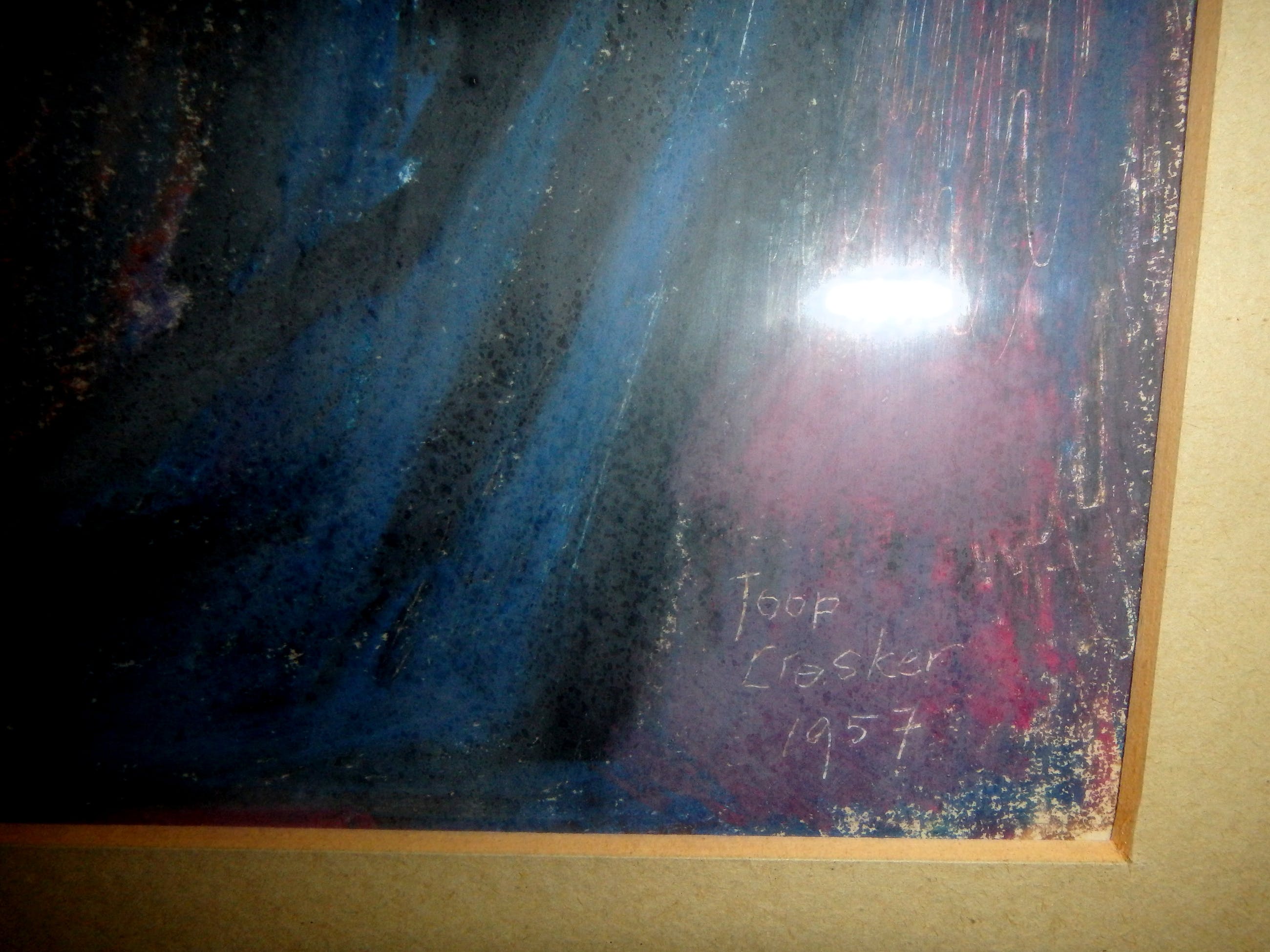 Gemengde techniek 29x22, rechtsonder voluit gesigneerd Joop Liesker en gedateerd 1957, authentiek ingelijst in passe-partout en achter glas. Lijst heeft wat randbeschadigingen.