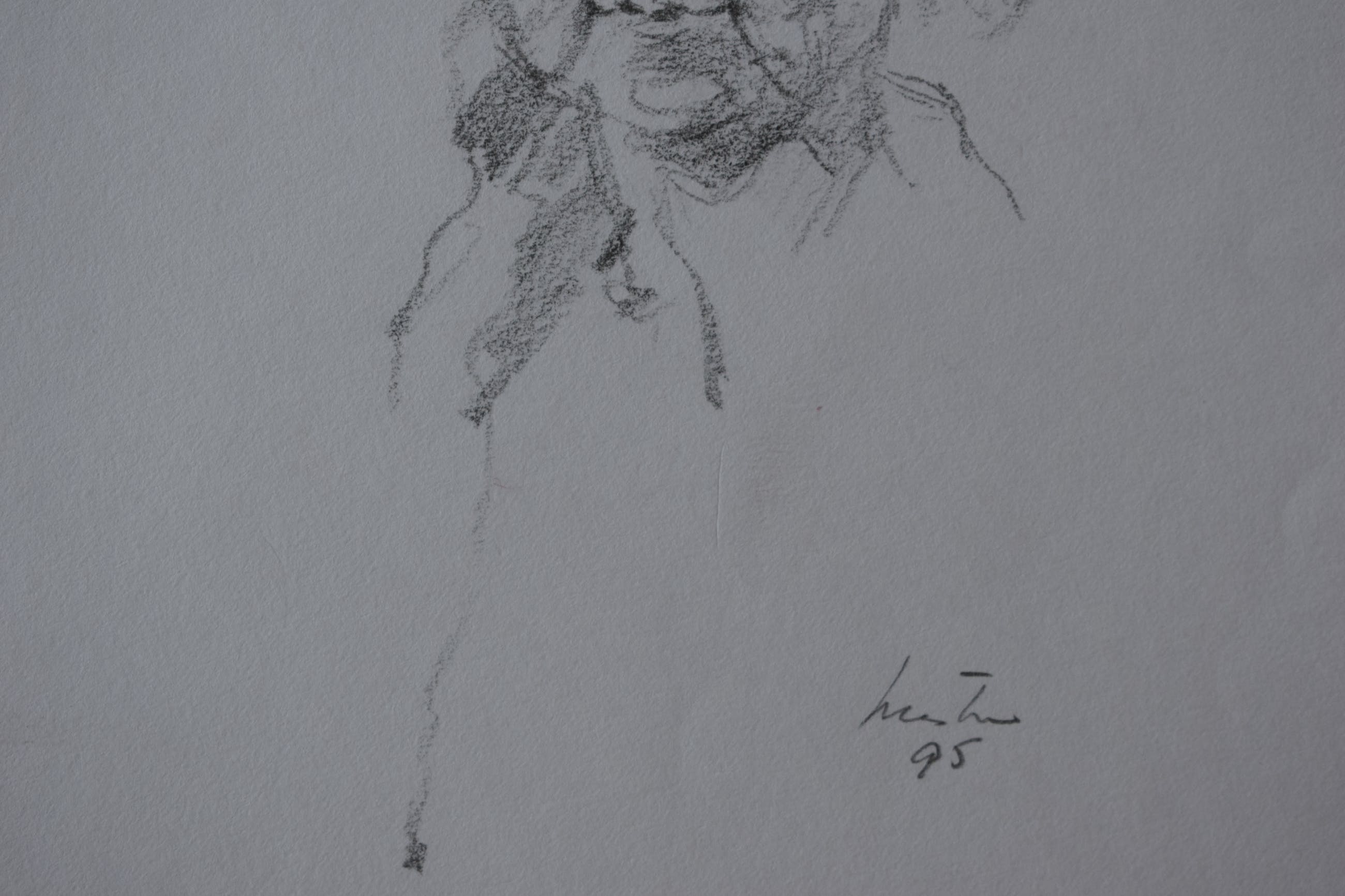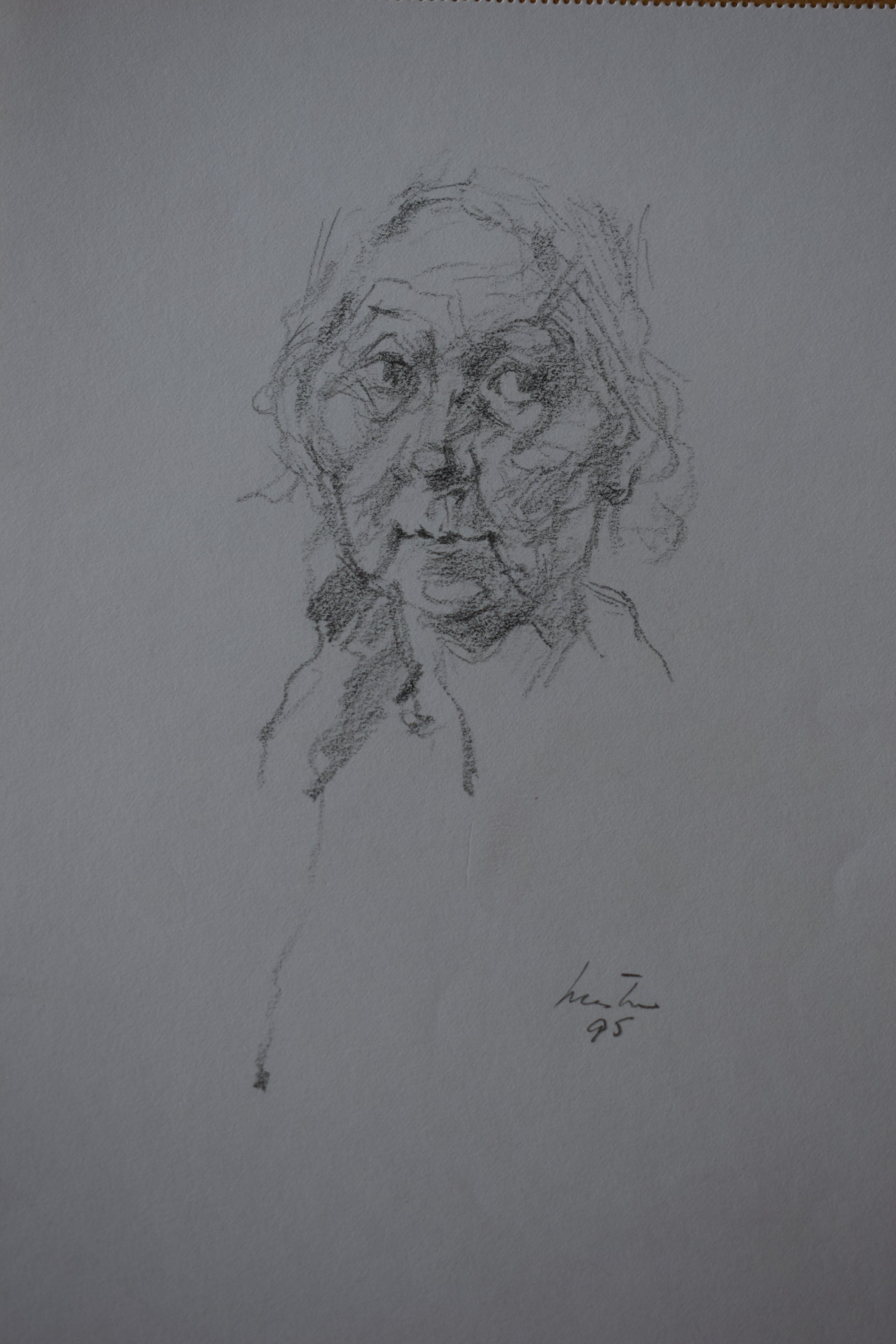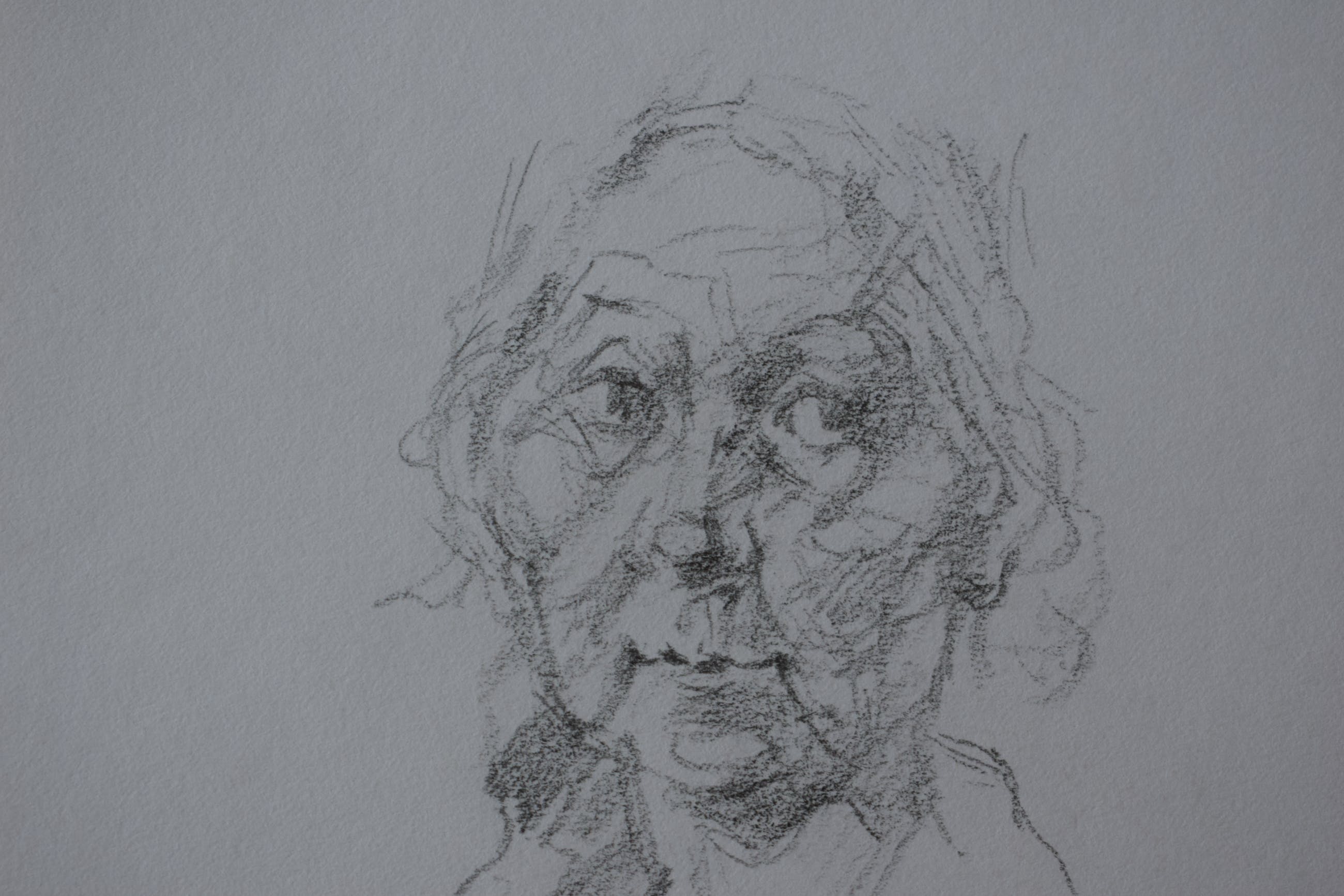 Tekening van Joop Liesker, oude vrouw Tekening komt recht van zijn schetsblok