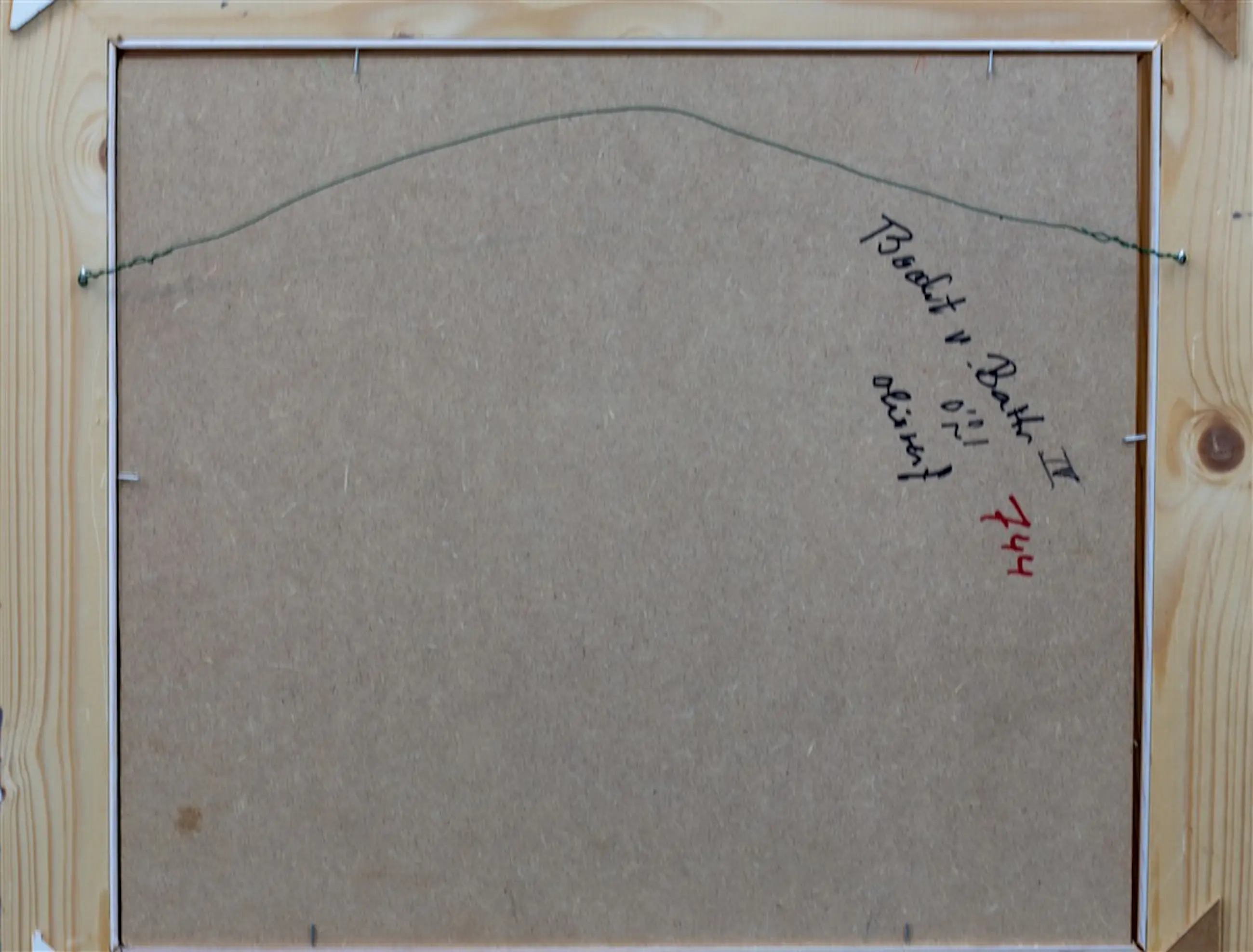 Het schilderij is van 2021, dus nu 4 jaar oud. Joop Mijsbergen heeft een goed opberg systeem in zijn atelier, waar zijn schilderijen schoon, droog en afgeschermd van direct fel licht bewaard worden.