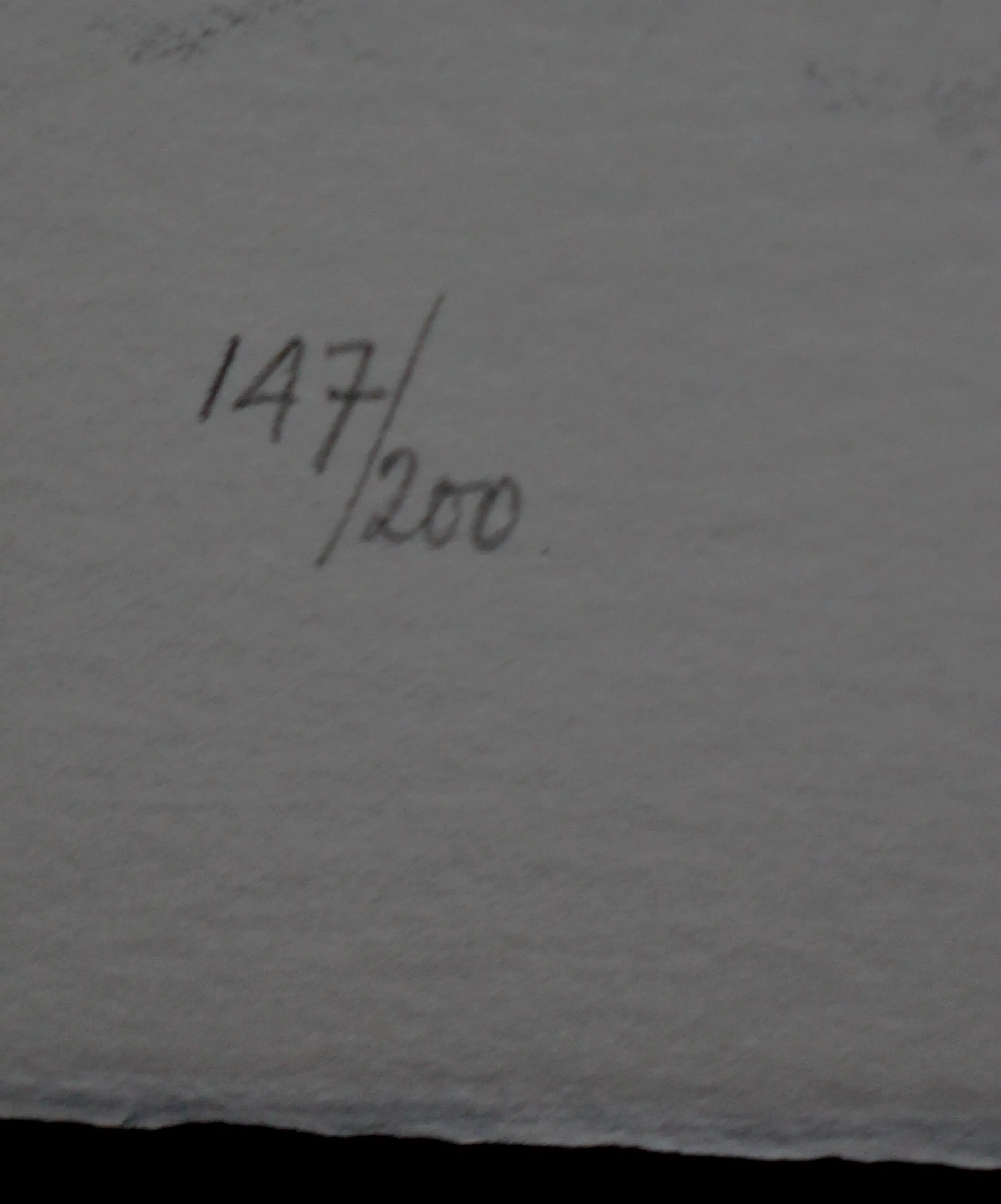 Lichte verkleuring op de rand van de litho. Bij inlijsting valt dit onder het passe-partout.
