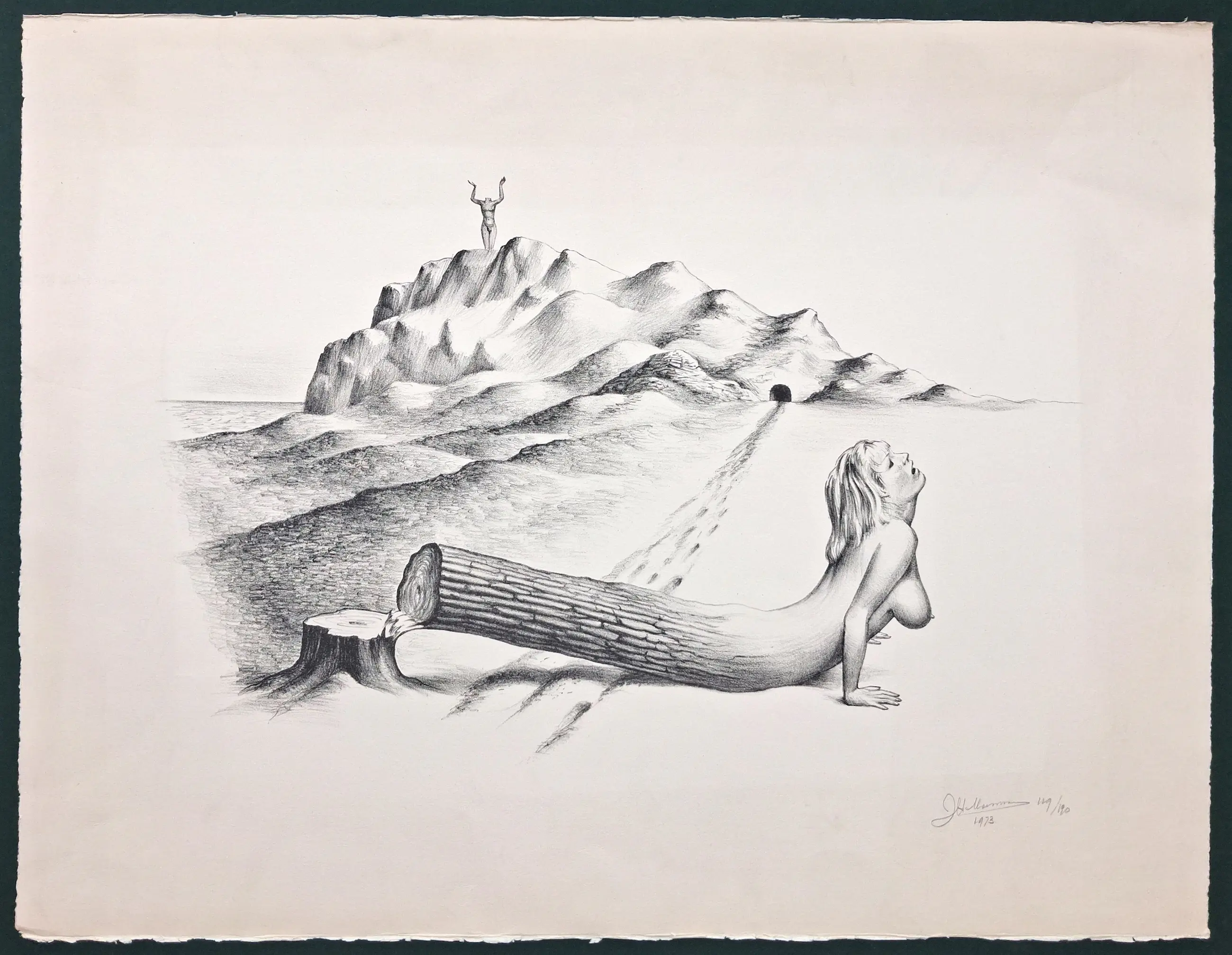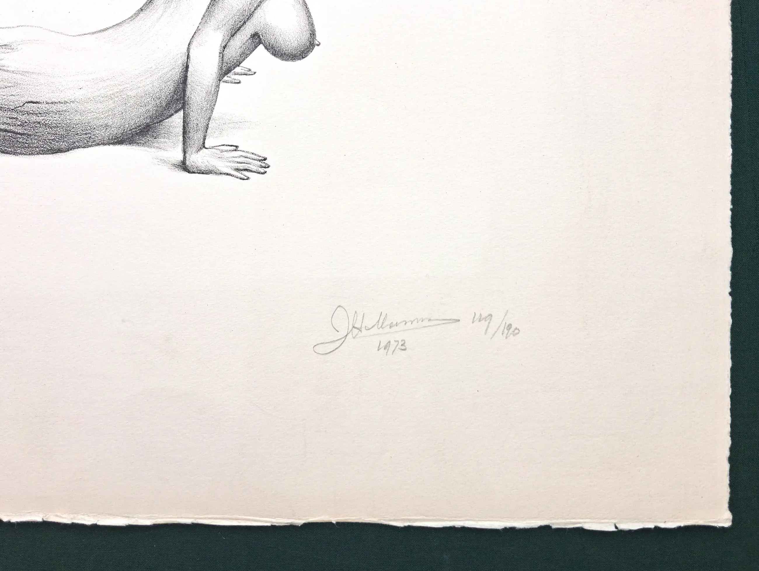 Litho van Joop Moesman, met potlood door de maker gesigneerd, genummerd en gedateerd. Uitgegeven in de reeks Prent 190. De afbeelding is ongeveer 40x52 cm. De conditie is goed. Het werk is ingelijst geweest, daardoor is er een lichte vergeling om het beeld (zie foto's).