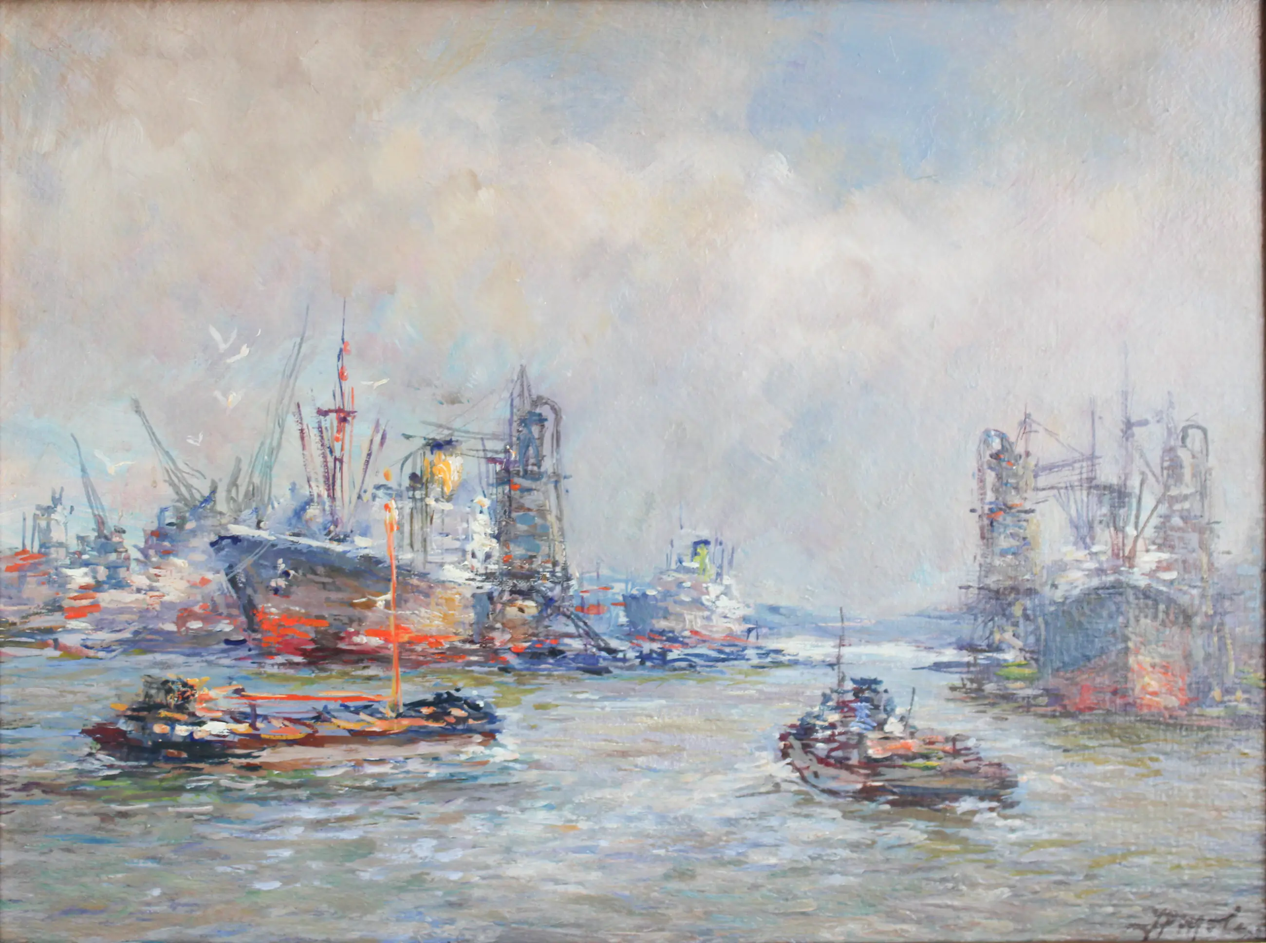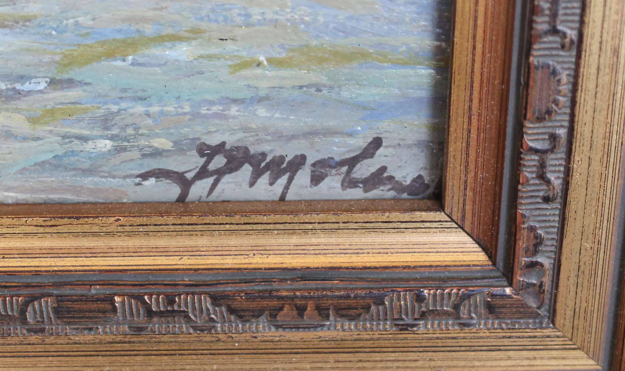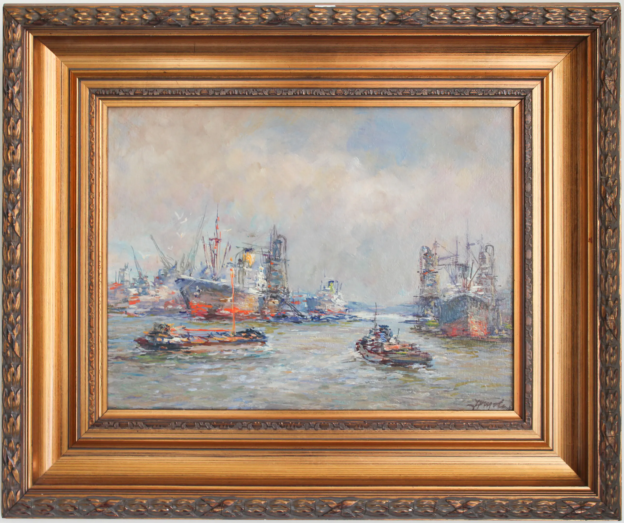 Dit schilderij is vervaardigd door de Rotterdamse kunstenaar Joop Molenaar. De vlotte opgezette compositie met trefzekere verftoets kenmerkt het oeuvre van de kunstenaar. Het is vervaardigd op doek en draagt een label van Kunsthandel Roelofs op het spierraam. Het is netjes ingelijst binnen een decoratieve lijst.