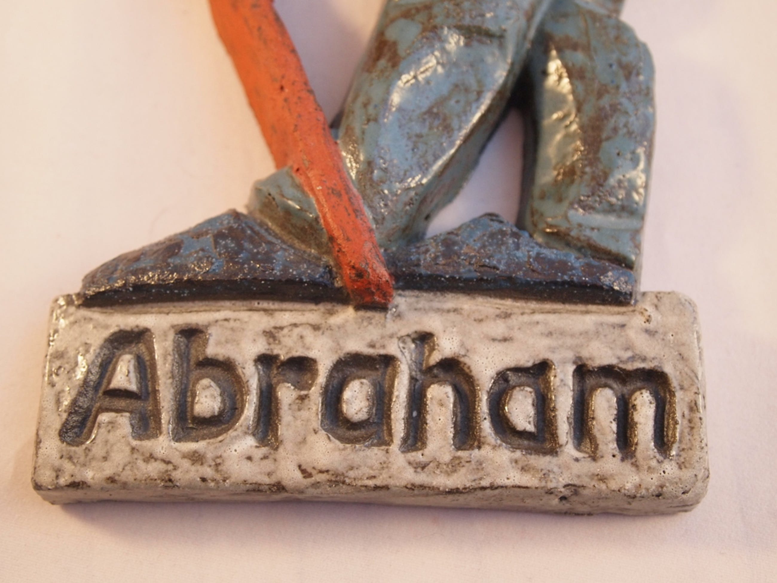Mooie en leuke bruin aardewerken plaquette van "Abraham". In prima onbeschadigde conditie. Niet gemerkt.