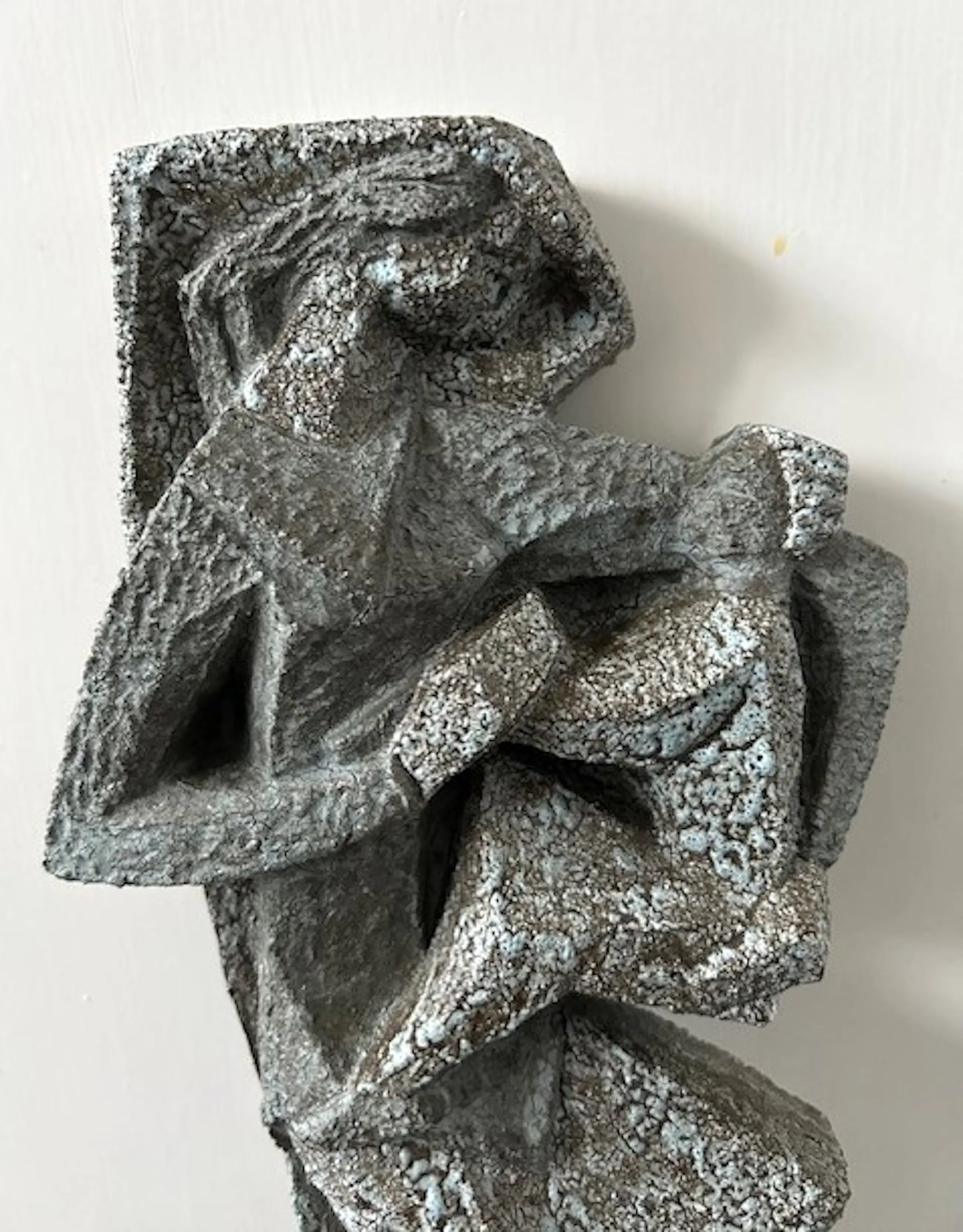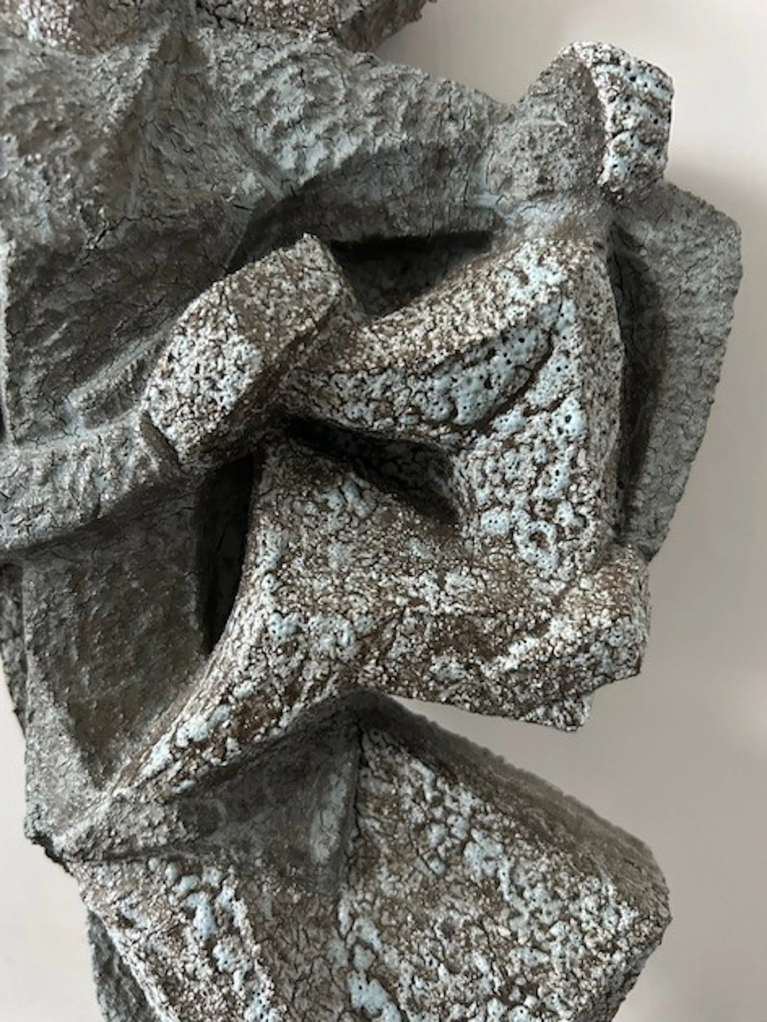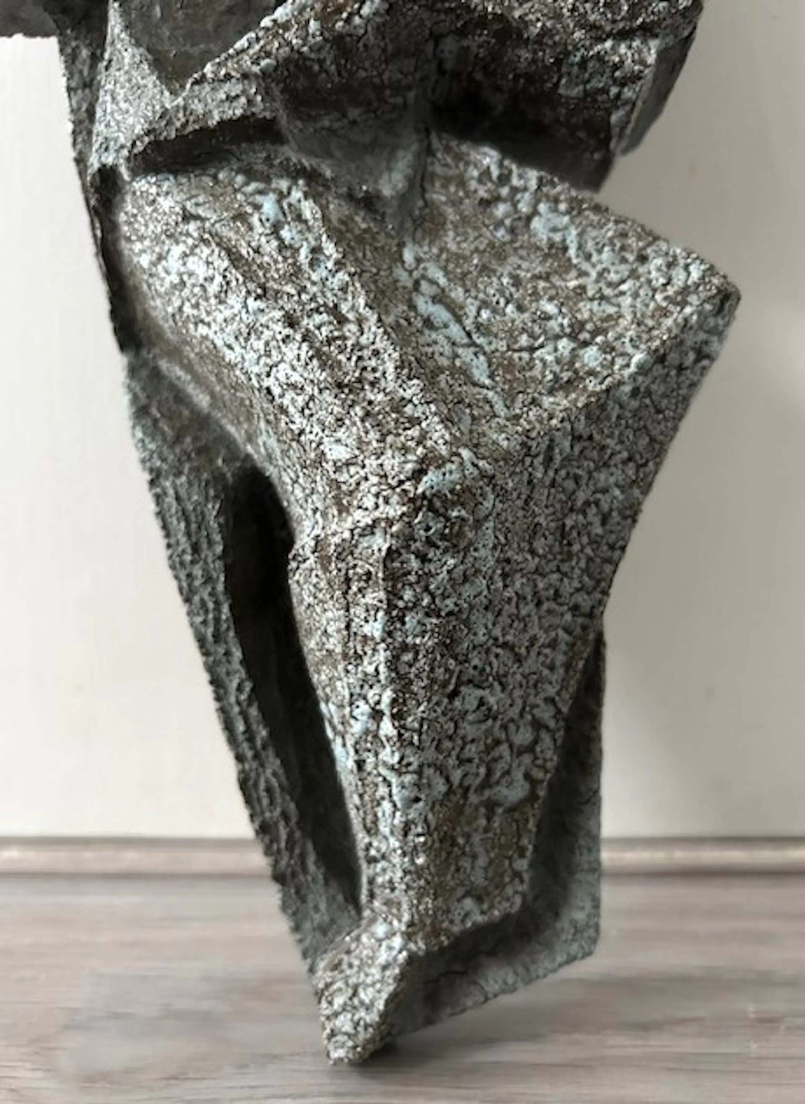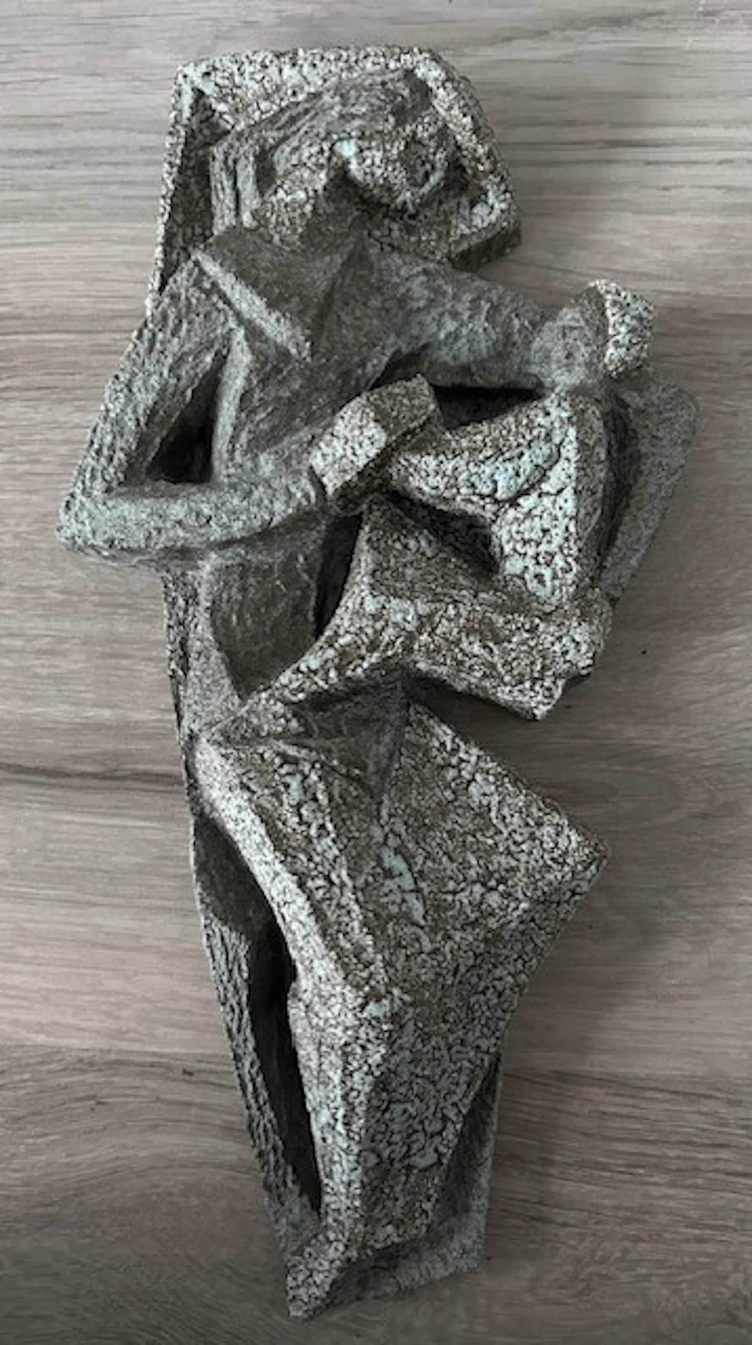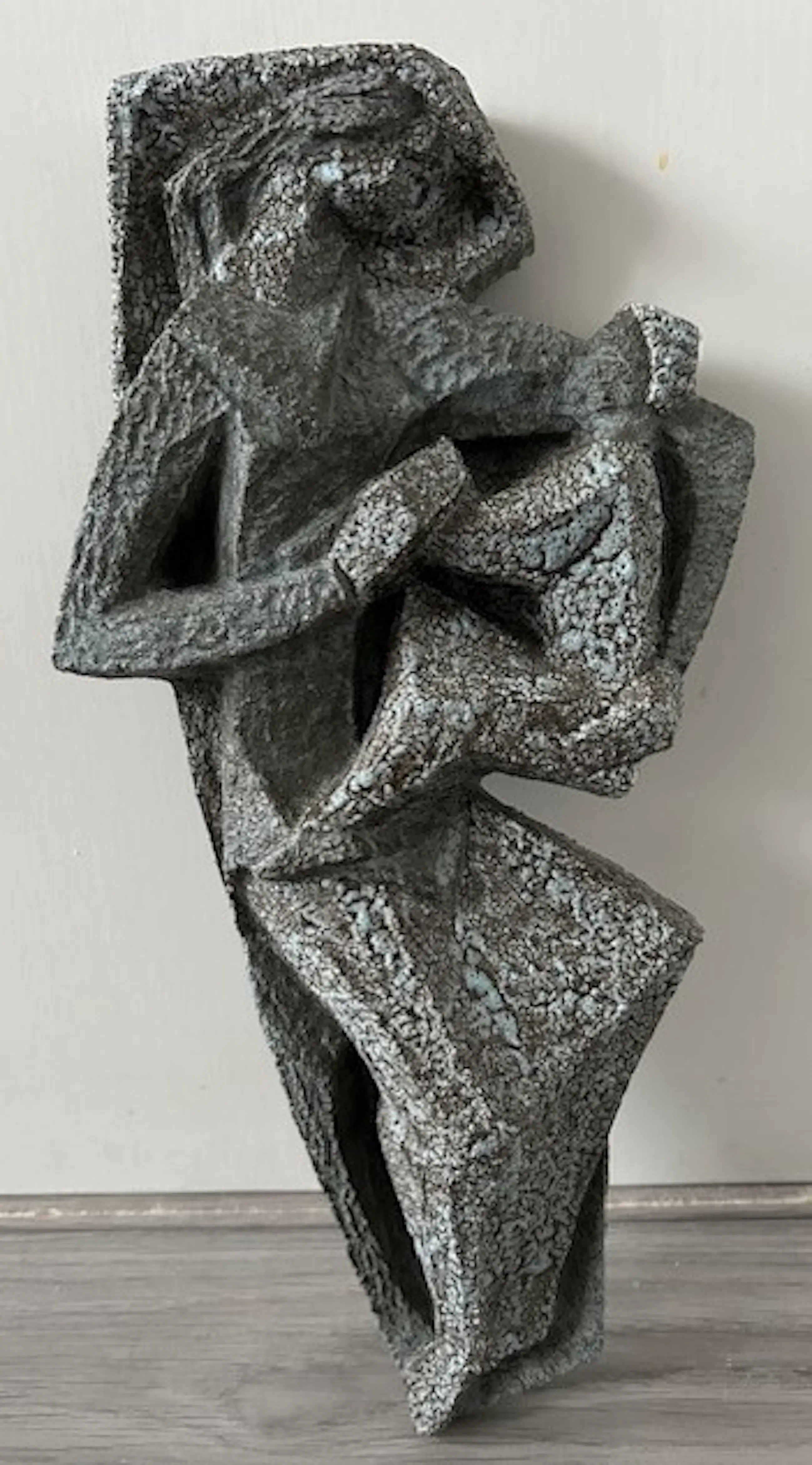 Ambacht Haalderen (AMHA) keramische wandplaquette moeder met kind in turquoise/bruin glazuur. Mooie devote sculptuur. Een ontwerp van Joop Puntman. Hij ontwerpt in de periode 1949-1969 vele keramische reliëfs van mens en dier. Opleiding: Academie voor Beeldende Kunsten Arnhem.