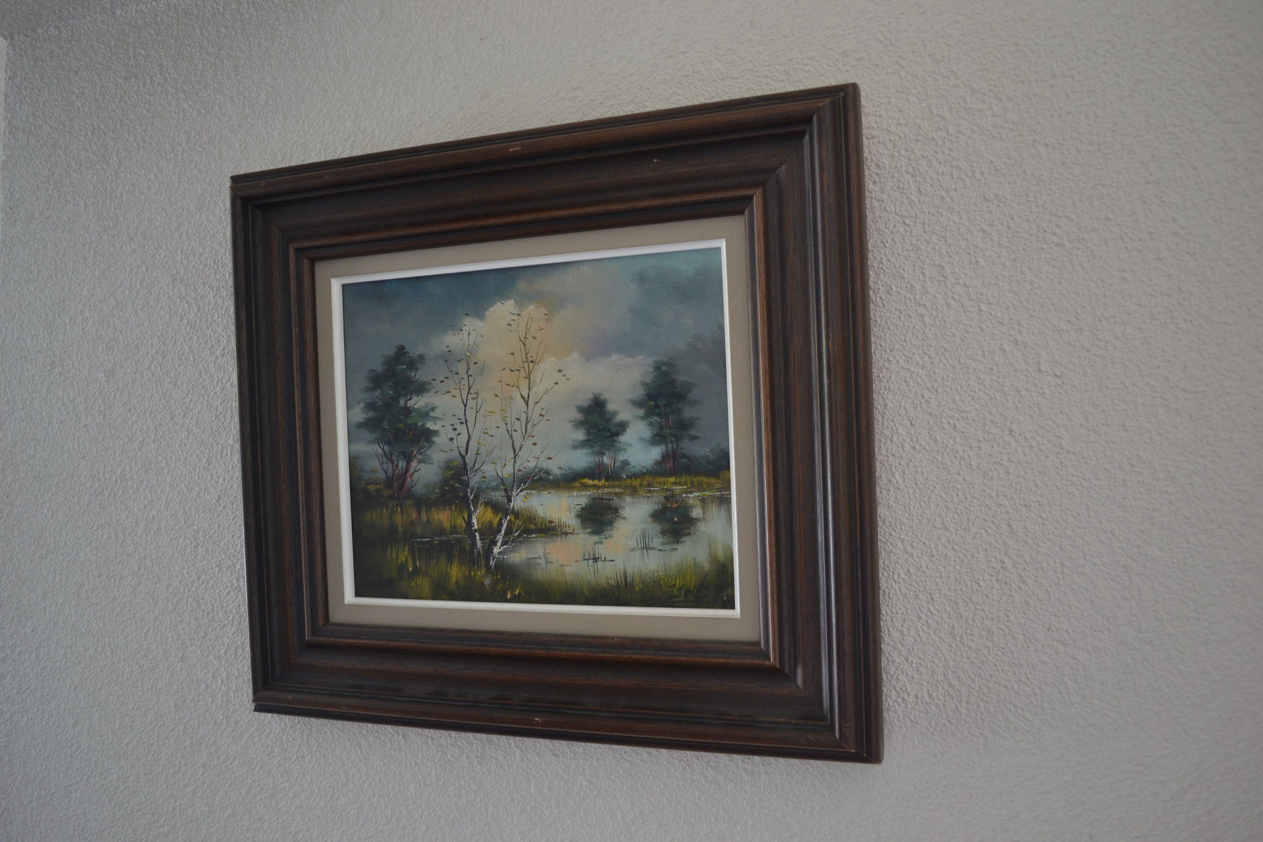 Sfeervol olieverf schilderij van een Brabants vennetje. Rechtsonder gesigneerd J. Smits en gedateerd. In uitstekende staat. Wordt goed verpakt en aangetekend verstuurd.