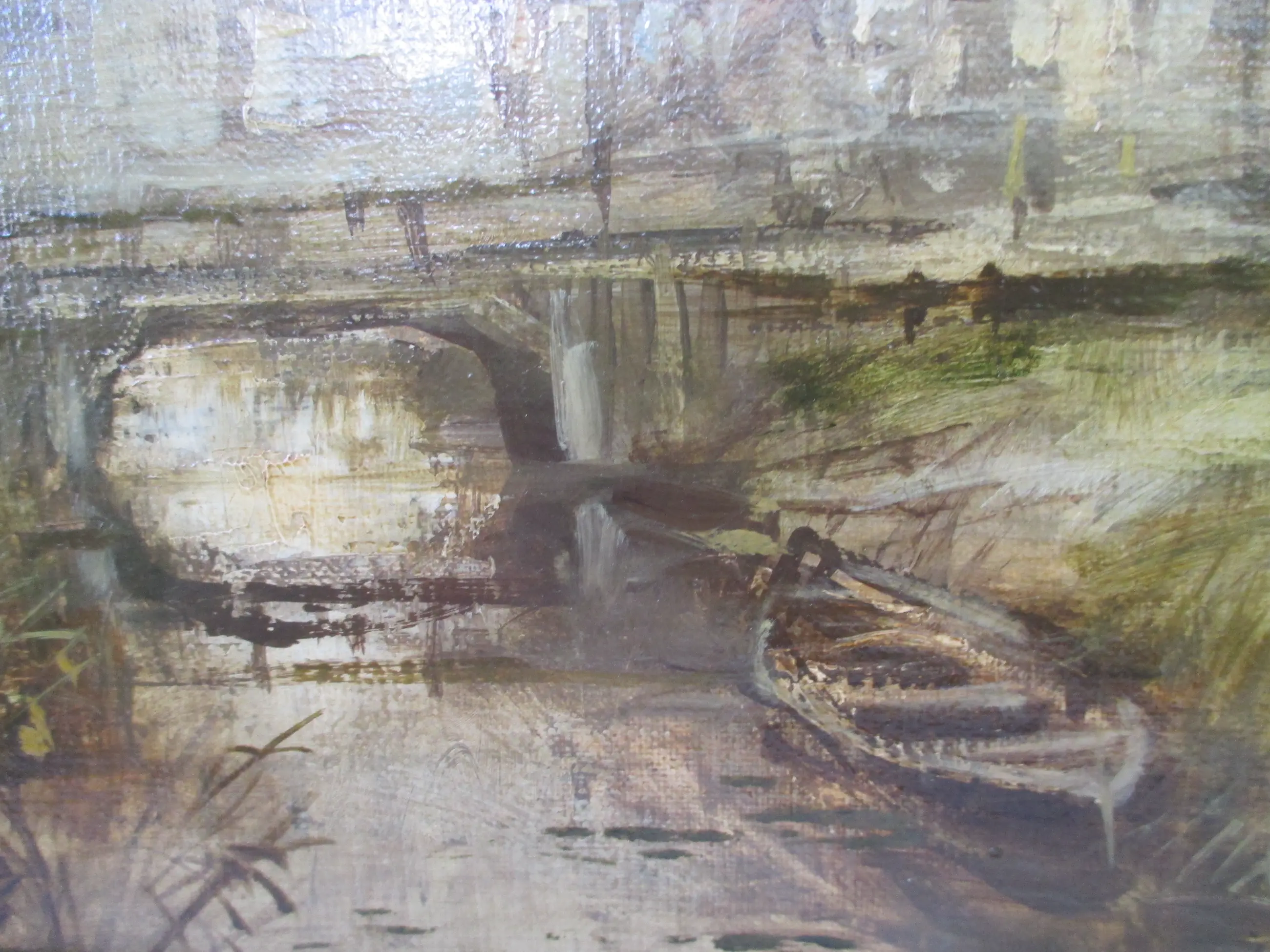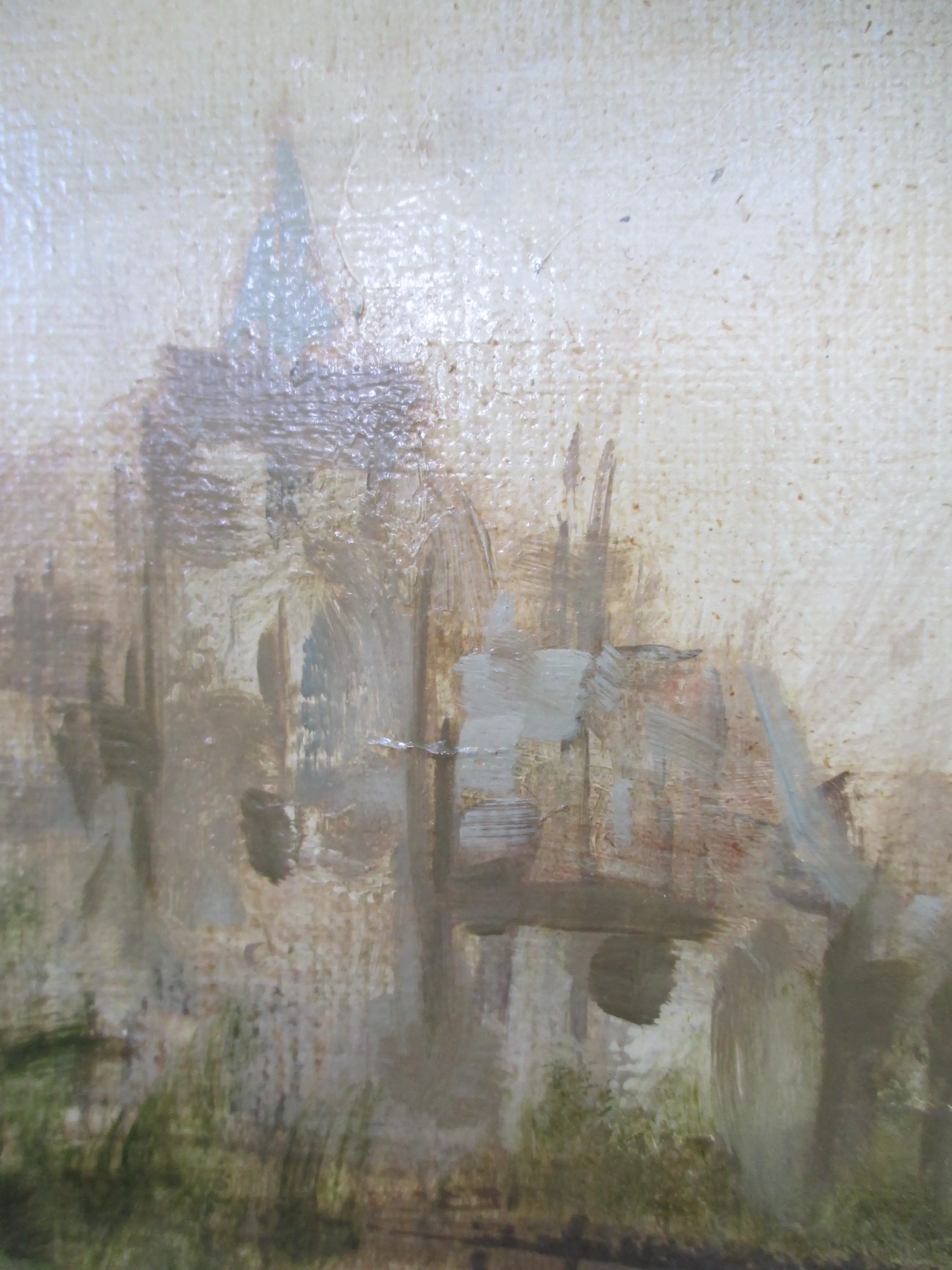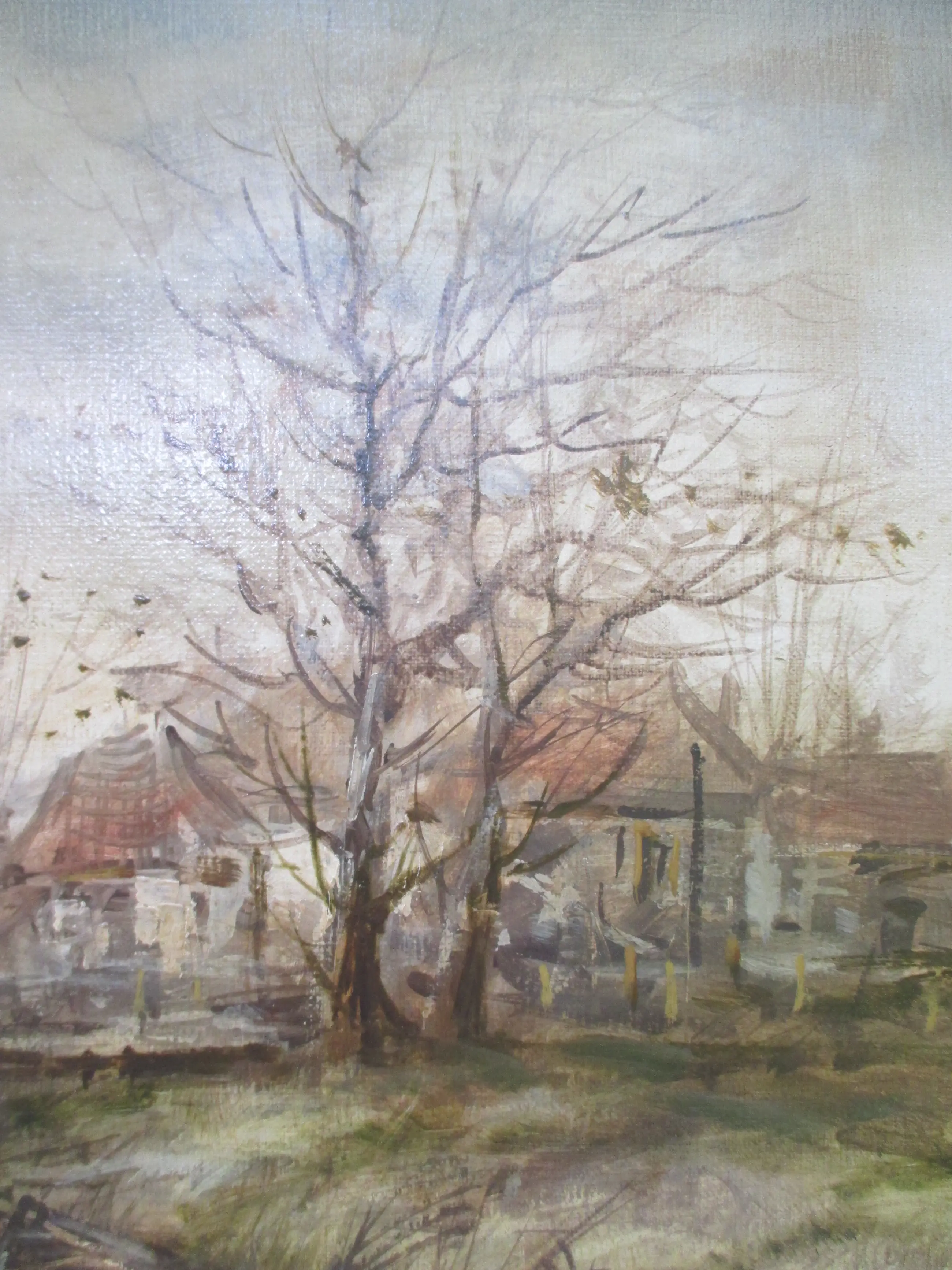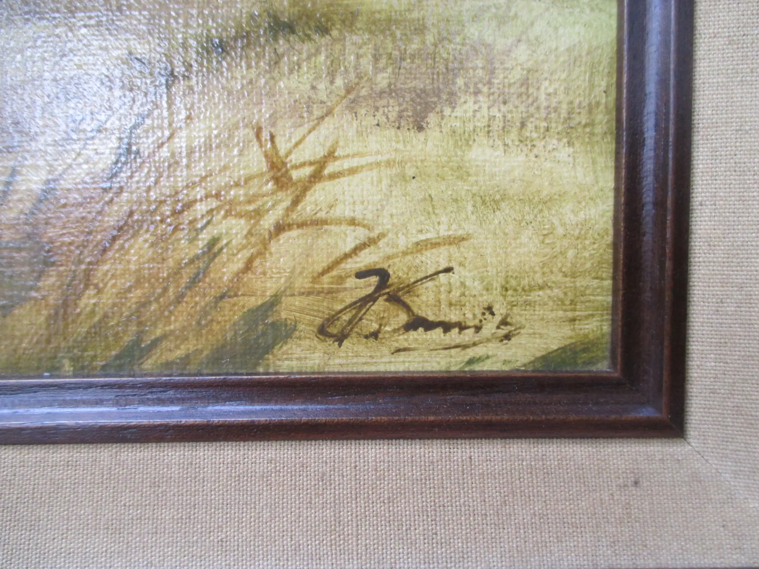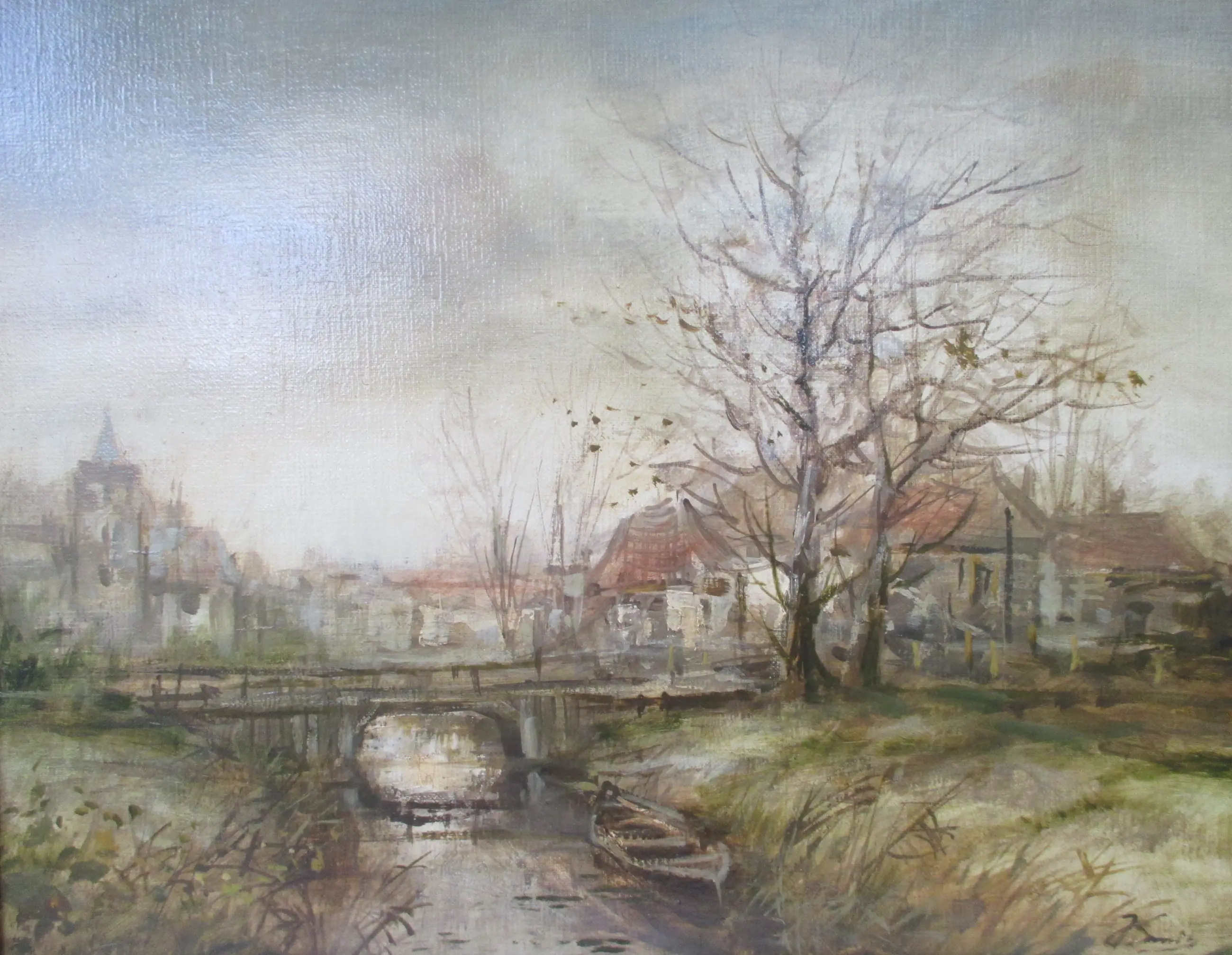 Dit werk is rechtsonder gesigneerd. Het werk zit in een brede houten lijst.