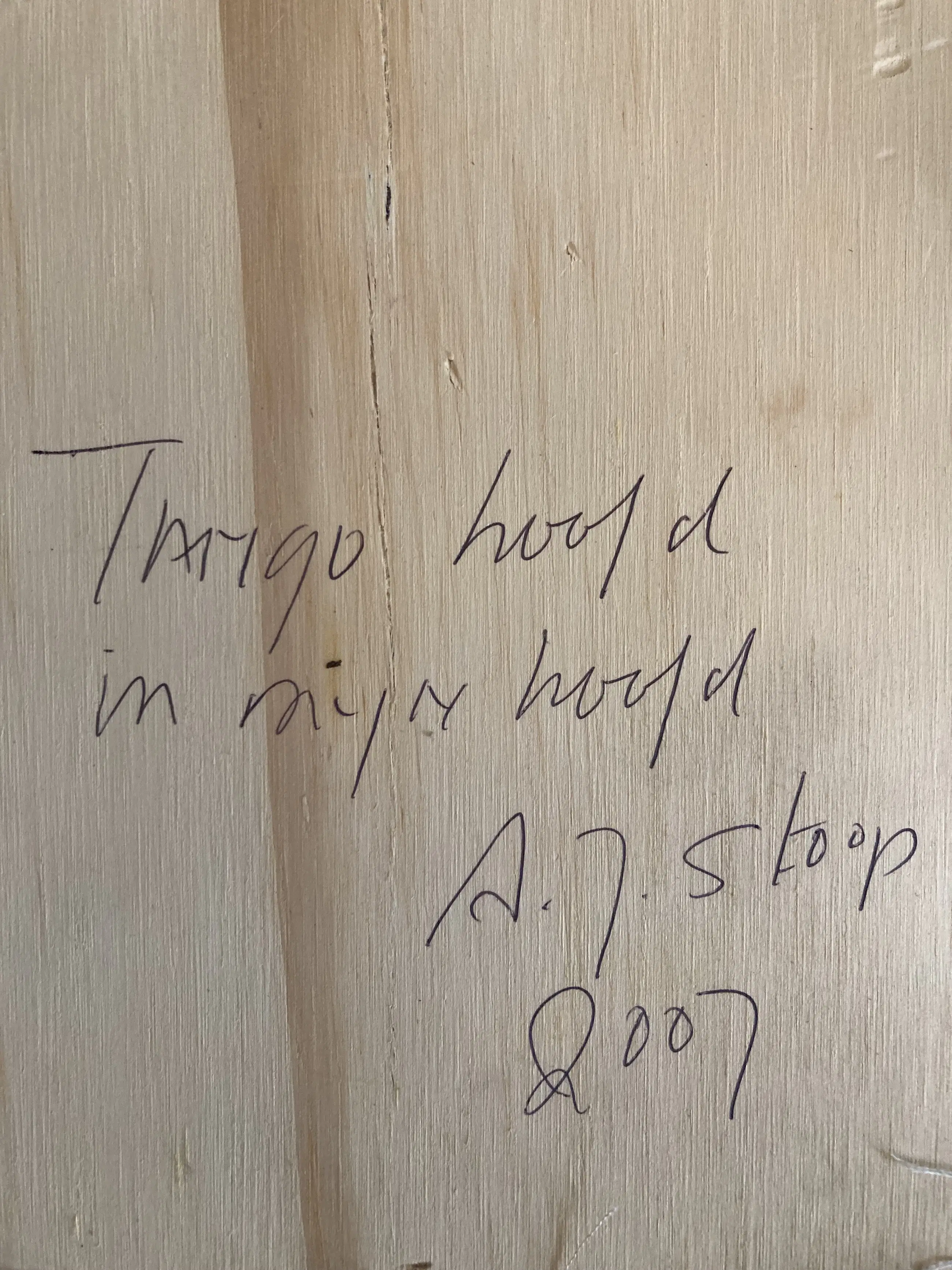 Gemengde techniek op doek en hout. Uit de privécollectie van Joop Stoop.