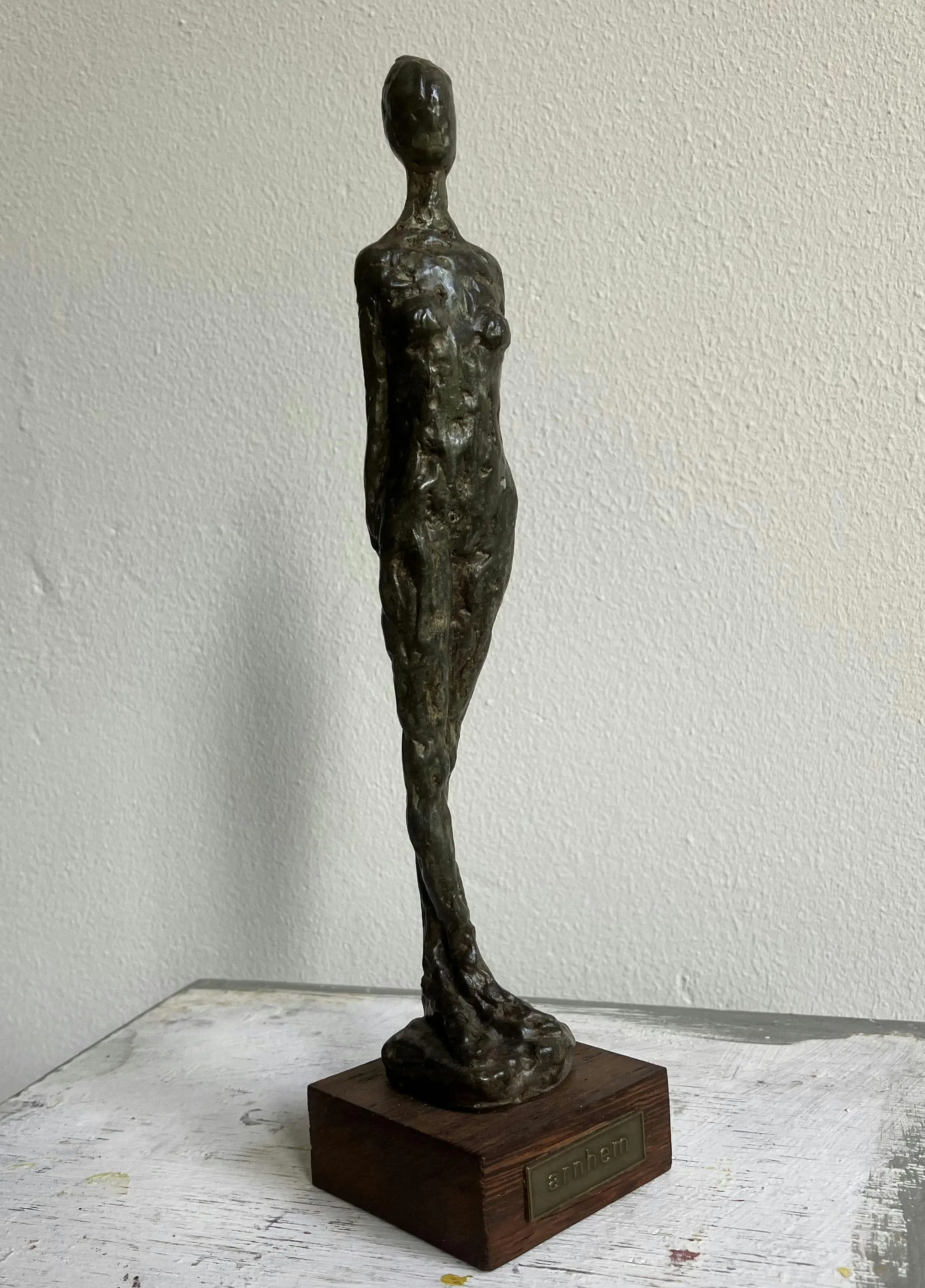 Of dit één van de bronze beeldjes is of een exemplaar gemaakt van een legering is moeilijk te zeggen. Het is wel zwaar (ruim 610 gram).