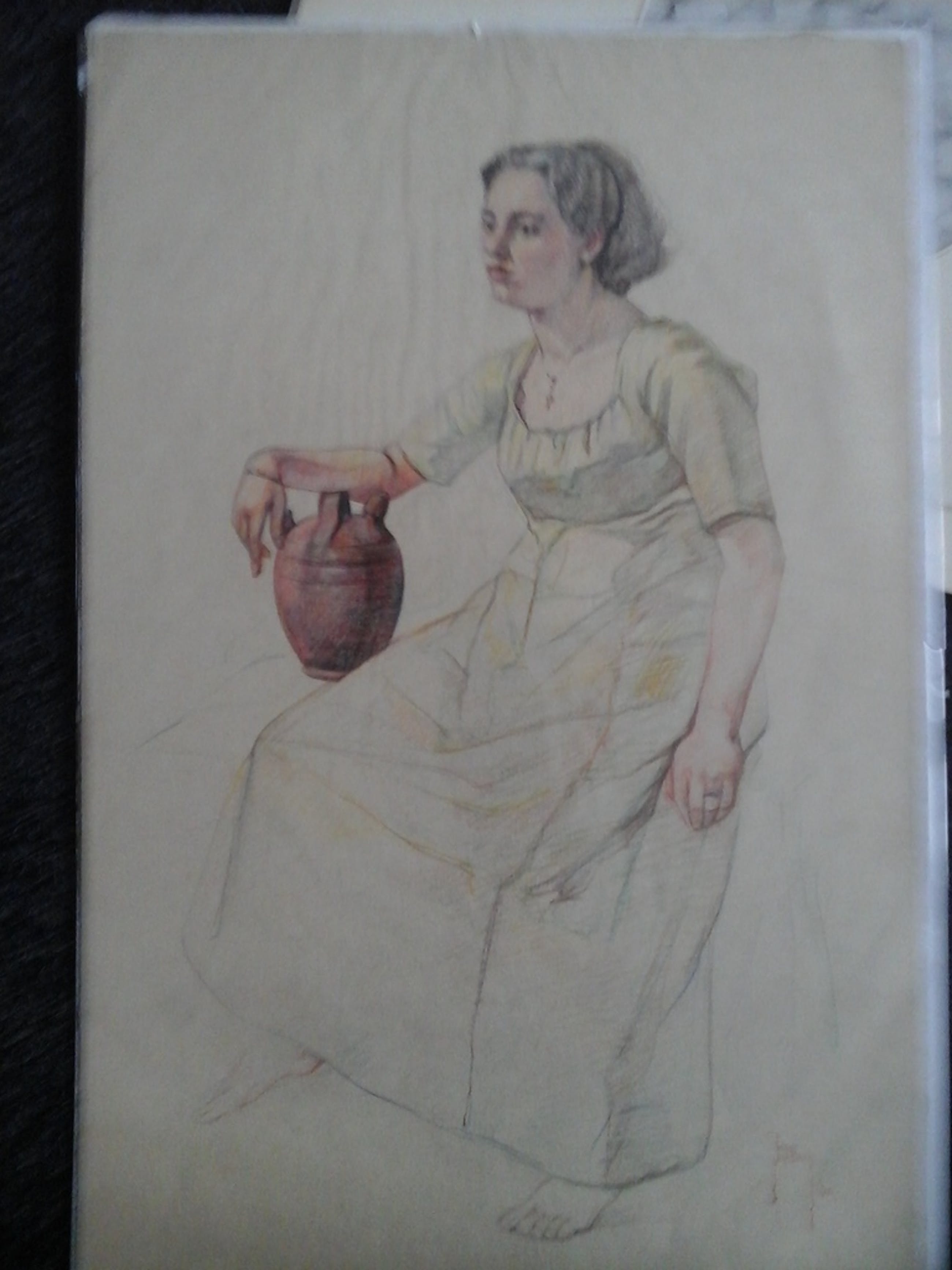 Joop van den Berg (1897-1985) Aquarel 1936 op dik papier - Vrouw met kruik - niet ingelijst