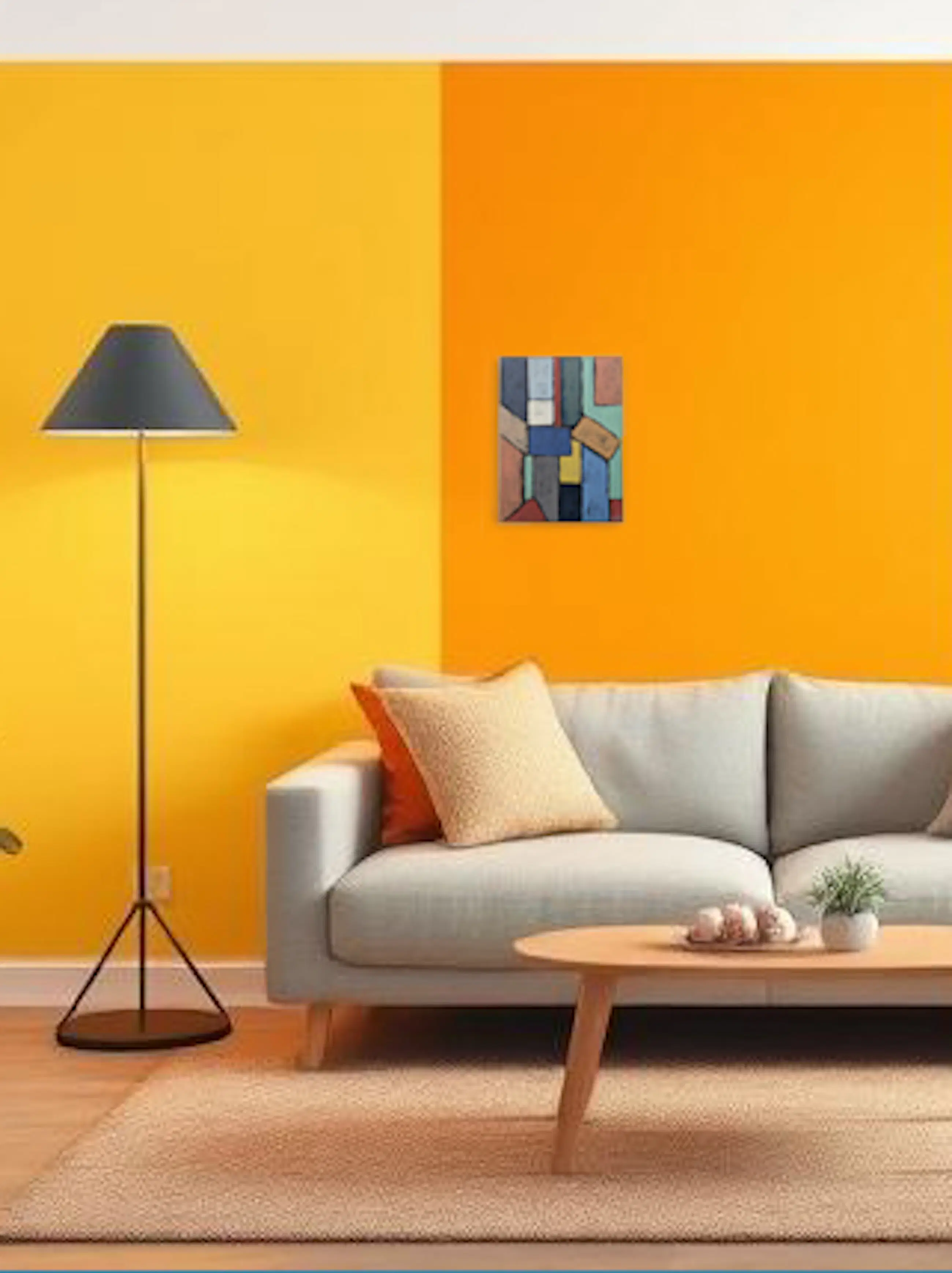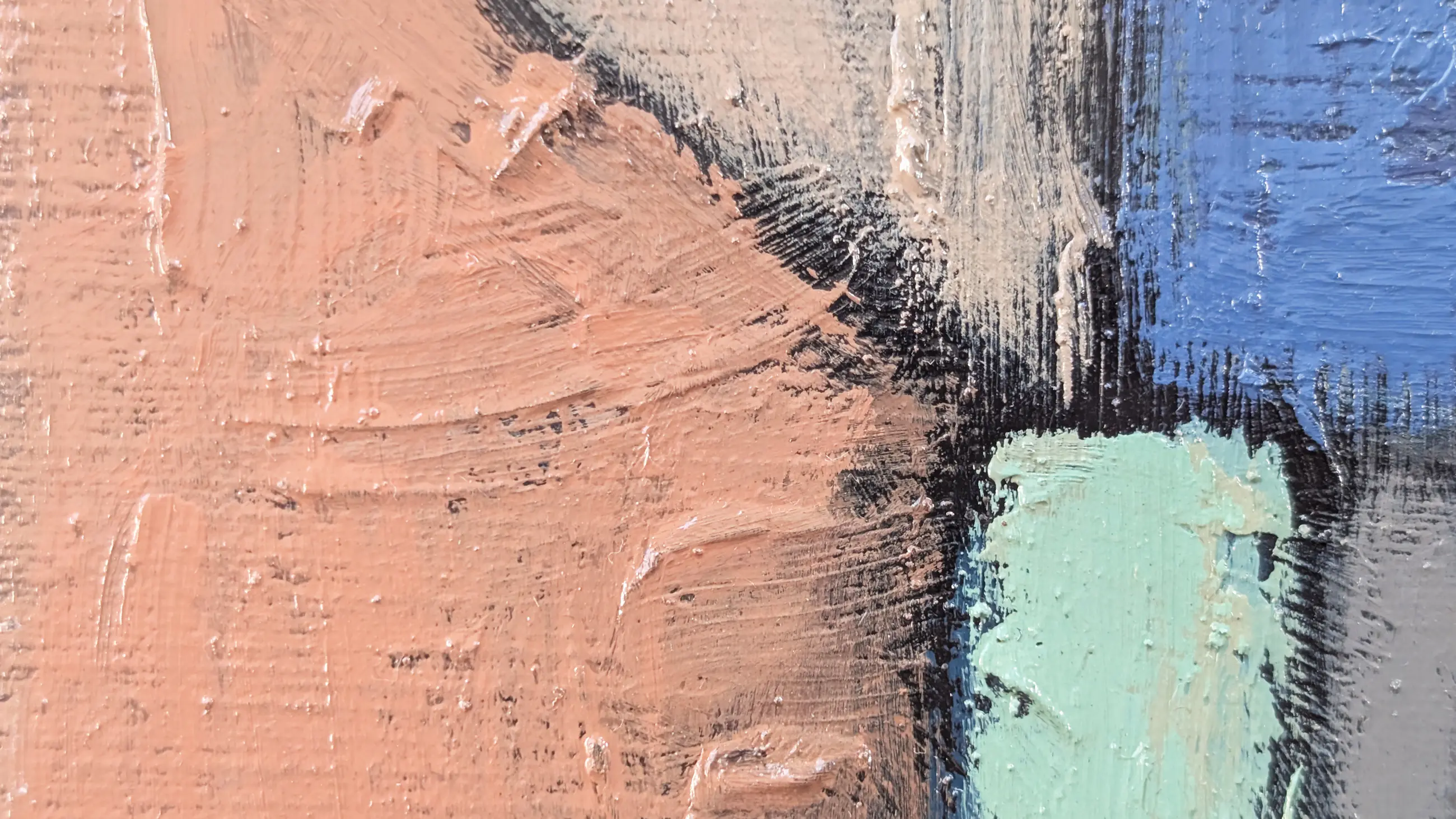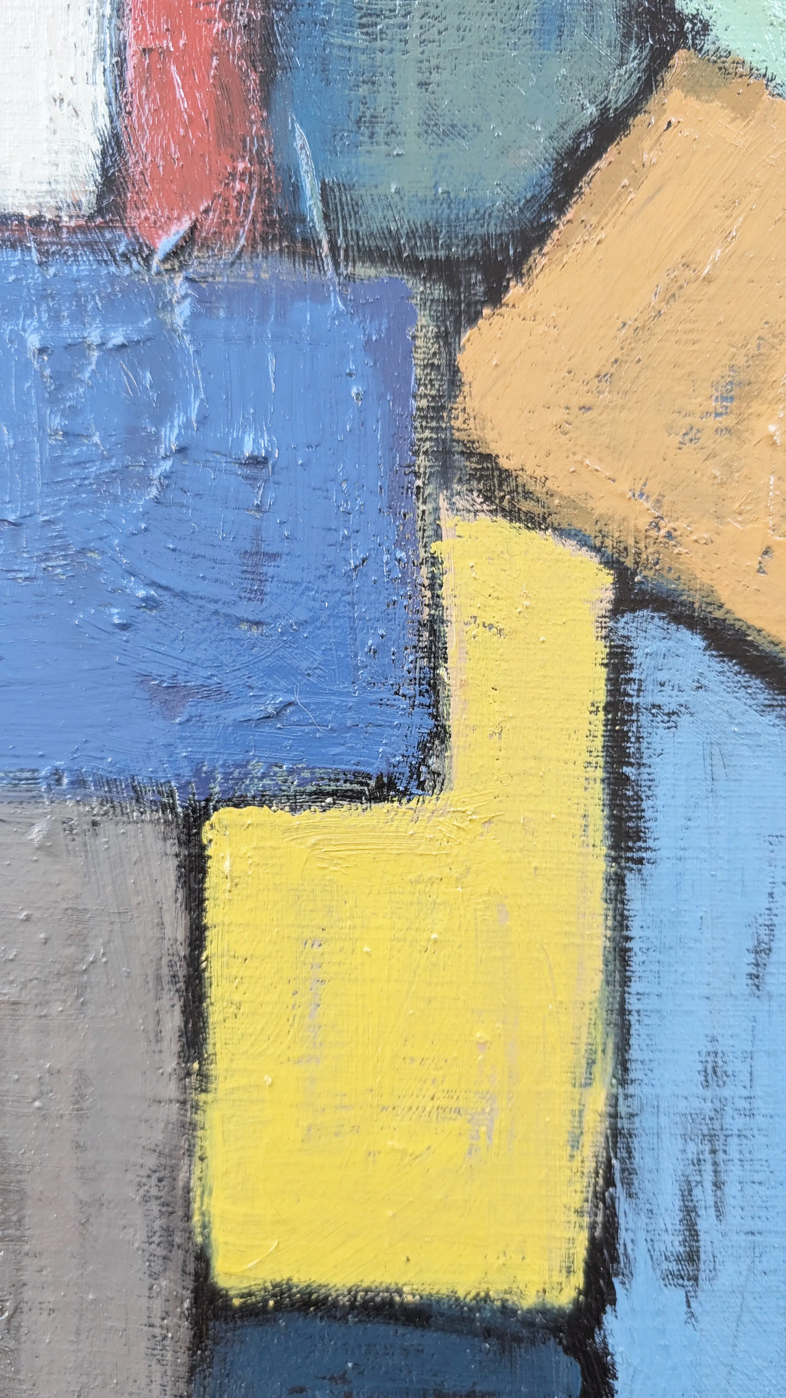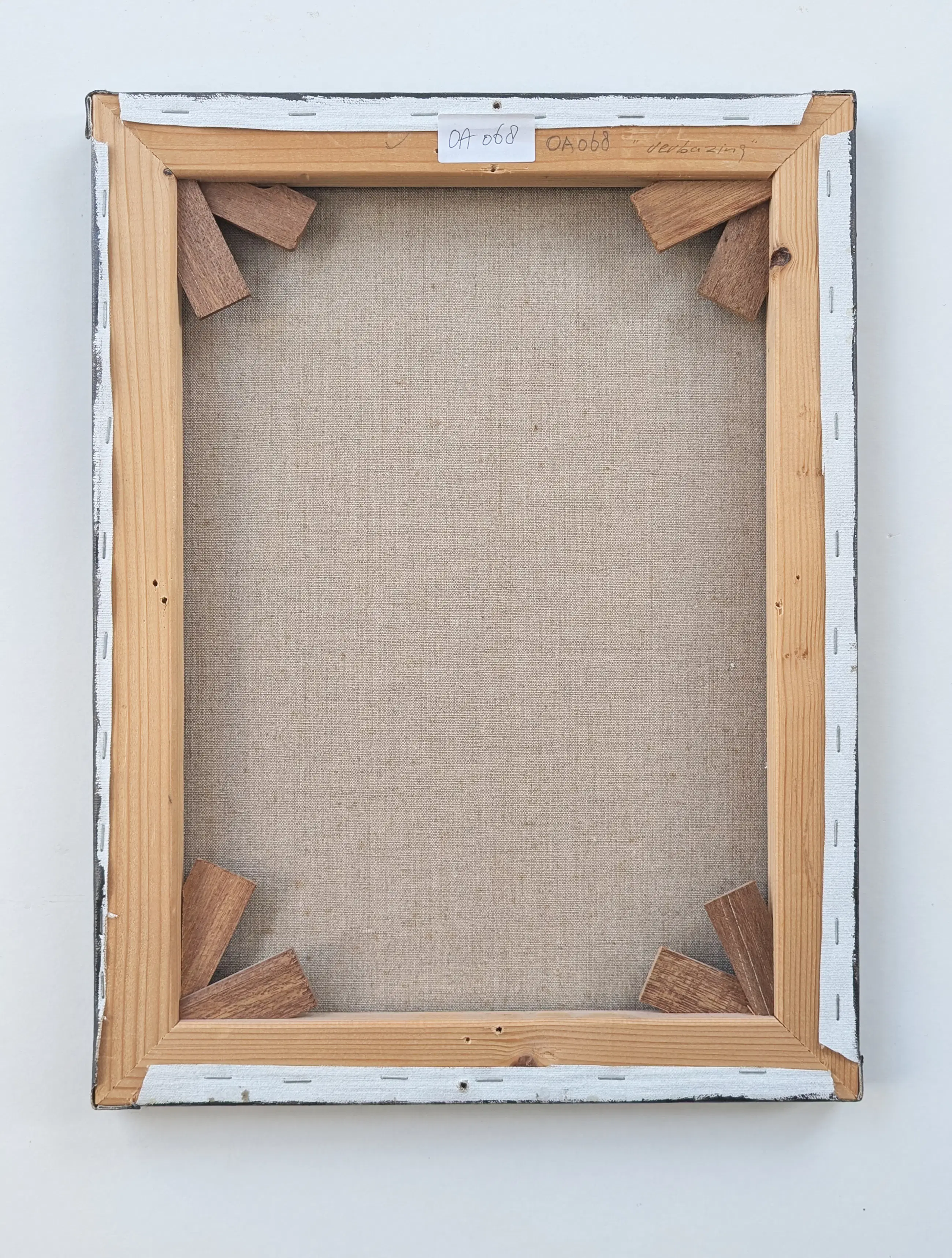 Dit abstracte werk heeft geen jaartal, maar is waarschijnlijk vervaardigd in de periode rond 1995-1996. Op een dikke laag materie is dit werk geschilderd met een aantrekkelijk kleurenpalet.